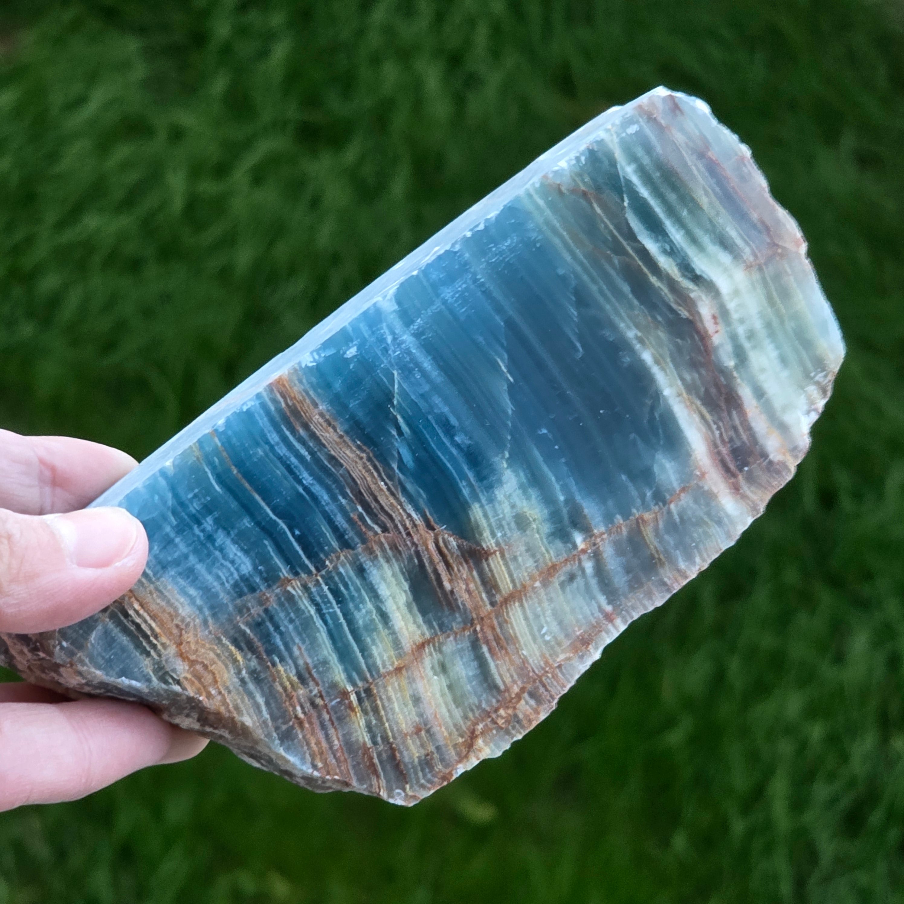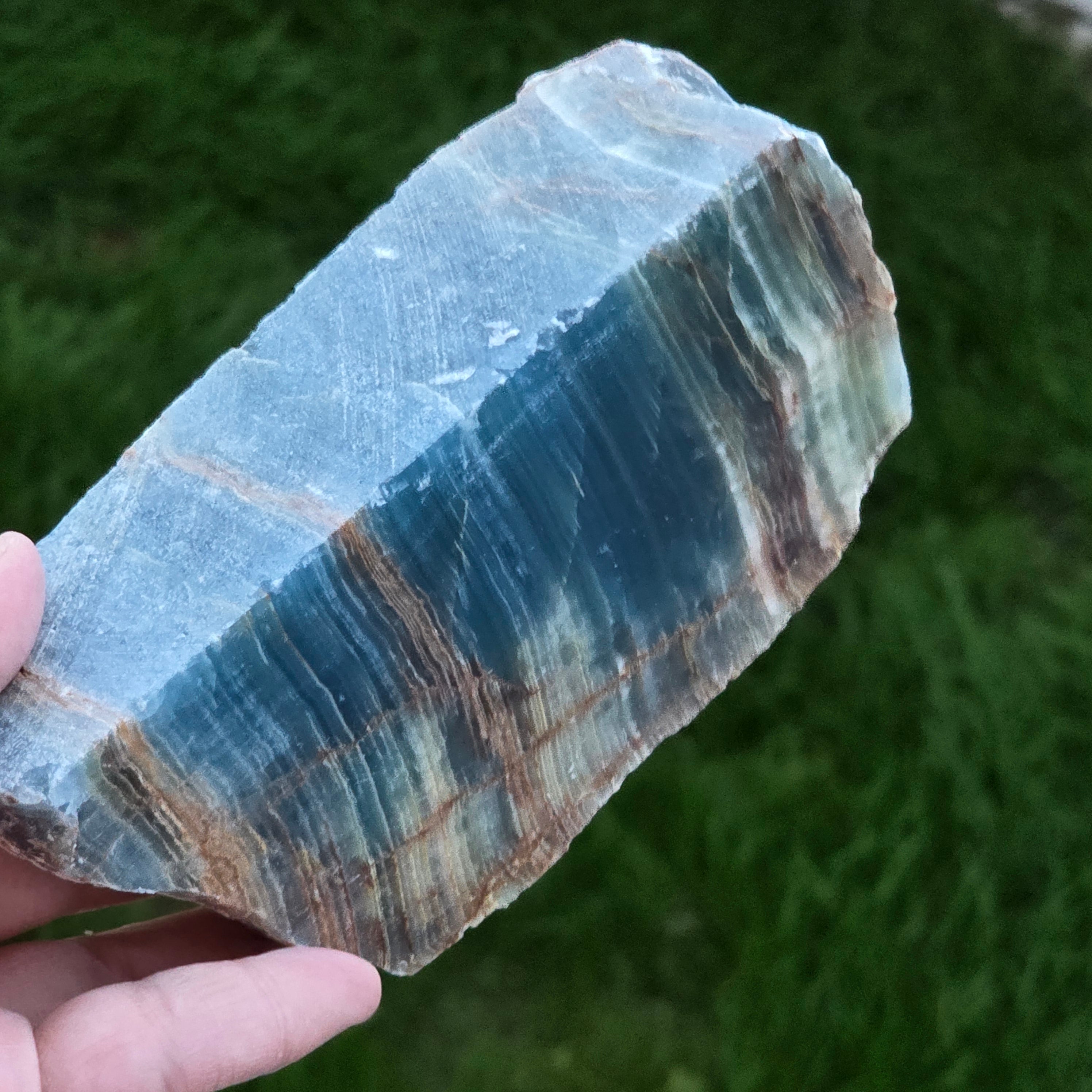 Onix azul piedra bruta pulida en una cara | Modelo 2
