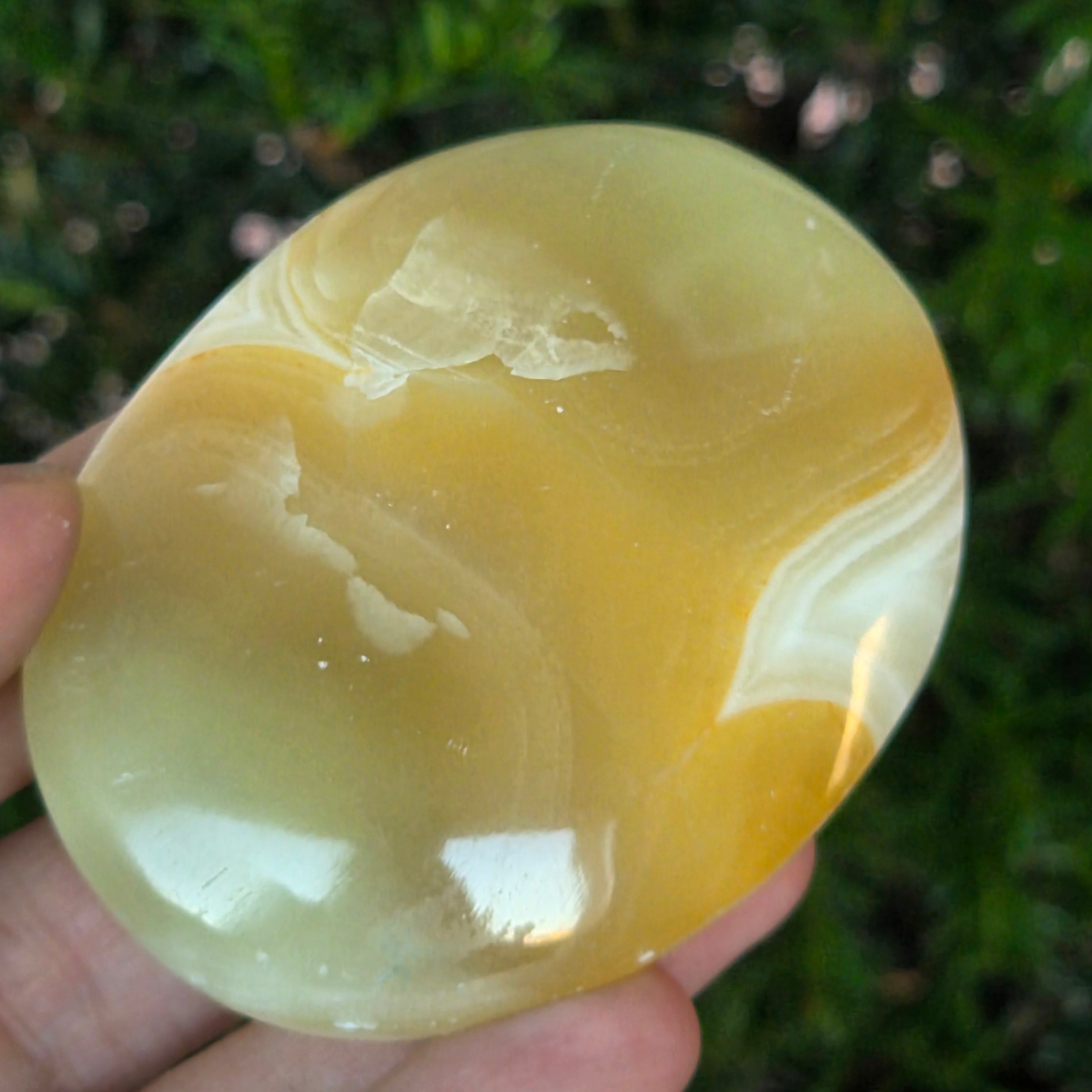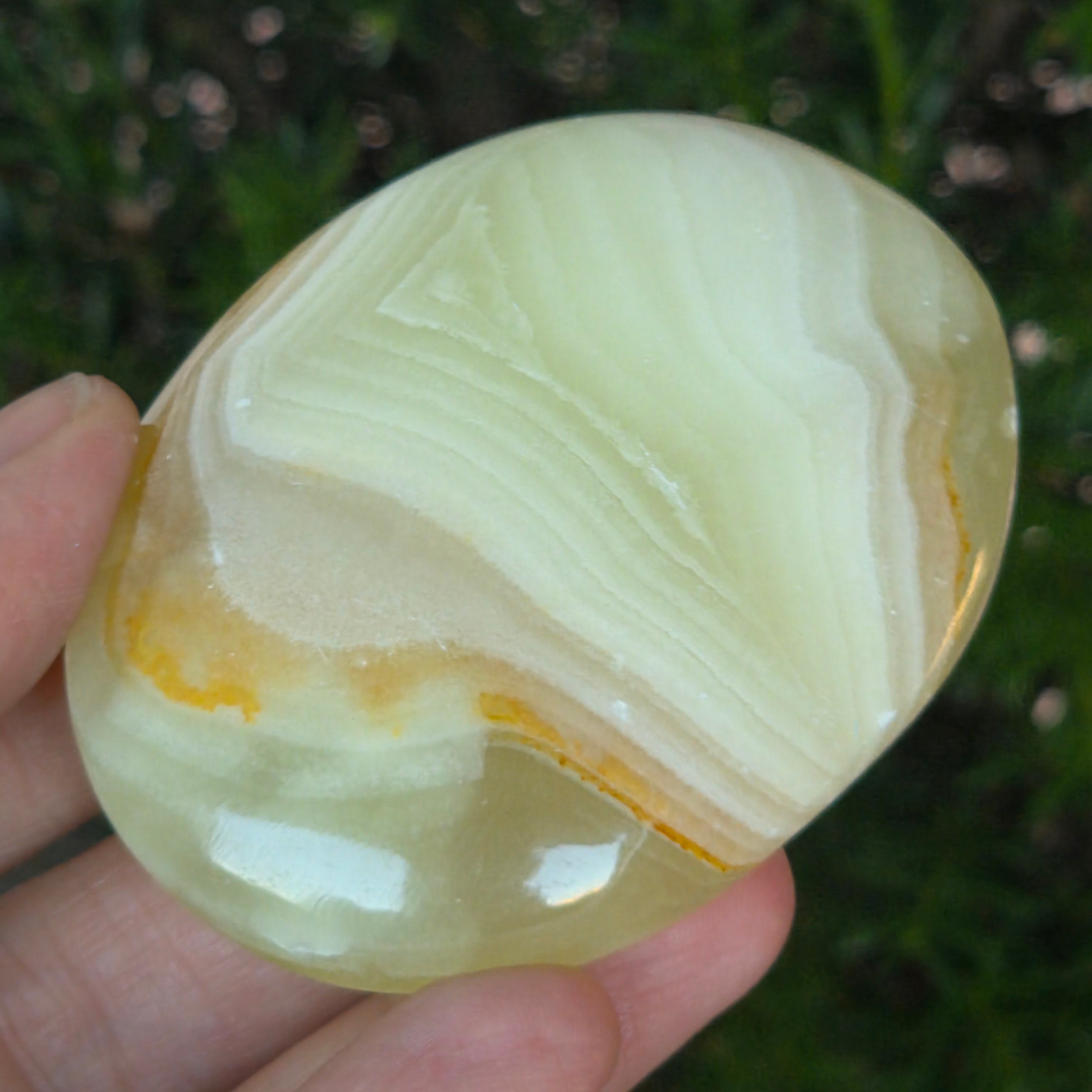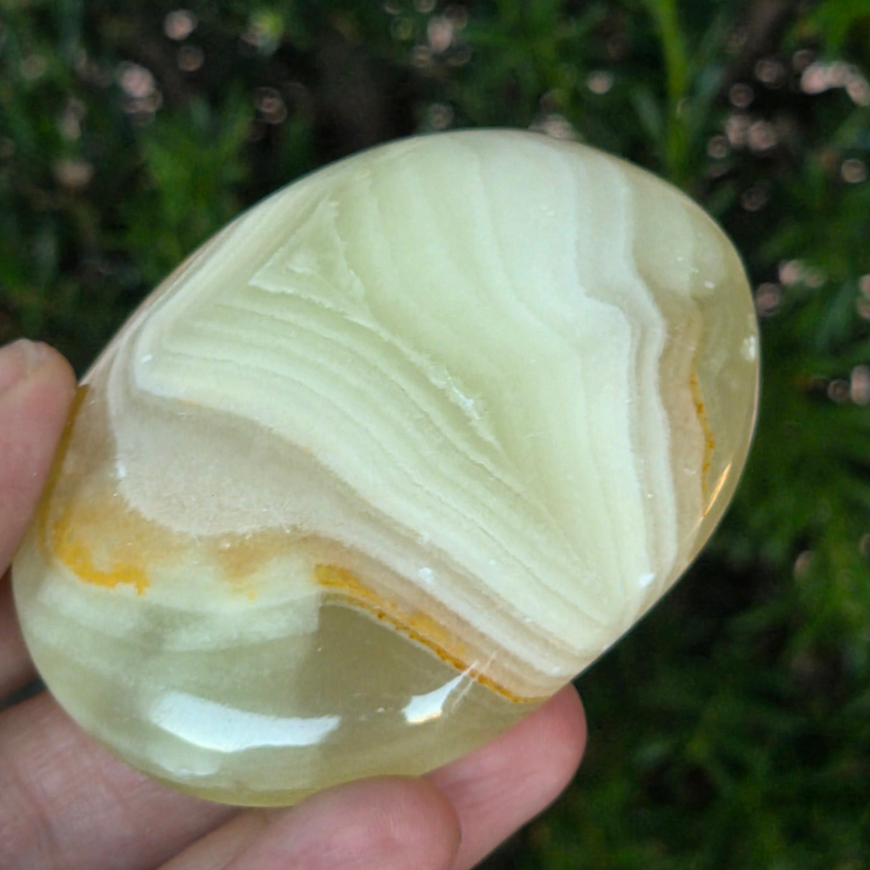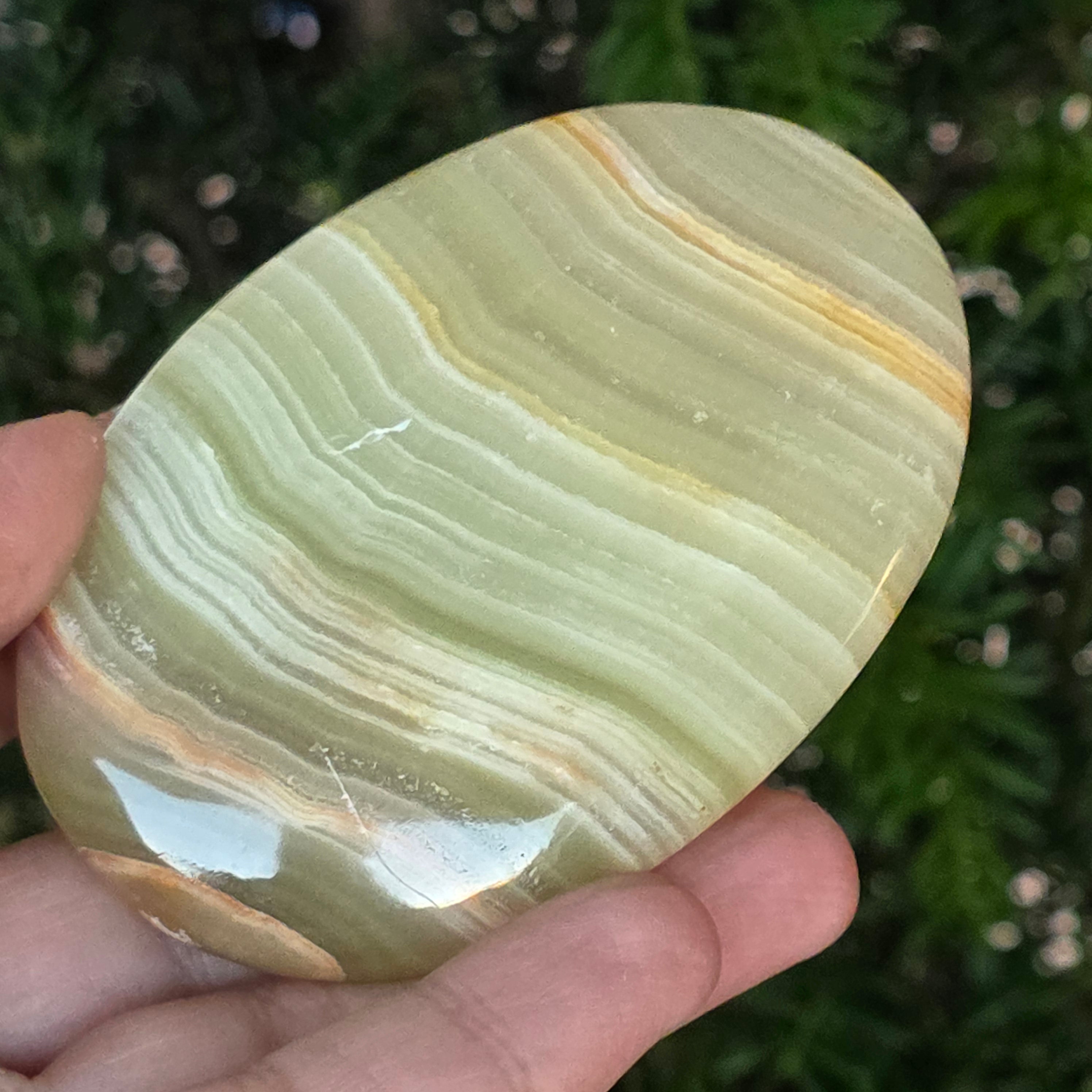 Sostenida entre las palmas, esta palmstone de ónix verde natural se convierte en un aliado del equilibrio, un recordatorio silencioso de la armonía entre cuerpo y espíritu. Es ideal para meditación, relajación o simplemente como objeto decorativo con energía suave y refinada.