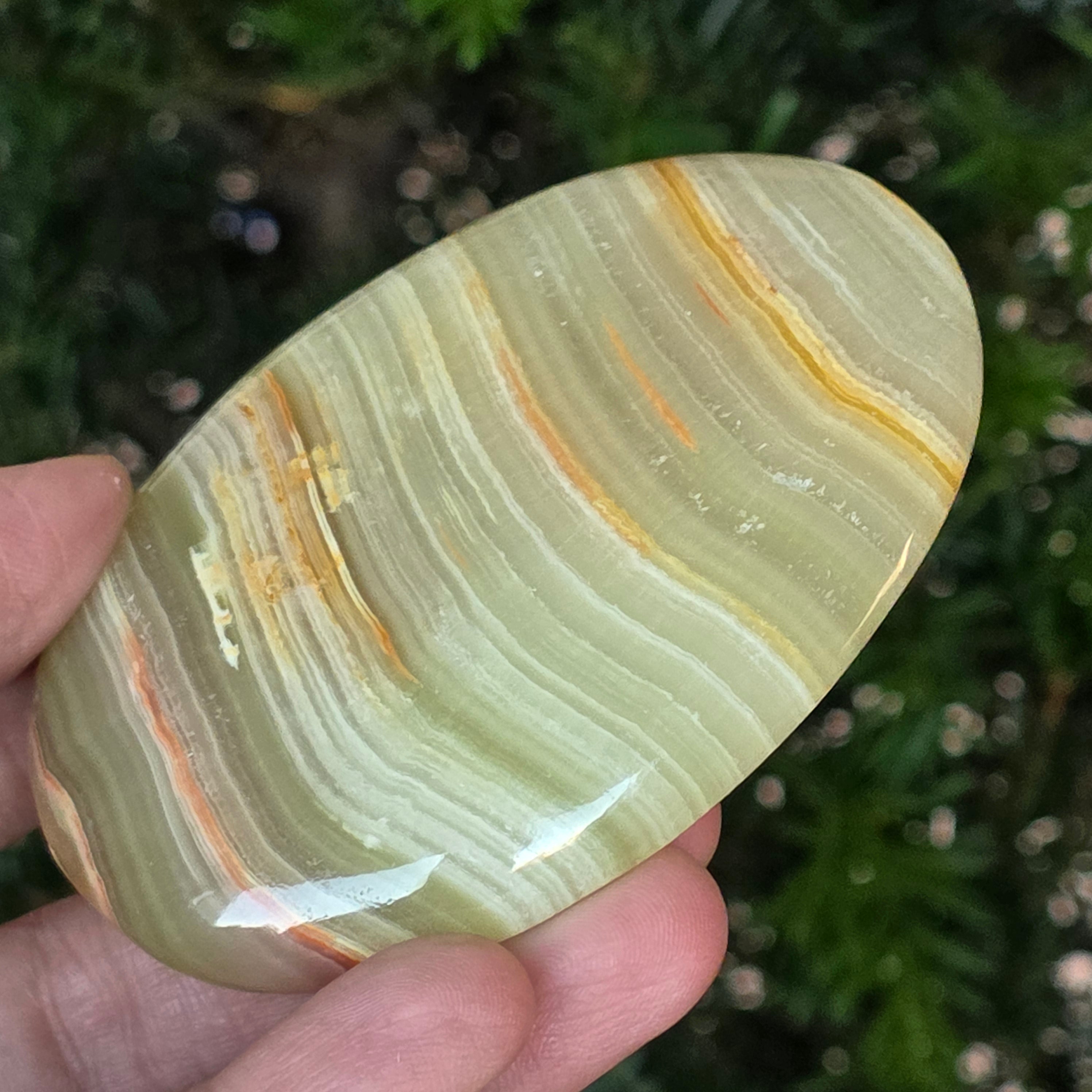 Sostenido entre las palmas, este palmstone de ónix verde natural tu aliado para el equilibrio, un recordatorio silencioso de la armonía entre cuerpo y espíritu. Es ideal para meditación, relajación o simplemente como objeto decorativo con energía suave y refinada.