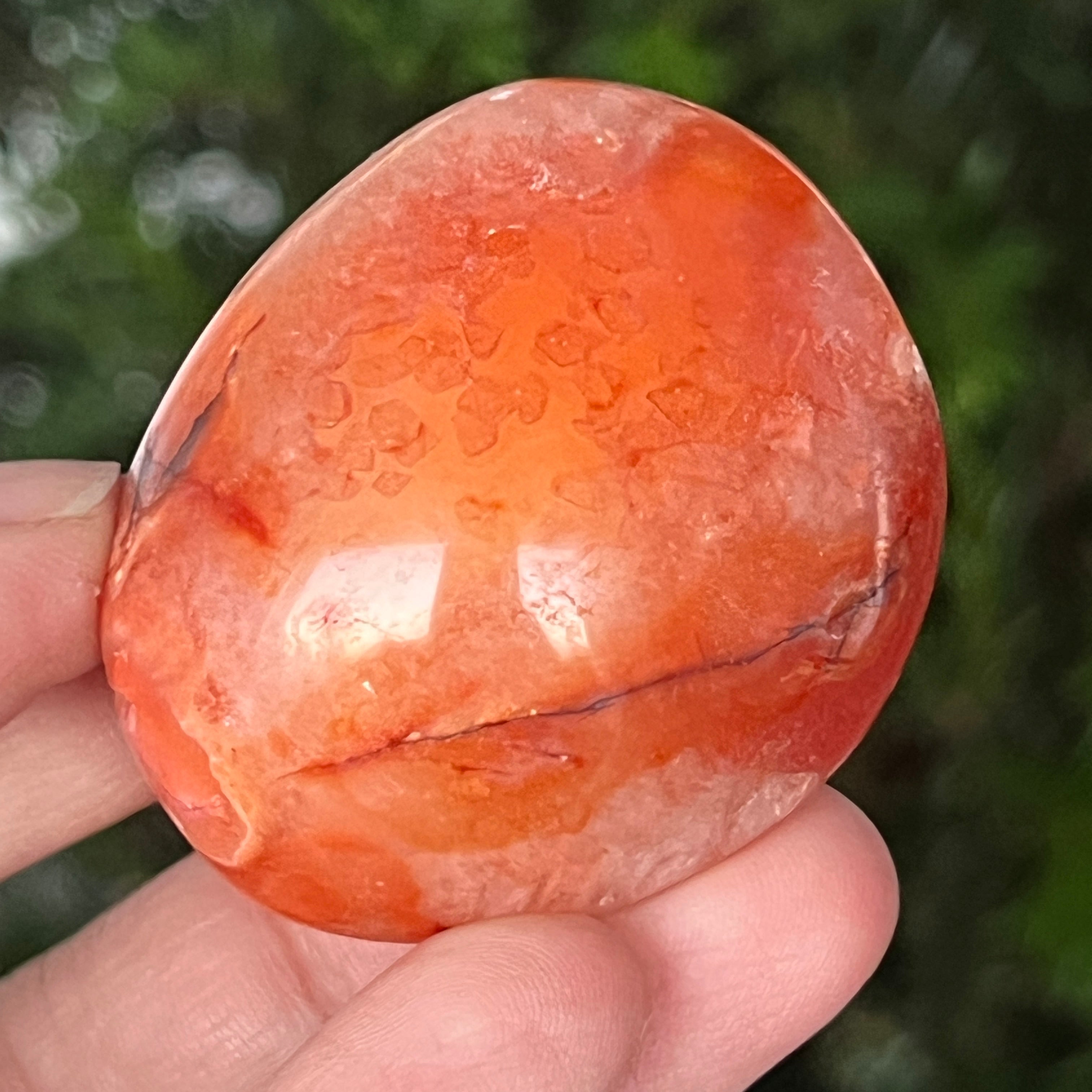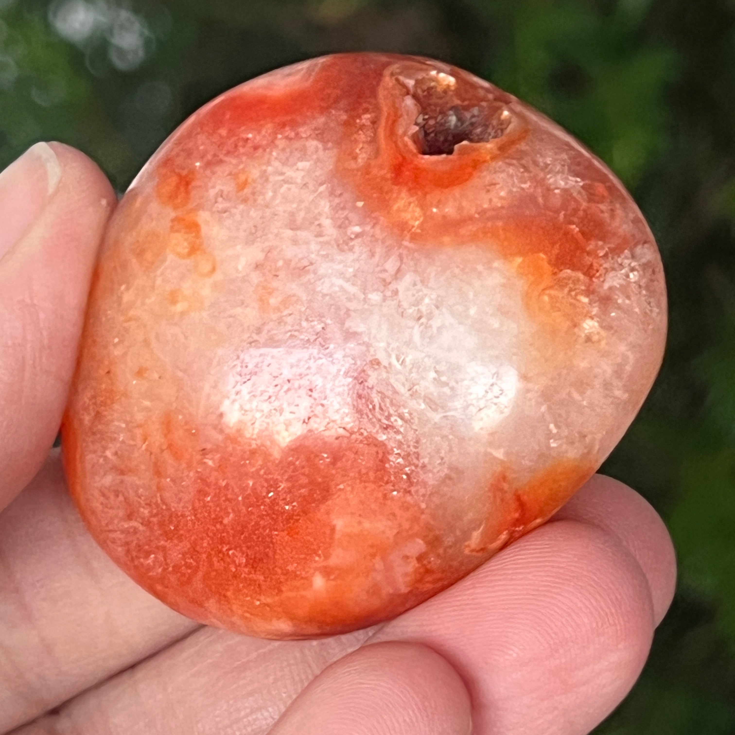 Sostenida entre las palmas, esta piedra de palma de cornalina natural se convierte en un instrumento de energía positiva y claridad interior. Puede usarse en meditación, en prácticas de anclaje o simplemente como objeto decorativo que emite calidez, optimismo y fuerza suave.