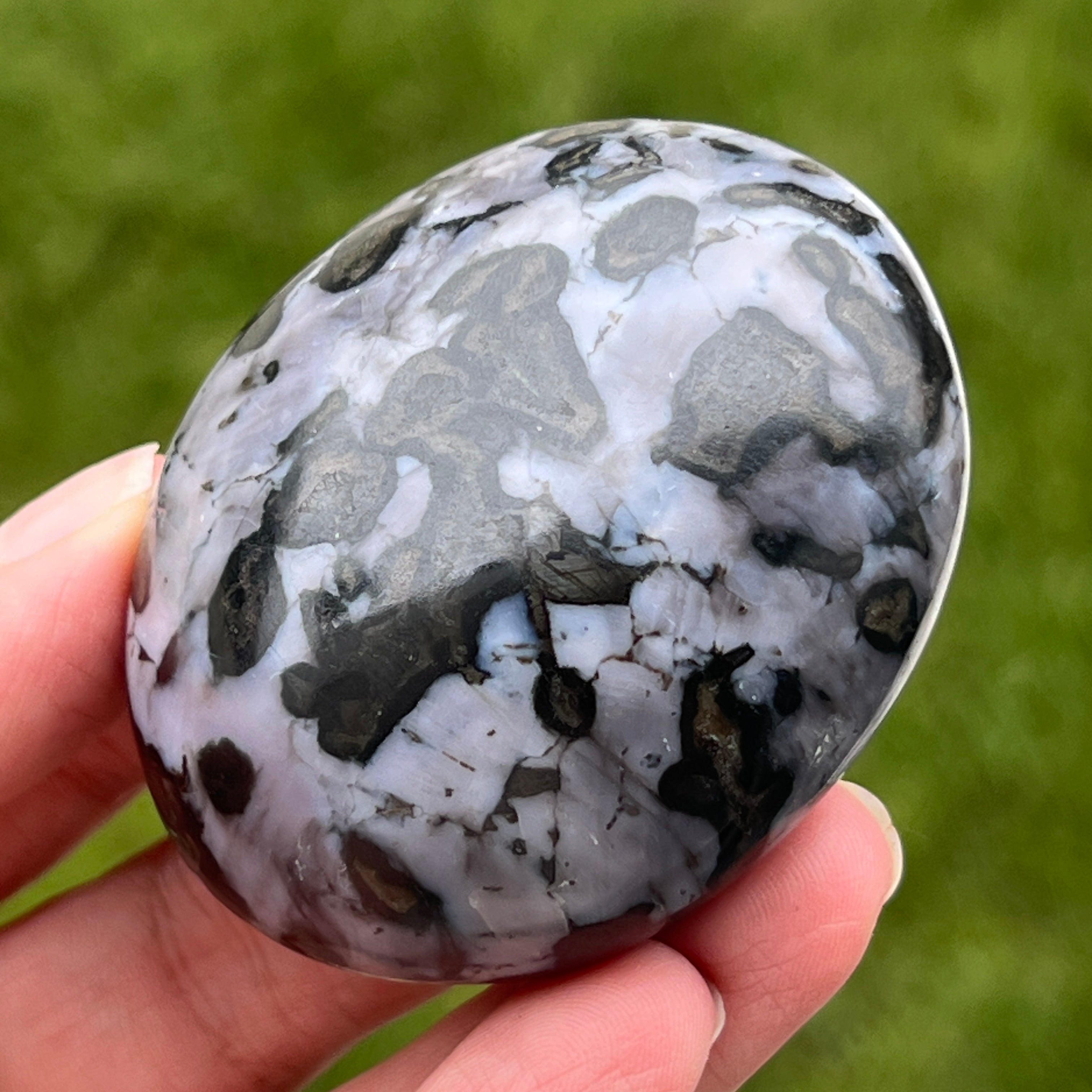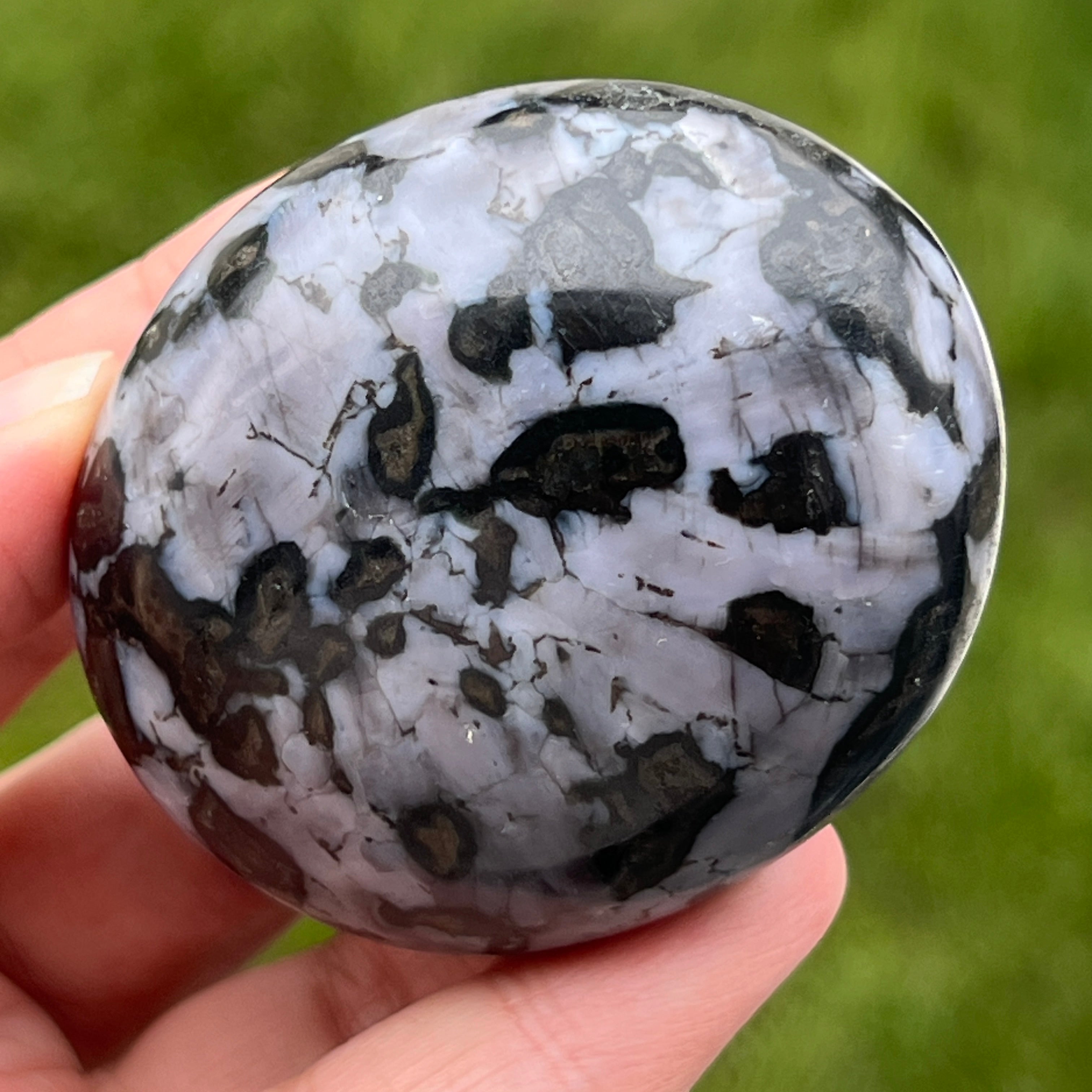 El merlín es una piedra semipreciosa rara y fascinante, reconocida por su combinación de colores contrastantes, blanco y negro, que le da un aspecto único. Se considera una variedad de ópalo dendrítico o una combinación de cuarzo y otros minerales, y su estructura compleja lo hace apreciado tanto por su belleza como por sus supuestas propiedades energéticas. El merlín es conocido en el mundo de la cristaloterapia por sus energías místicas y su asociación con la intuición, la clarividencia y el conocimiento espiritual.