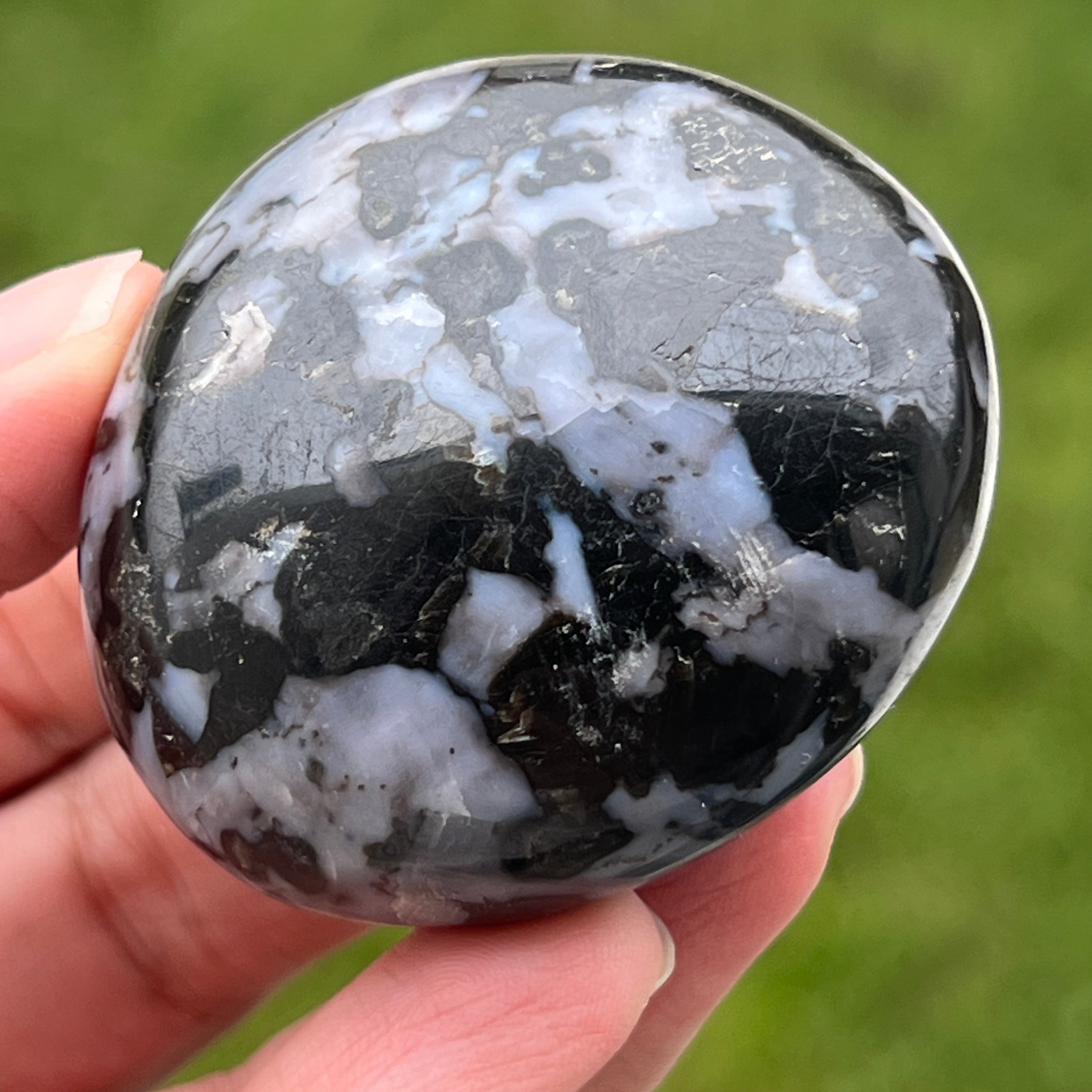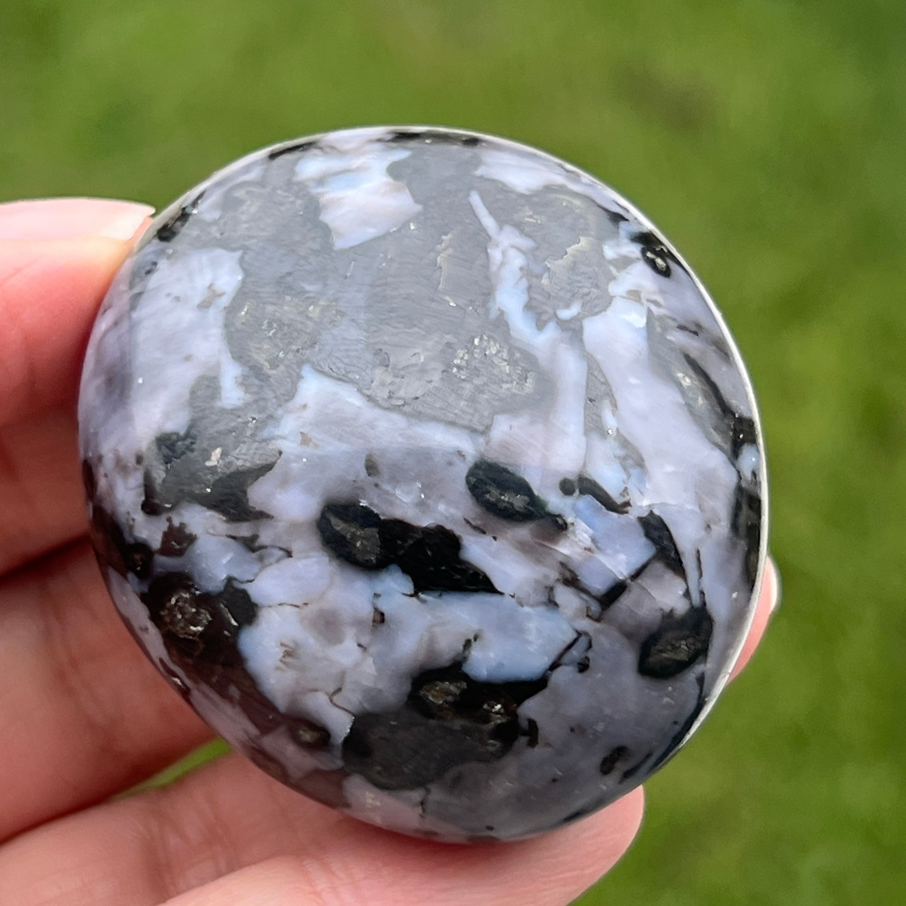 La melenita es una piedra semipreciosa rara y fascinante, reconocida por su combinación de colores contrastantes, blanco y negro, que le brinda un aspecto único. Se considera una variedad de ópalo dendrítico o una combinación de cuarzo con otros minerales, y su estructura compleja la hace apreciada tanto por su belleza como por sus supuestas propiedades energéticas. La melenita es conocida en el mundo de la cristaloterapia por sus energías místicas y su asociación con la intuición, la clarividencia y el conocimiento espiritual.