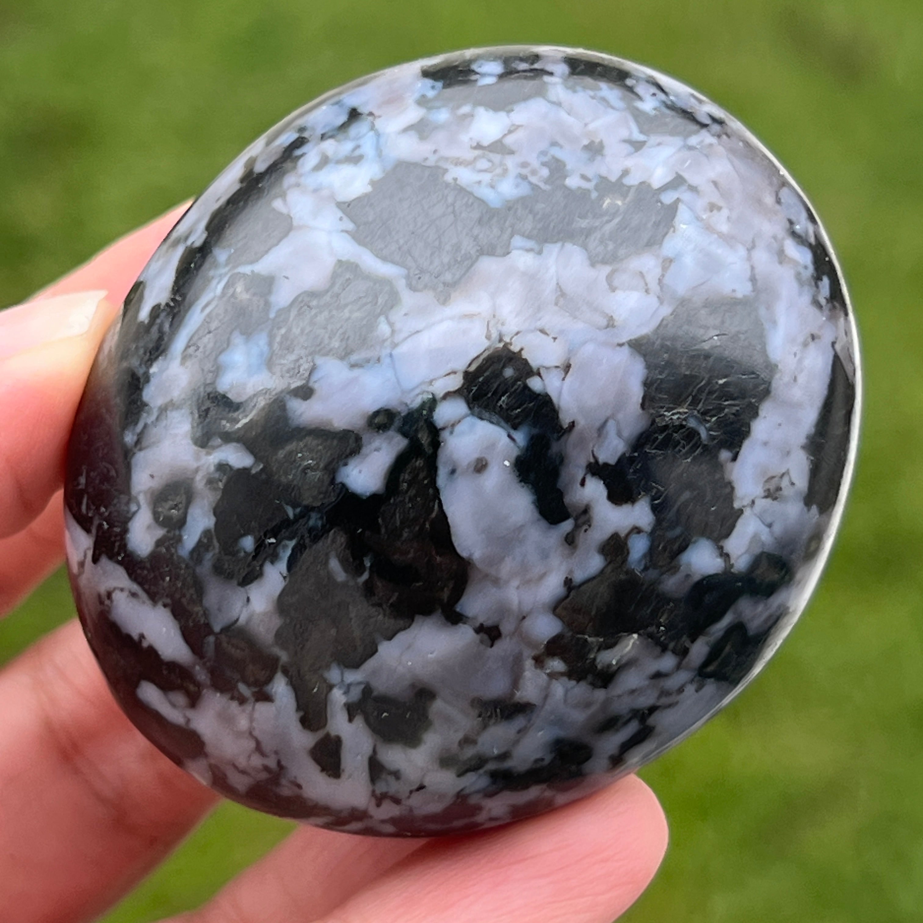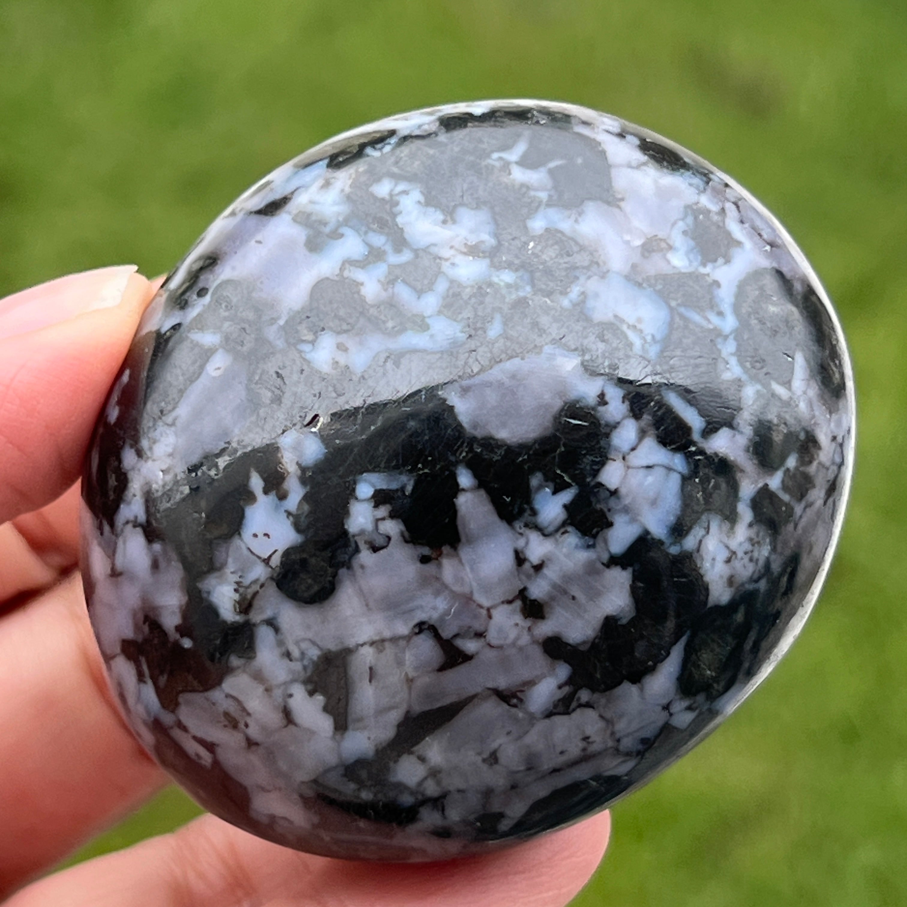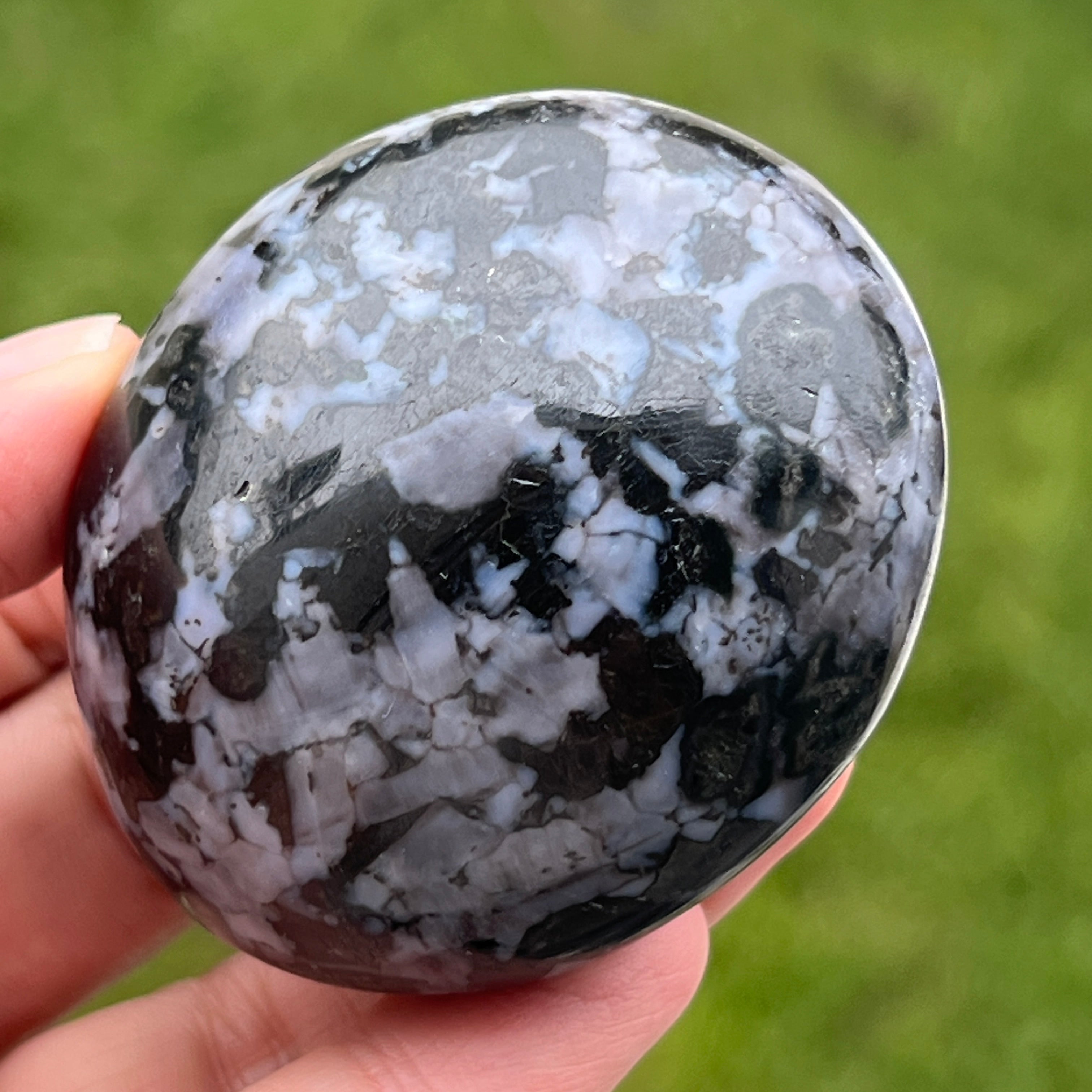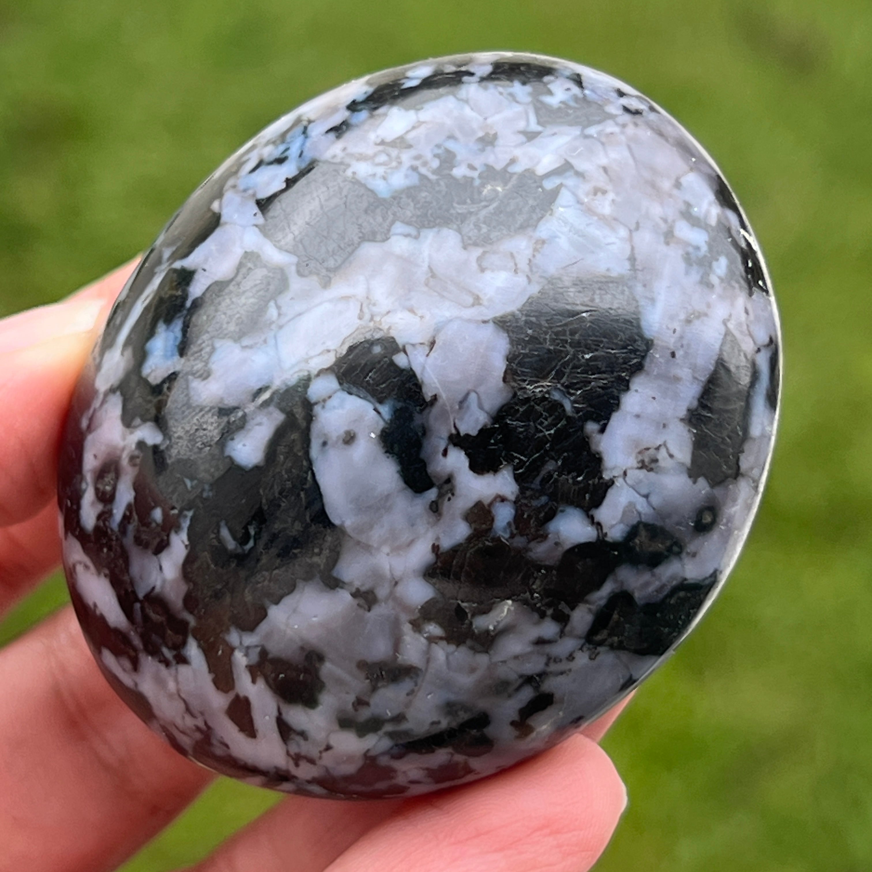El merlín es una piedra semipreciosa rara y fascinante, reconocida por su combinación de colores contrastantes, blanco y negro, que le da un aspecto único. Se considera una variedad de ópalo dendrítico o una combinación de cuarzo y otros minerales, y su estructura compleja lo hace apreciado tanto por su belleza como por sus supuestas propiedades energéticas. El merlín es conocido en el mundo de la cristaloterapia por sus energías místicas y su asociación con la intuición, la clarividencia y el conocimiento espiritual.