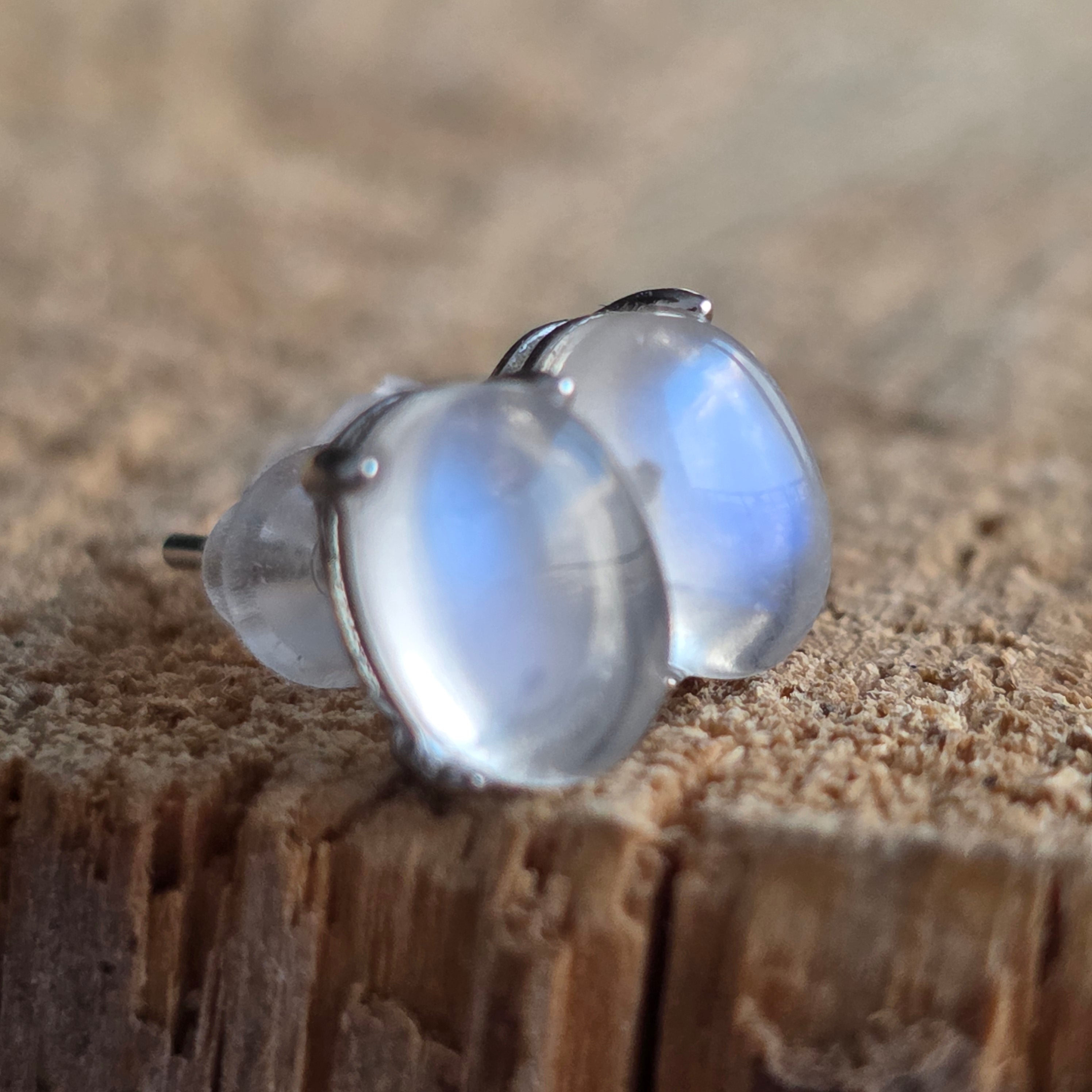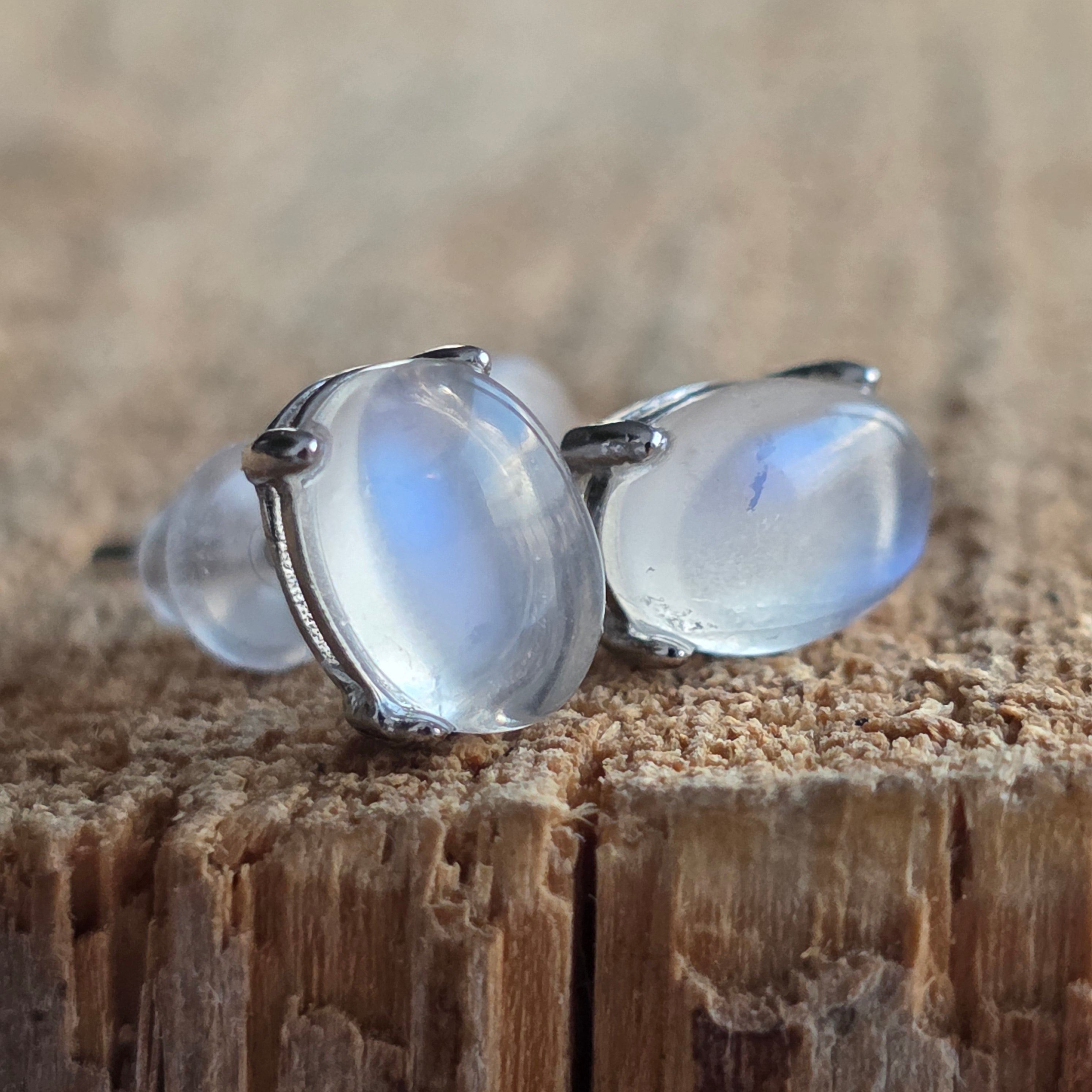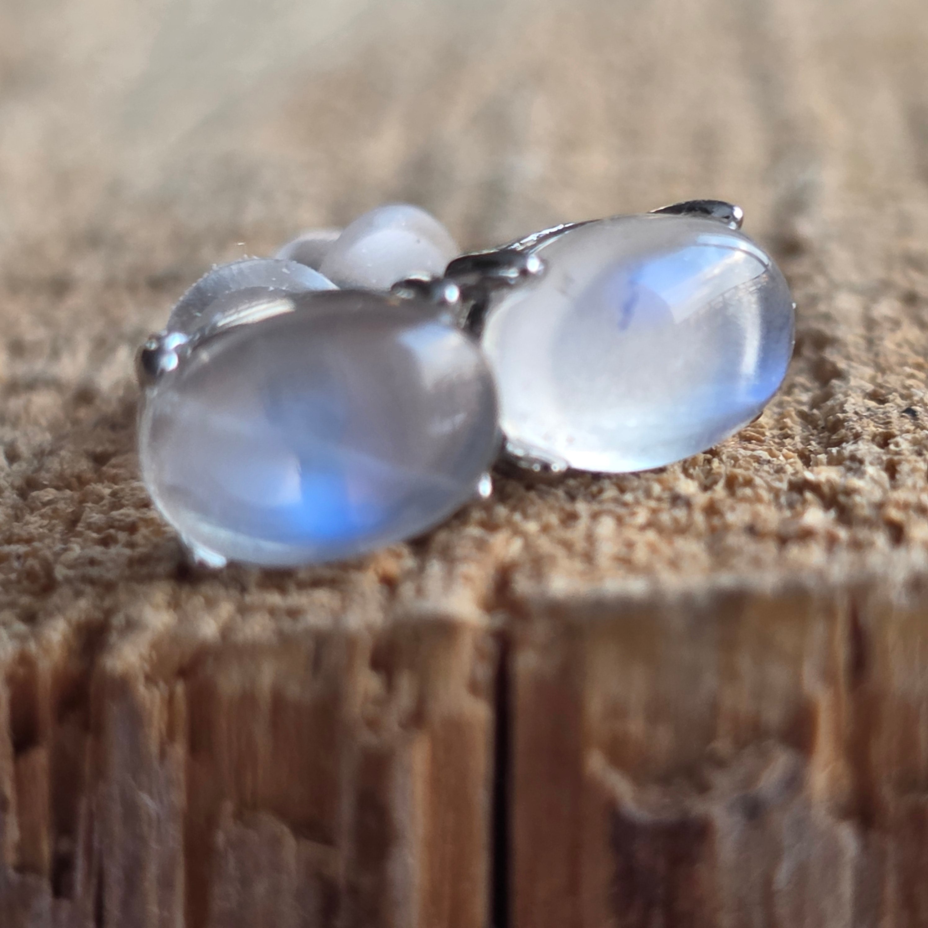 Pendientes de botón con piedra de luna de plata 6 mm Ovalada