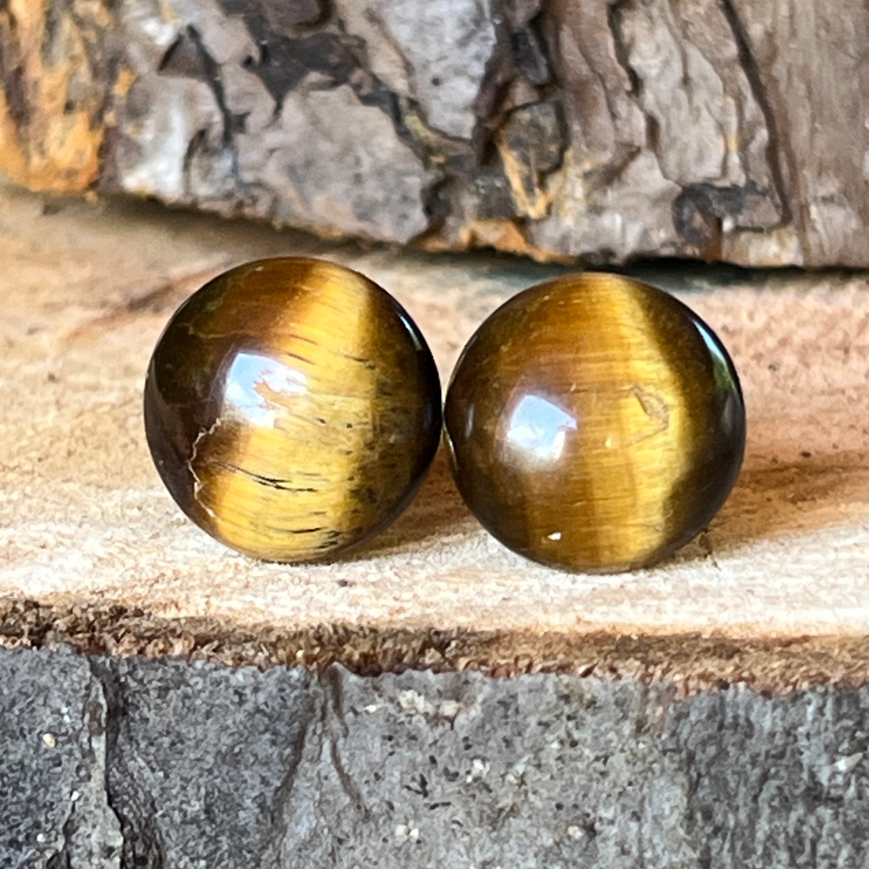 Pendientes de botón semiesféricos ojo de tigre 15-16 mm