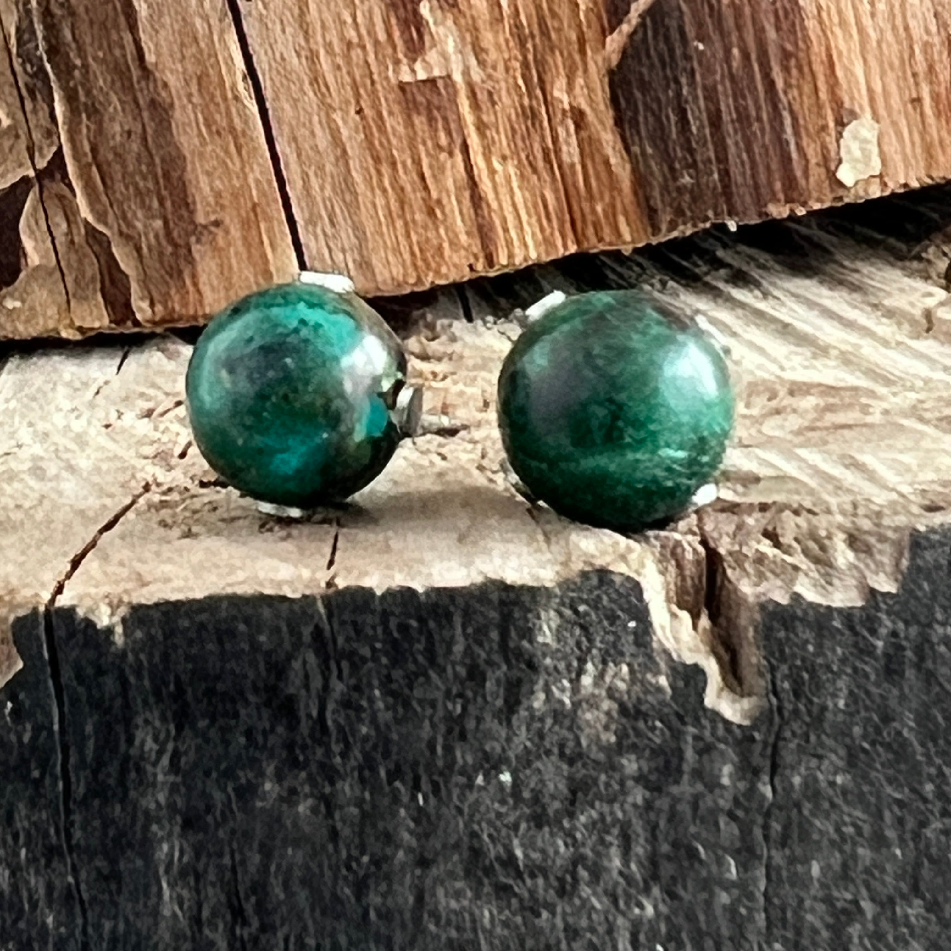 Estos pendientes de crisocola combinan bien con pulseras de amazonita, aguamarina o turquesa, creando una combinación armoniosa para el equilibrio emocional y la claridad mental.