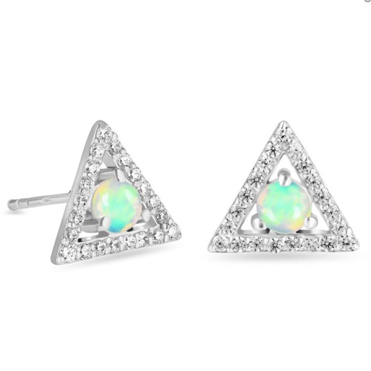 Pendientes de ópalo y topacio blanco de plata Triangle