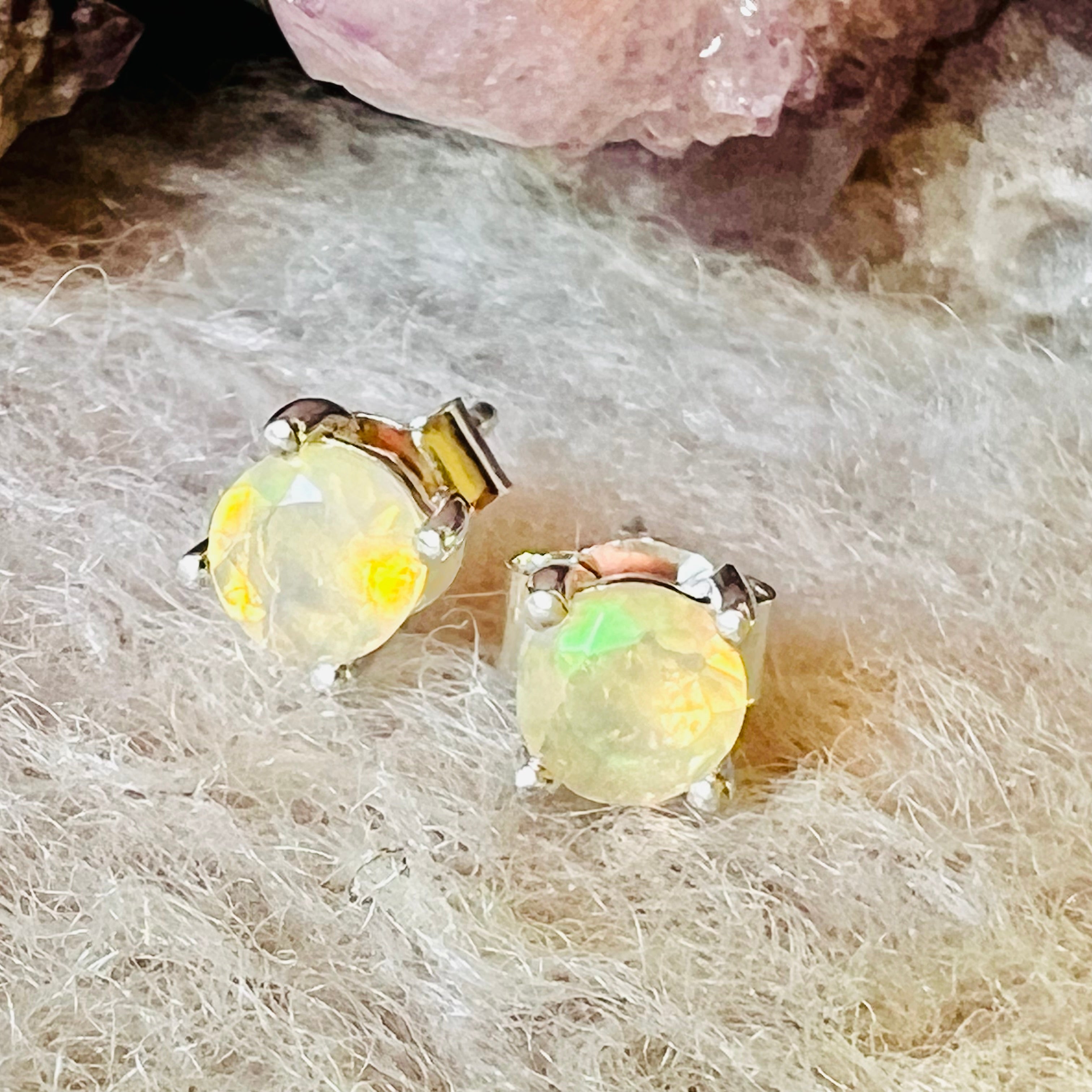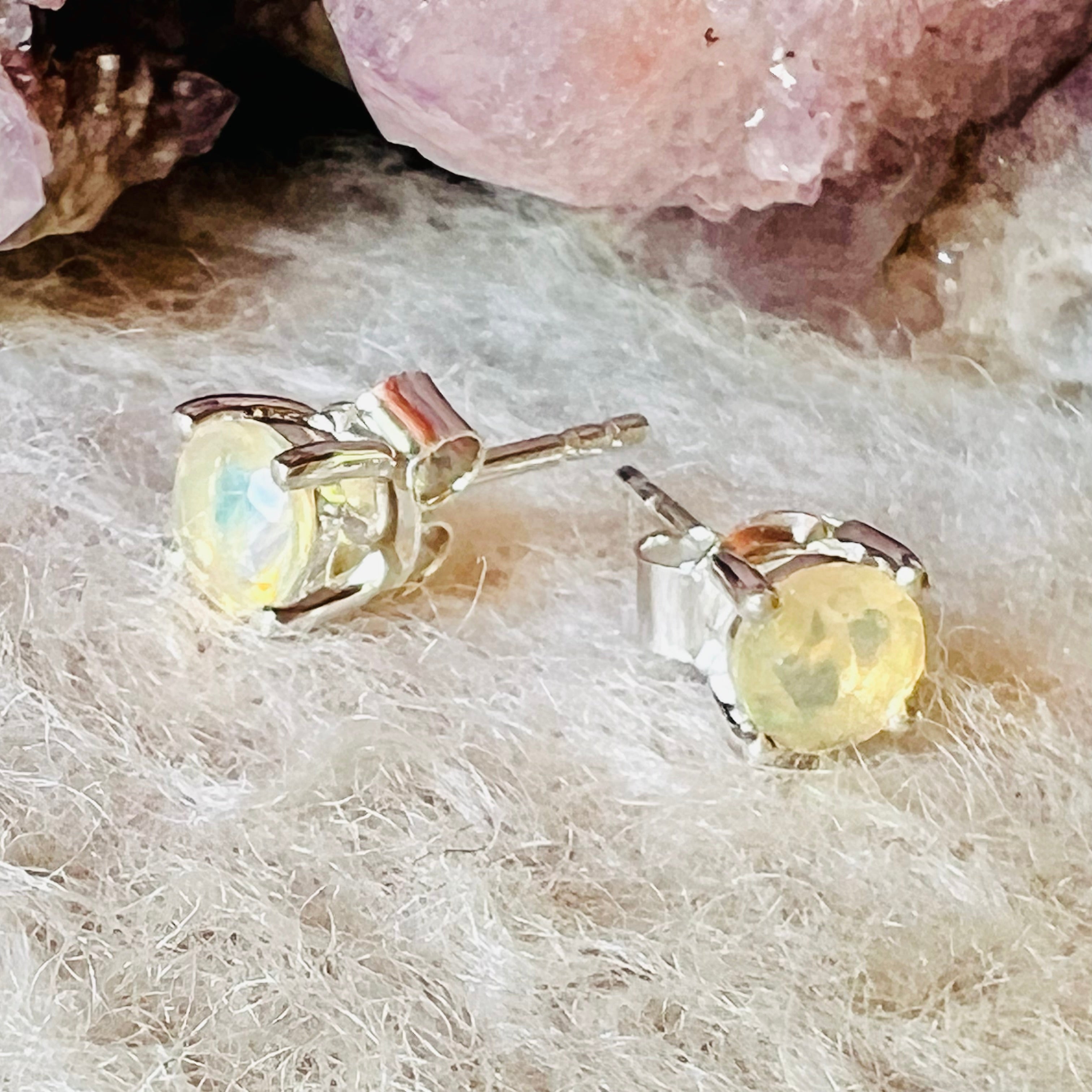 Descriere - Pendientes de plata con ópalo redondo 5 mm