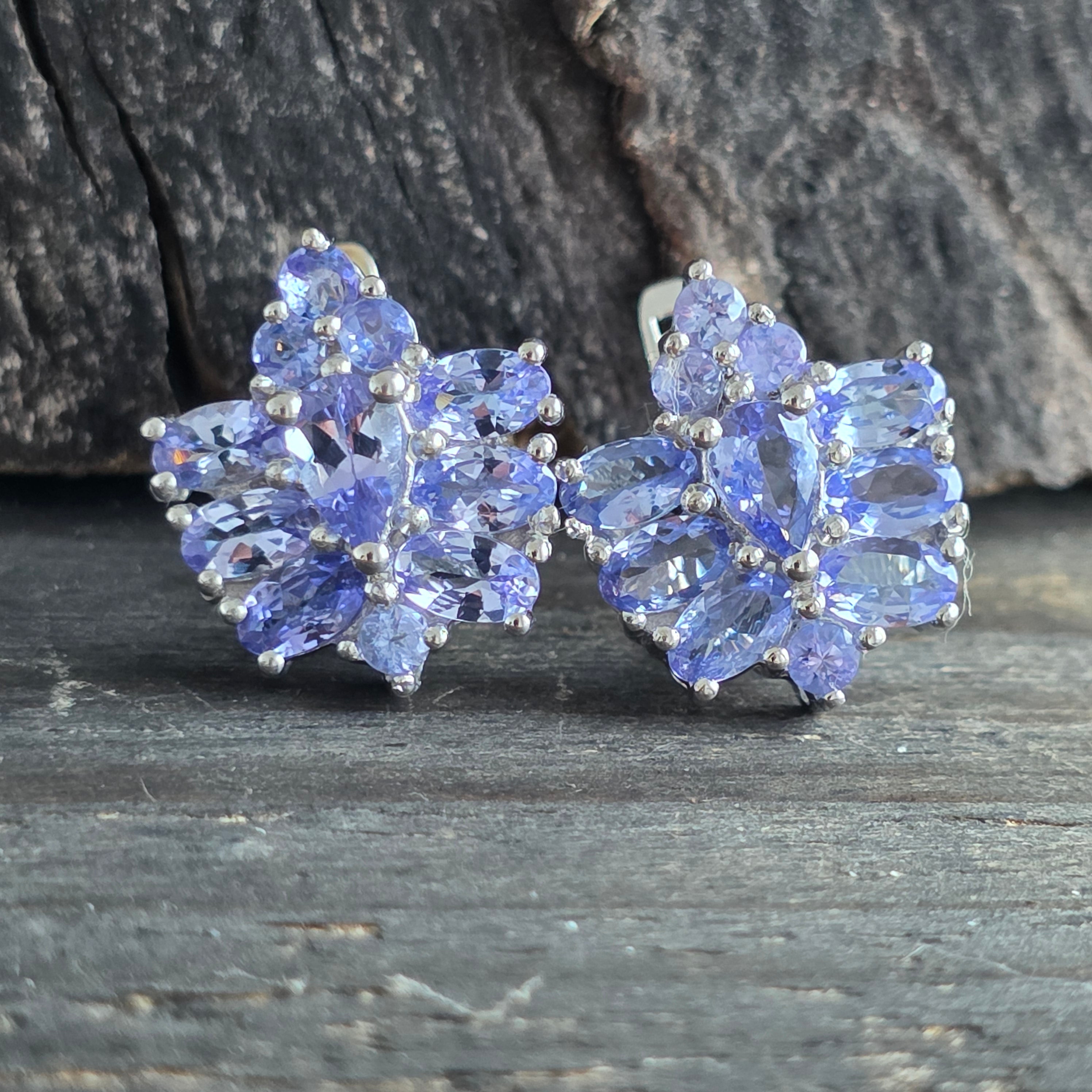 Pendientes de plata con tanzanita | Flower 2