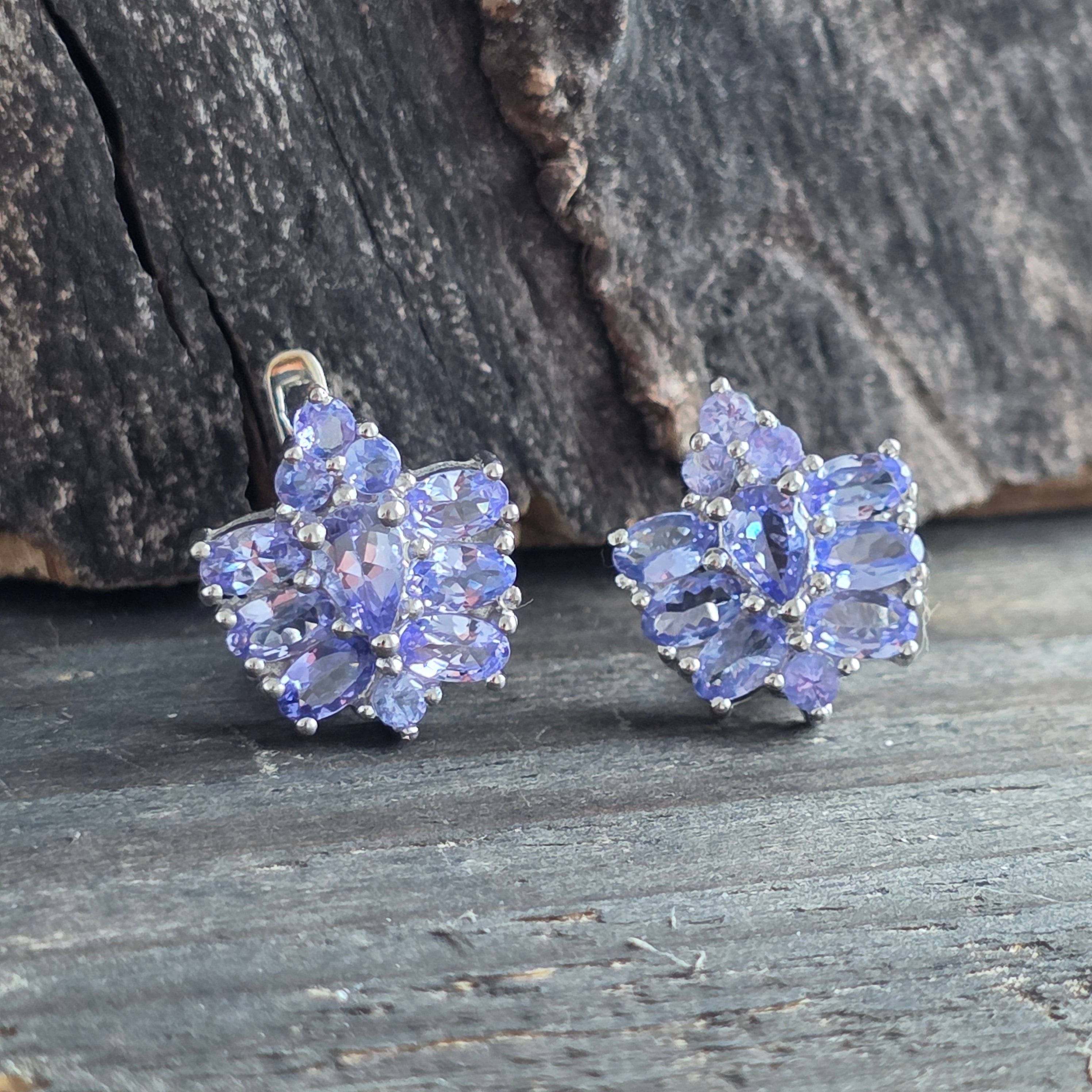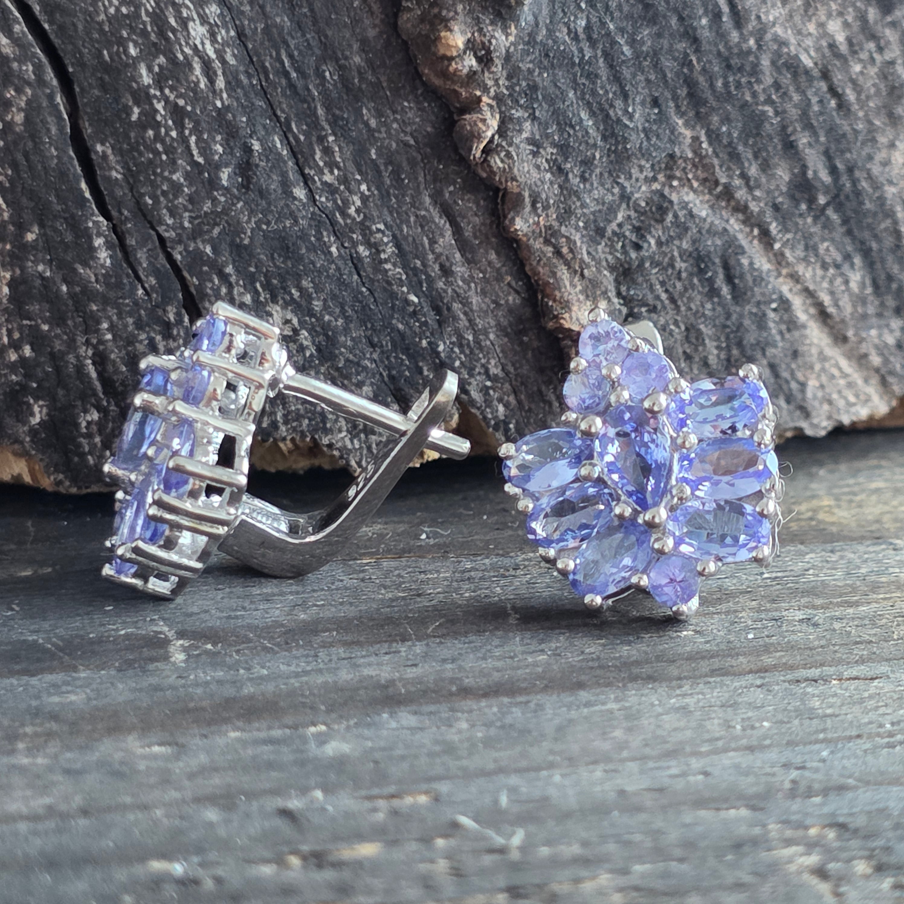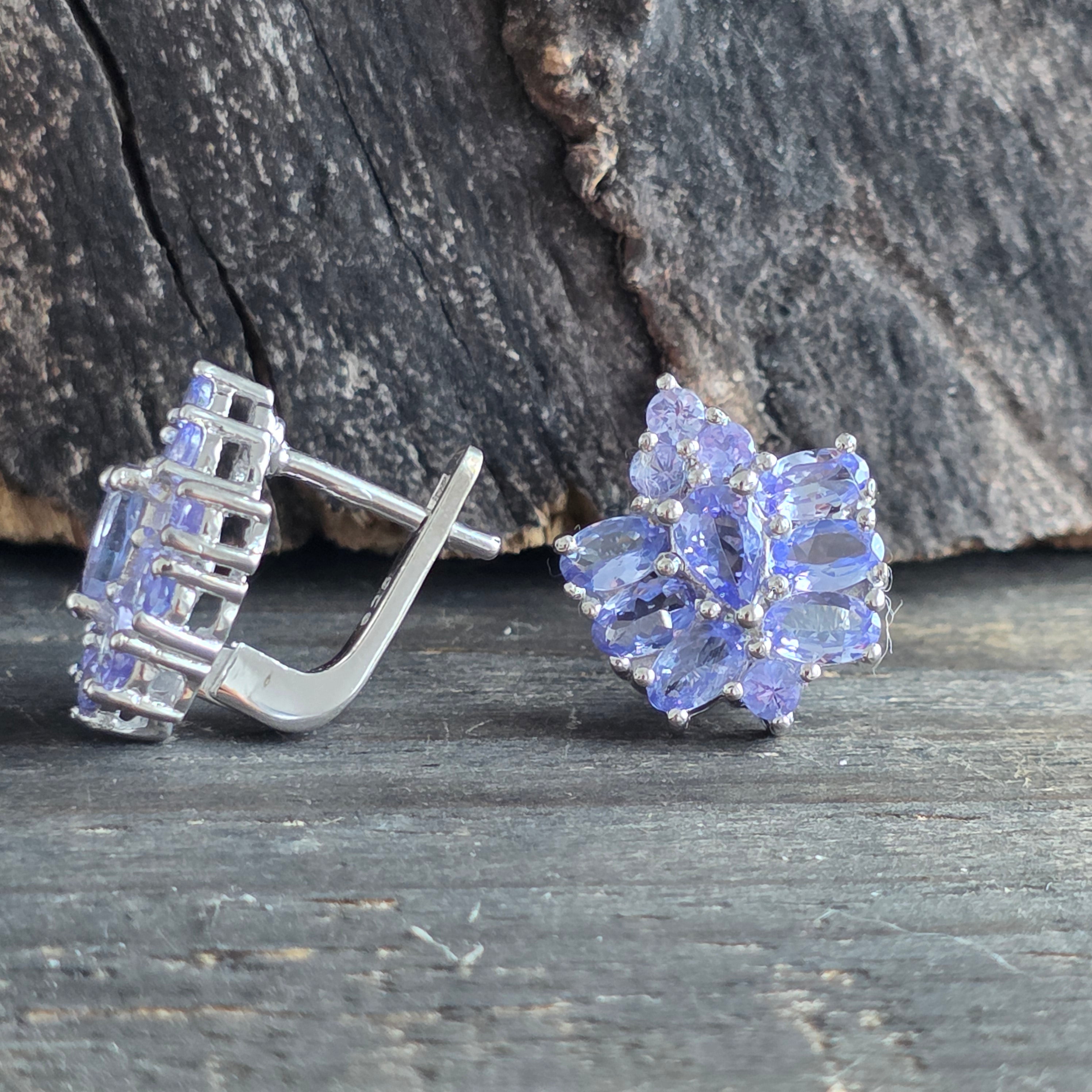 Descriere - Pendientes de plata con tanzanita | Flower 2