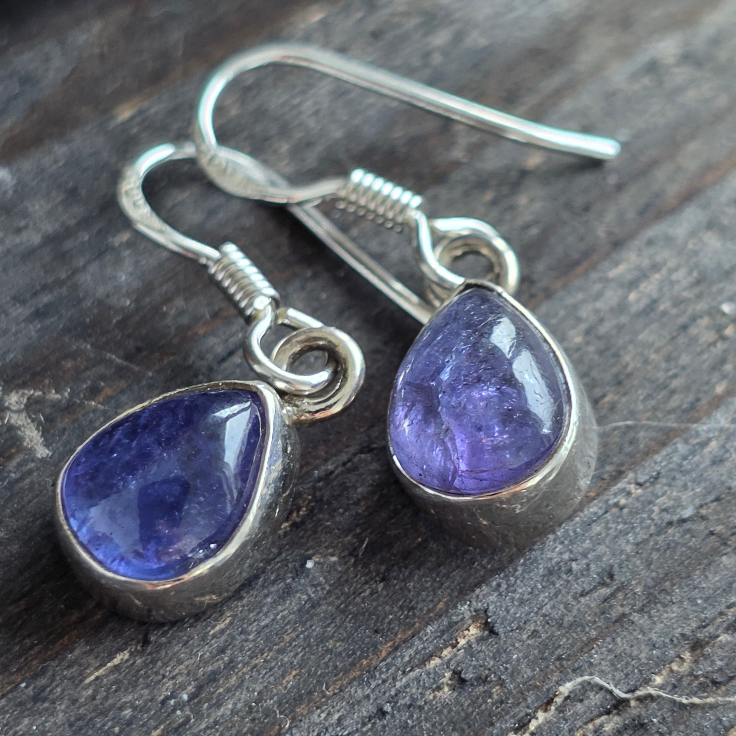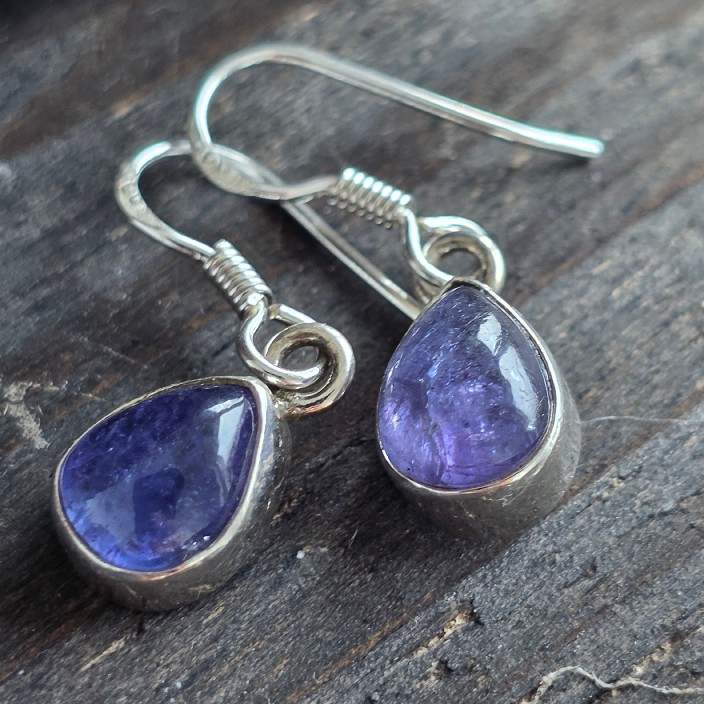 Estos elegantes pendientes de plata 925 rodiada llevan el encanto sutil de la piedra de tanzanita, una gema rara que irradia tonos de azul, violeta y lavanda según la luz.