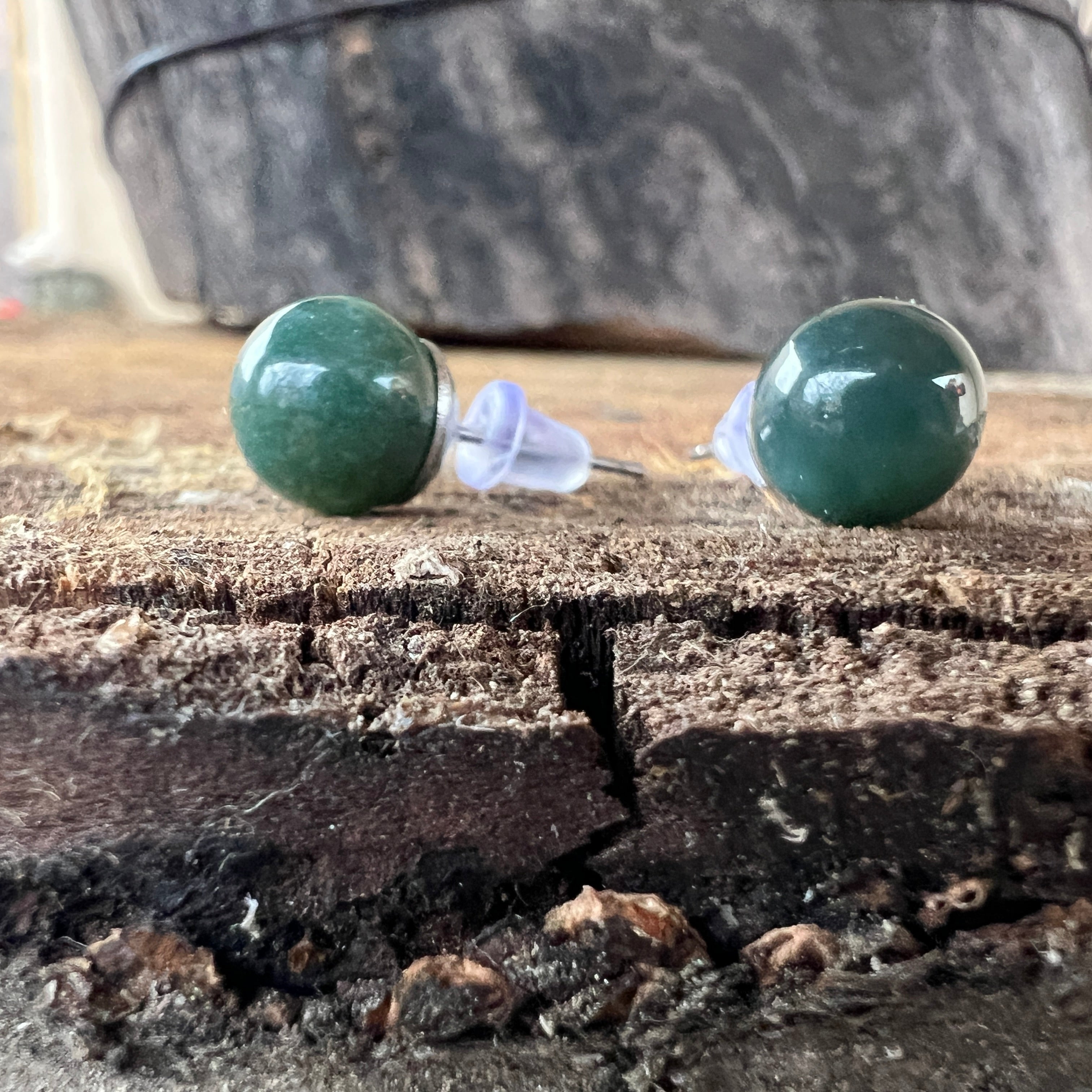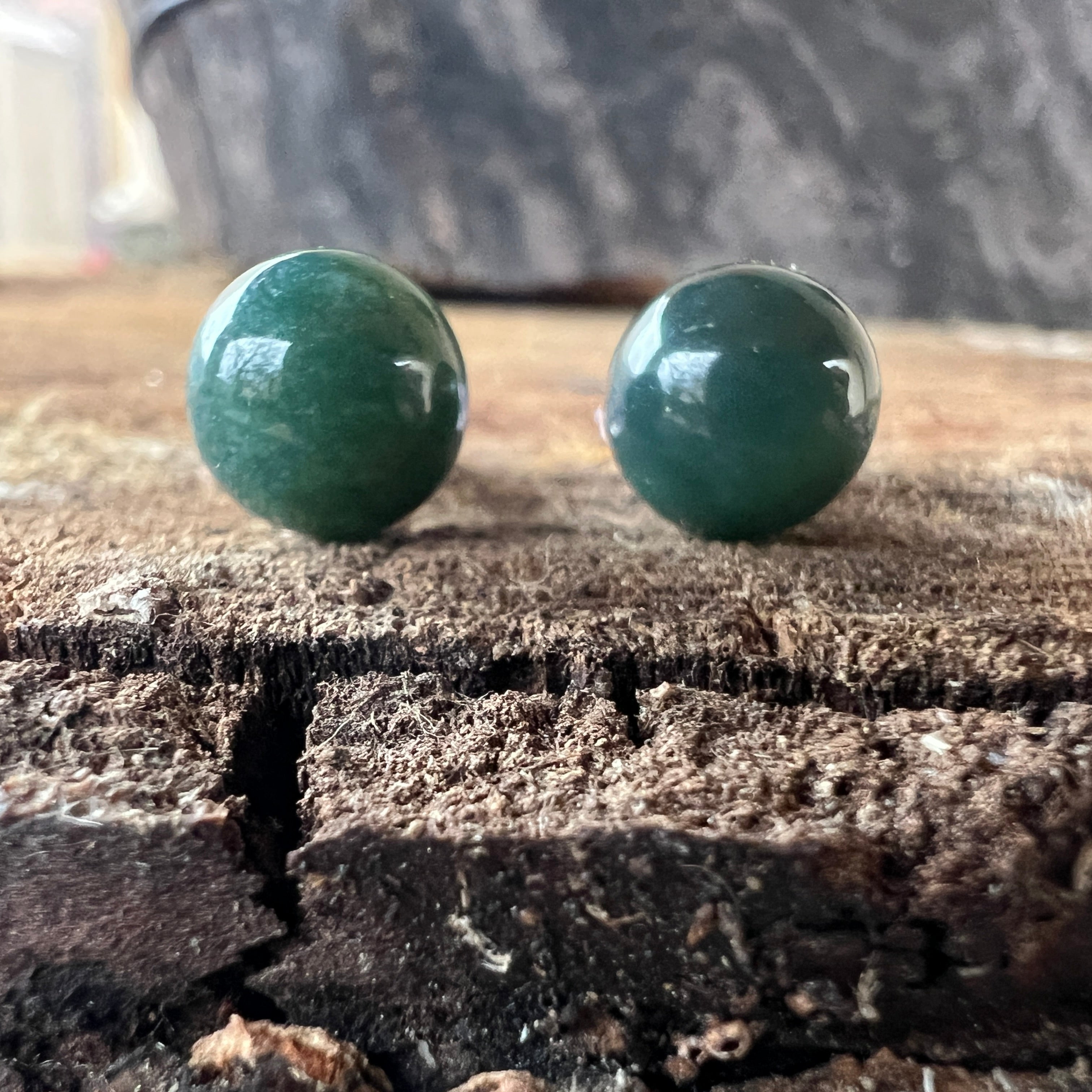 Pendientes de tachas Esferas de musgo de ágata 8 mm