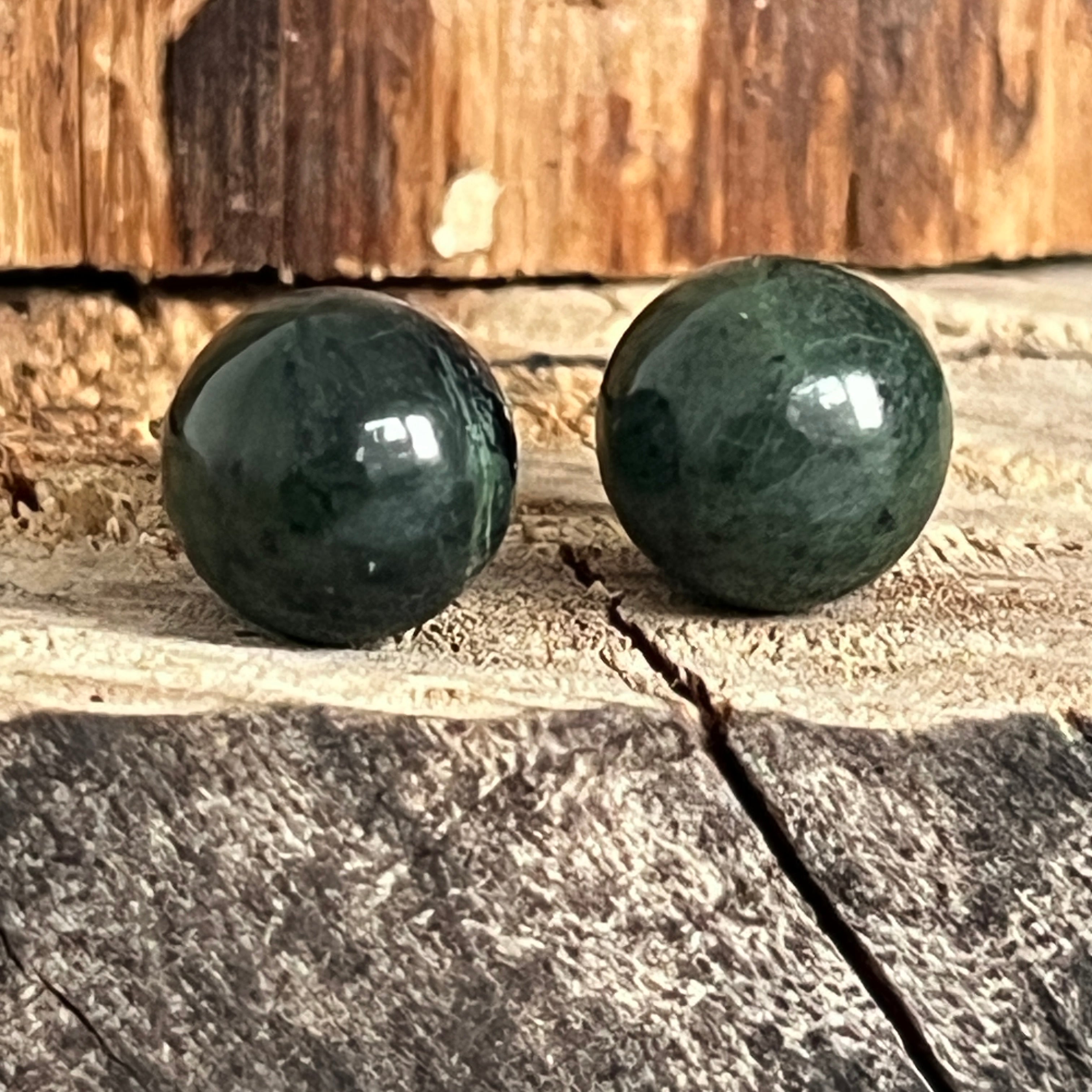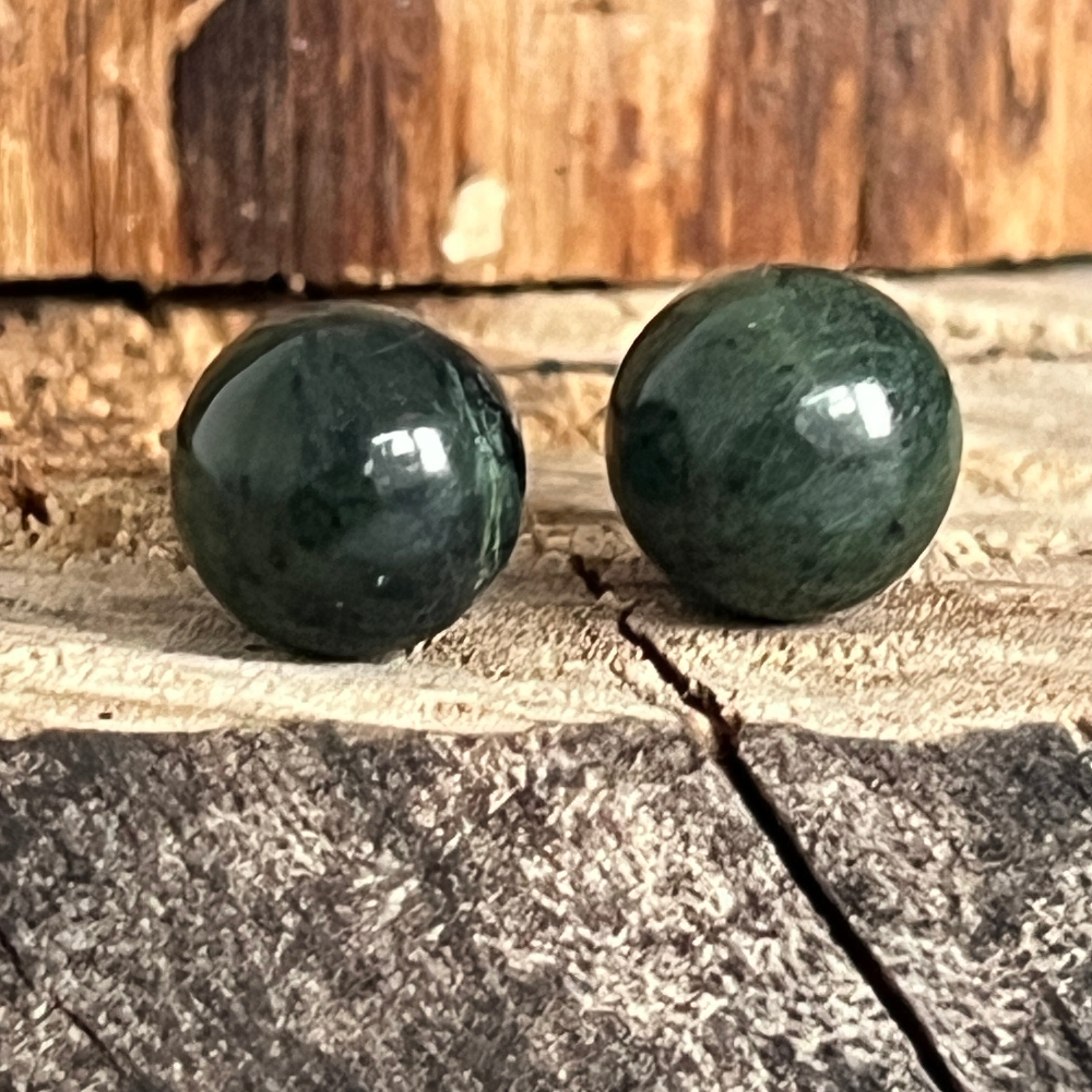Lleva estos pendientes de jade nefrita como una promesa de equilibrio y armonía. Cada esfera verde refleja la tranquilidad de la tierra y la energía de la vida que fluye libremente, ayudándote a mantenerte anclado(a) en paz y claridad.