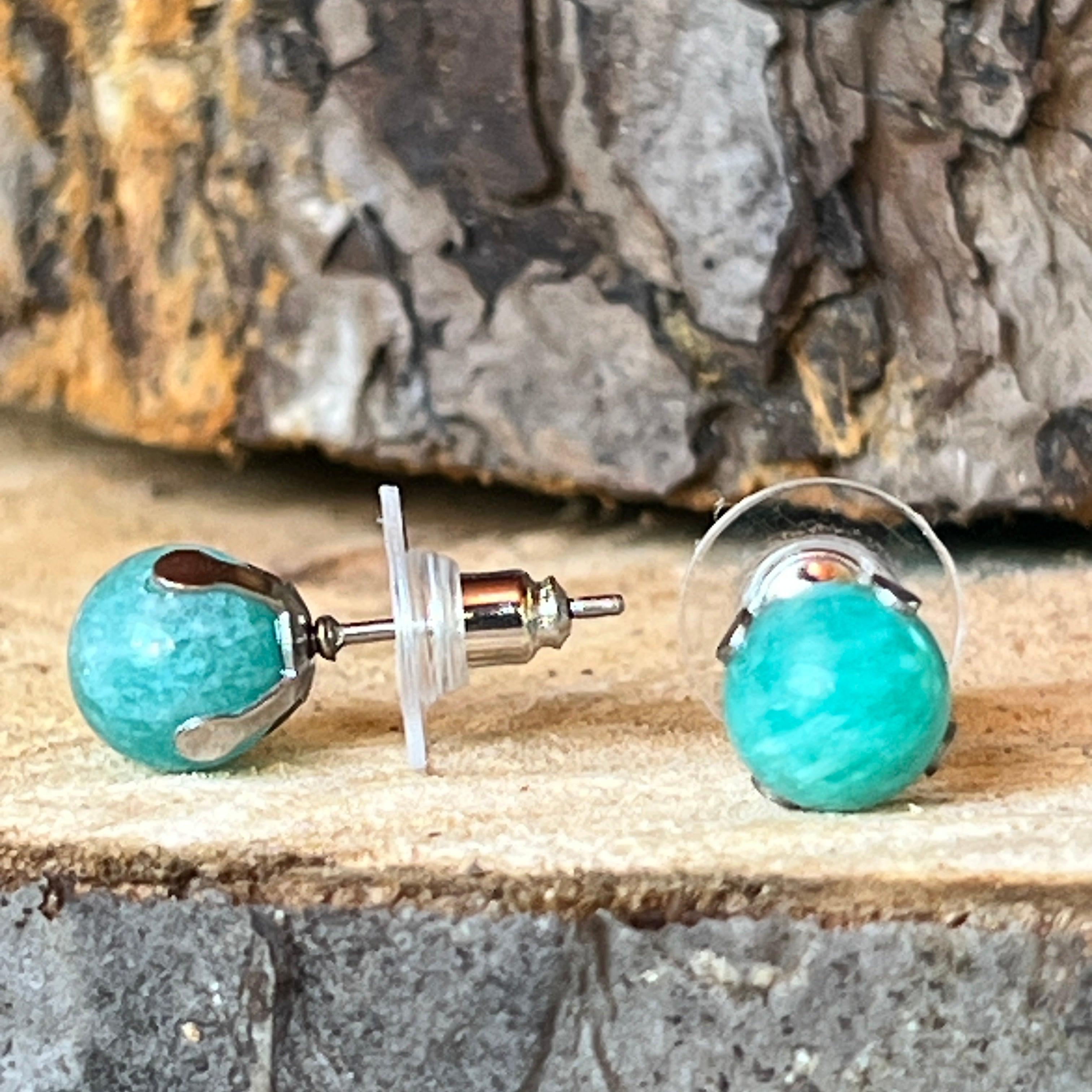 Pendientes de estudio con esferas de amazonita de 8 mm