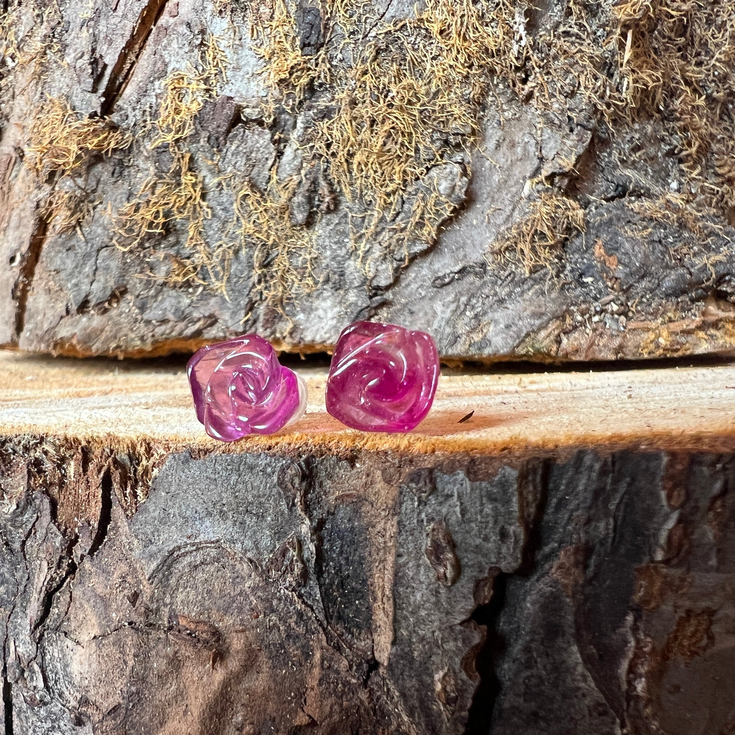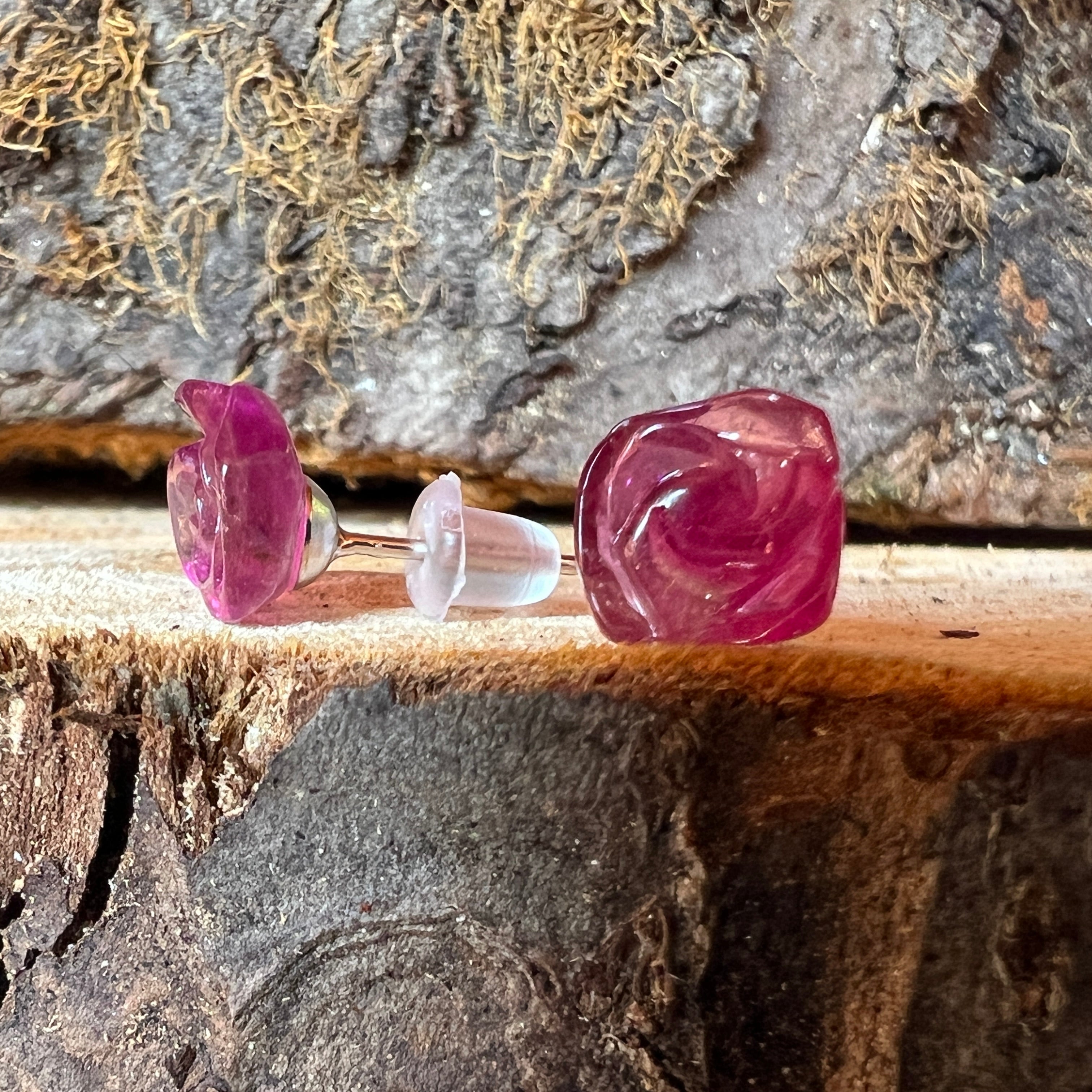 • Piedra: turmalina rosa natural – forma esculpida tipo flor, tamaño de la piedra aprox. 0,8–1 cm
