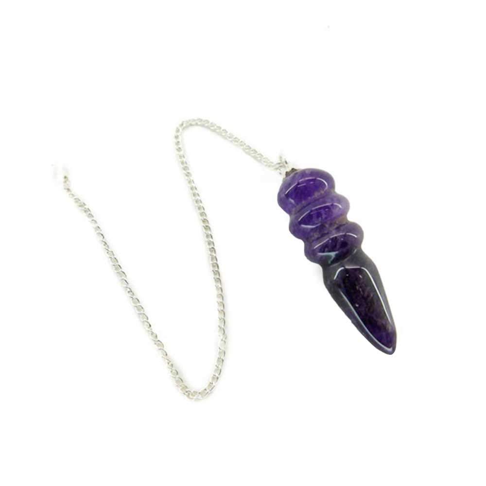 Hecho de amatista, la piedra de la sabiduría y la tranquilidad, este péndulo es apreciado tanto por su belleza como por su capacidad de sostener la claridad mental y la intuición en prácticas energéticas.