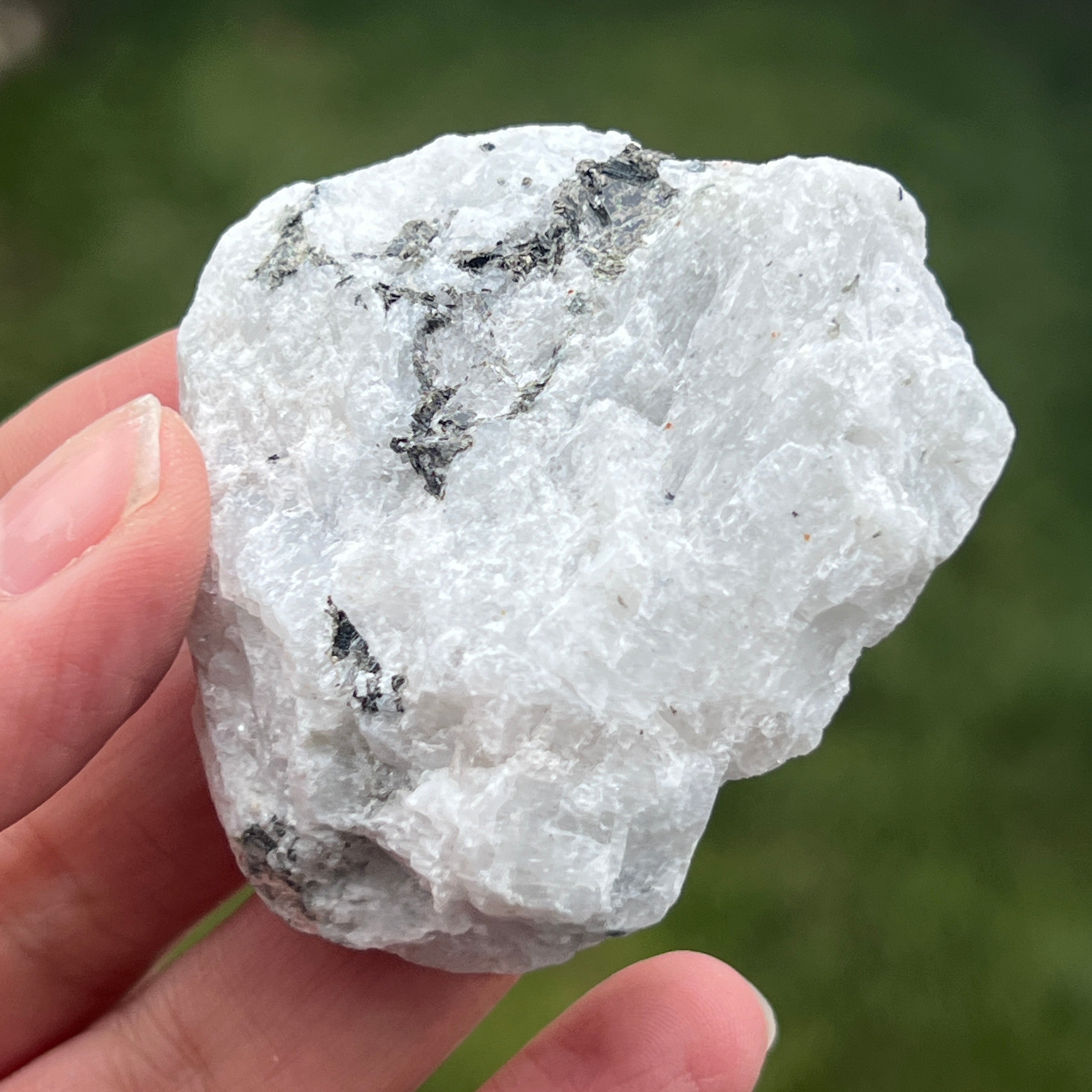 Reseñas - Piedra de luna con inclusiones de turmalina - piedra en bruto m12