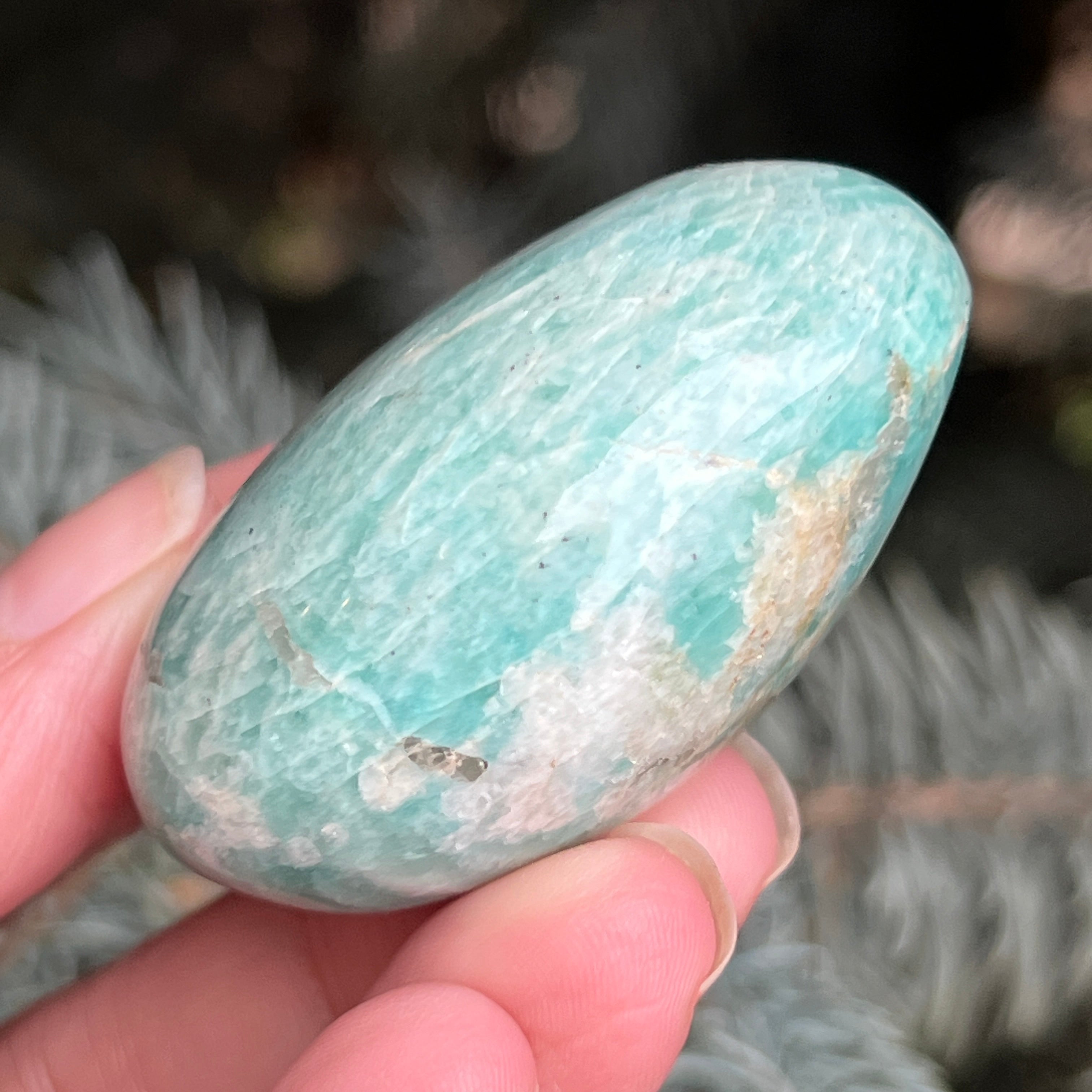 A la amazonita también se le llama portadora de la paz. Se considera una piedra del equilibrio, que puede ayudar a calmar el nerviosismo, las emociones, favorece la expresión auténtica y mejora las relaciones con quienes te rodean.