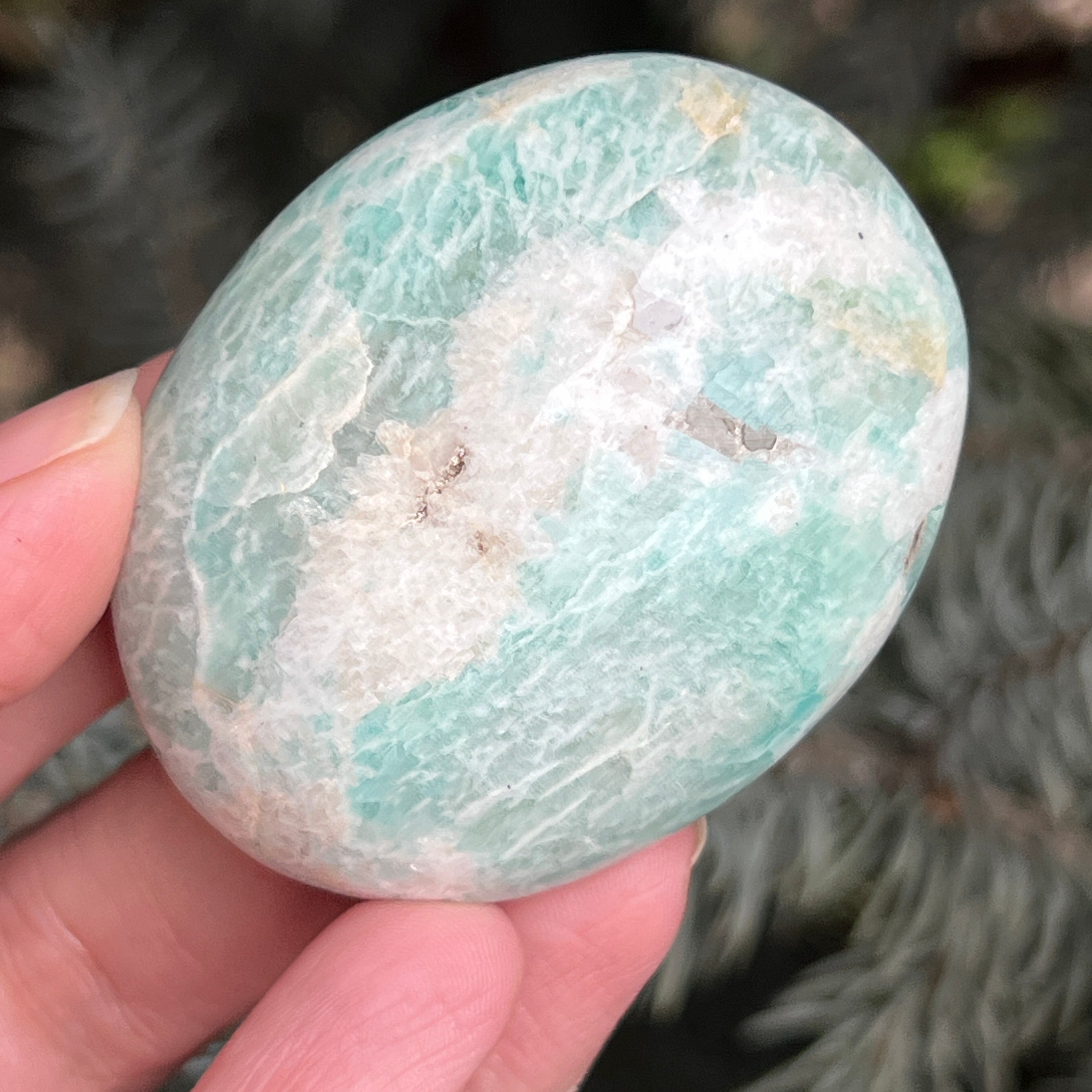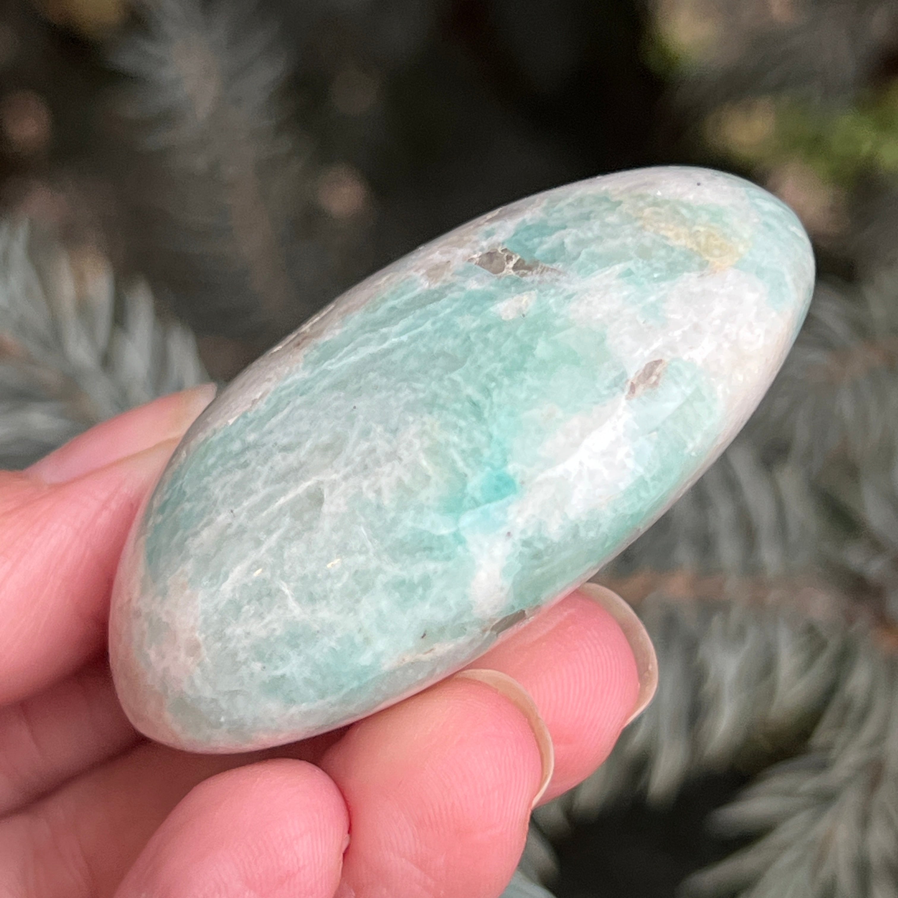 A la amazonita también se le llama portadora de la paz. Se considera una piedra del equilibrio, que puede ayudar a calmar el nerviosismo, las emociones, favorece la expresión auténtica y mejora las relaciones con quienes te rodean.