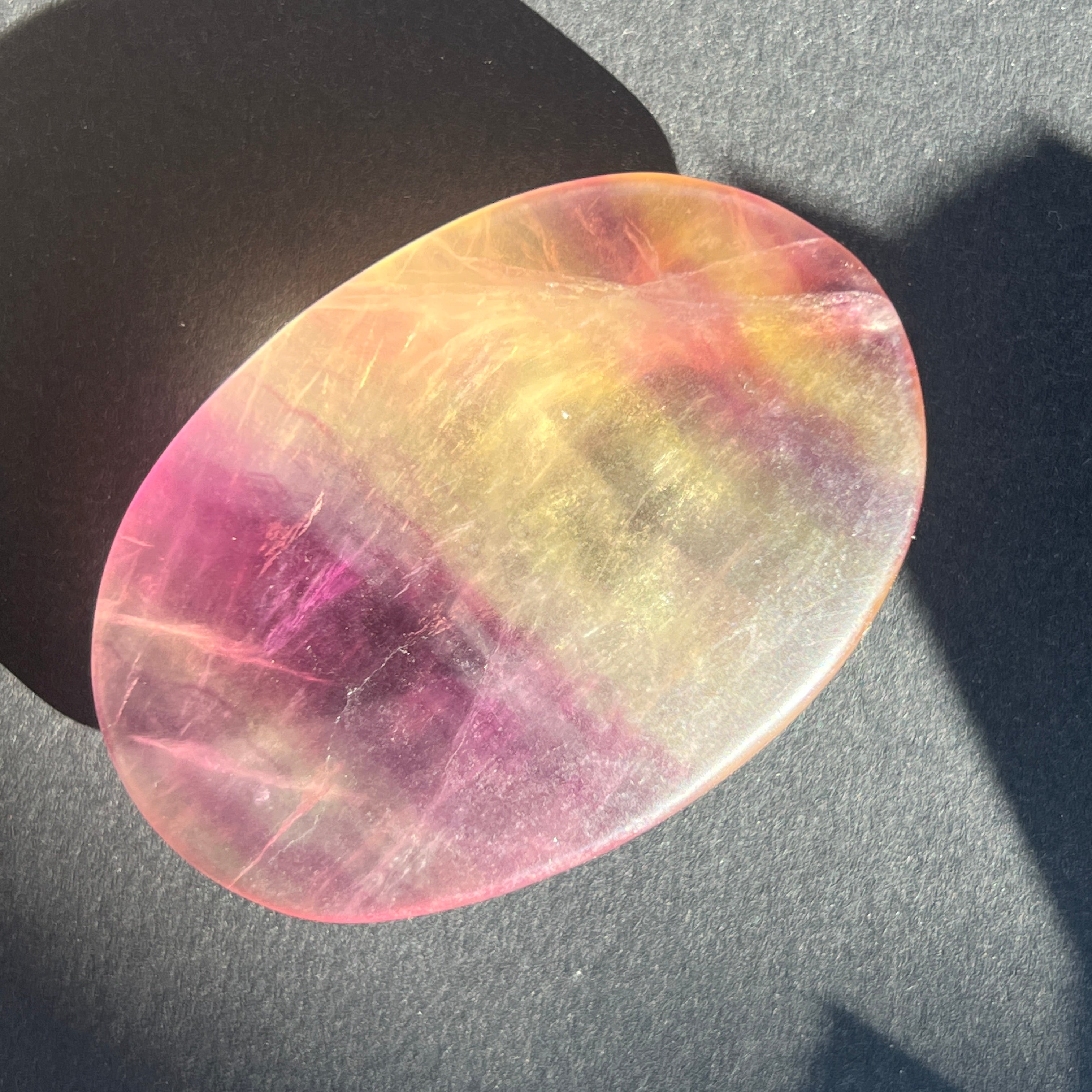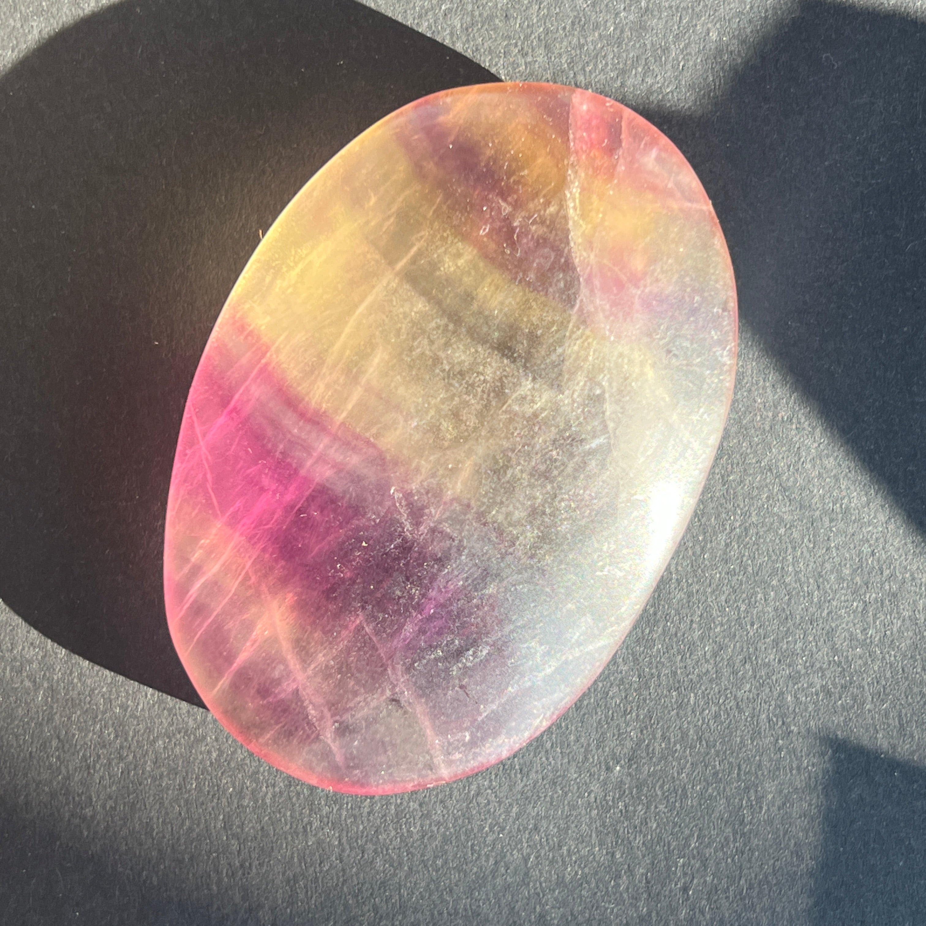 La fluorita arcoíris ayuda a equilibrar y armonizar la energía circundante y, a menudo, se utiliza para ver situaciones desde múltiples ángulos y ampliar nuestras perspectivas.