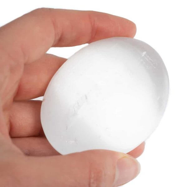 Piedra de palma ovalada de selenita, tamaño: 3,5-6,5 cm. El precio varía según el tamaño de la piedra, seleccione el tamaño deseado.