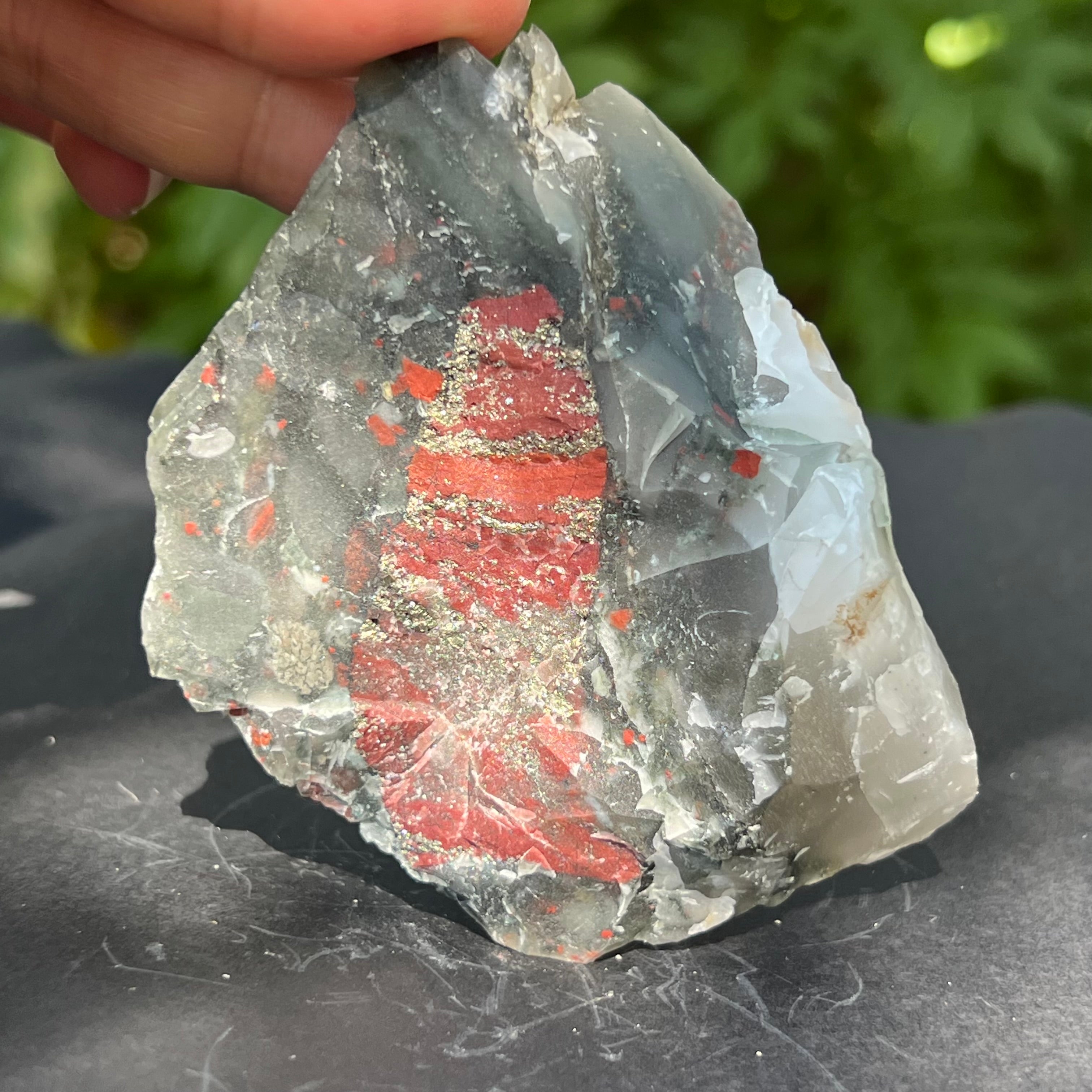 Se considera que el jaspe hematites tiene propiedades que aumentan el coraje y la confianza en uno mismo. Se dice que proporciona energía fuerte y valiente, ayudándote a expresar tus ideas y opiniones con confianza.