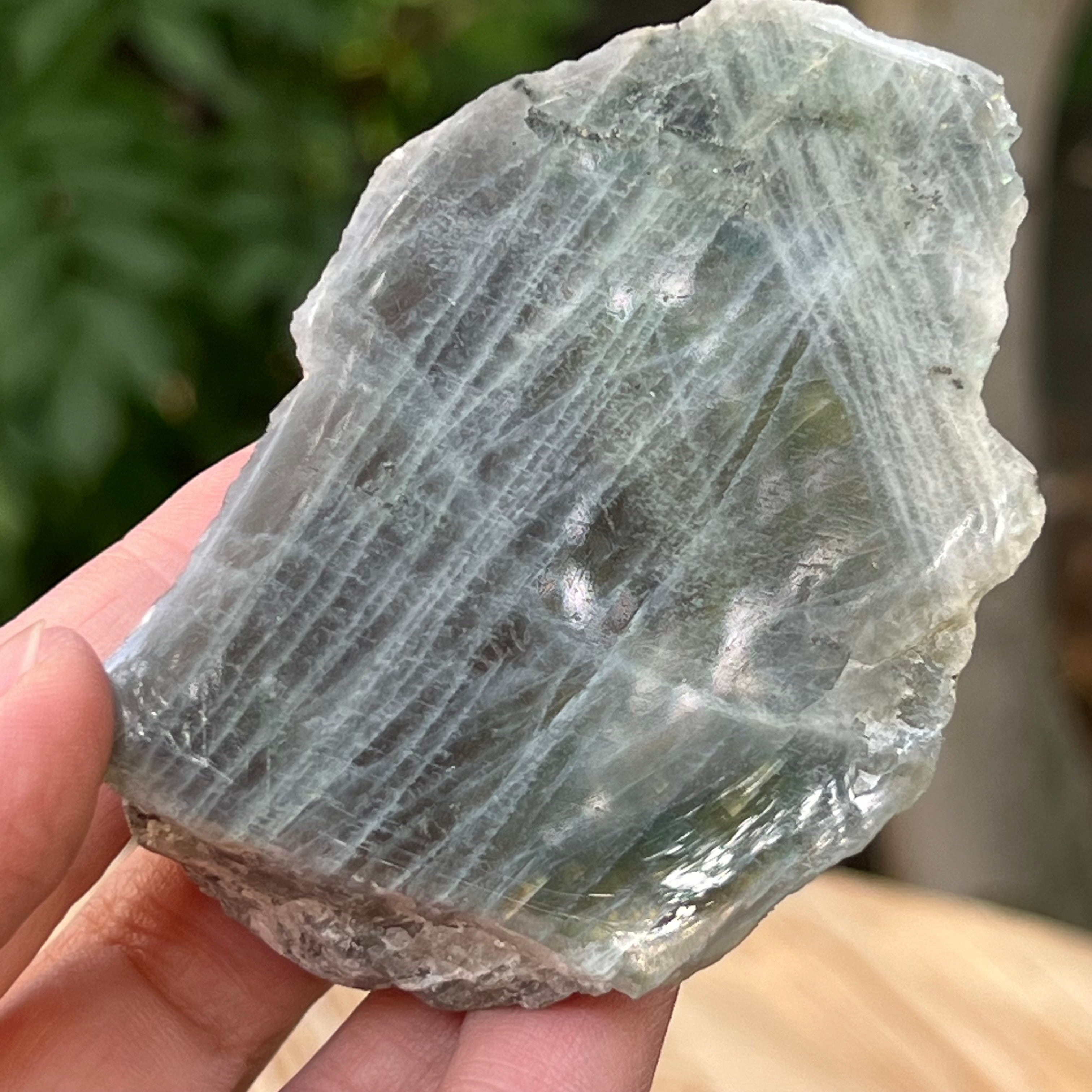 Piedra en bruto labradorita pulida en una cara de Madagascar modelo 1