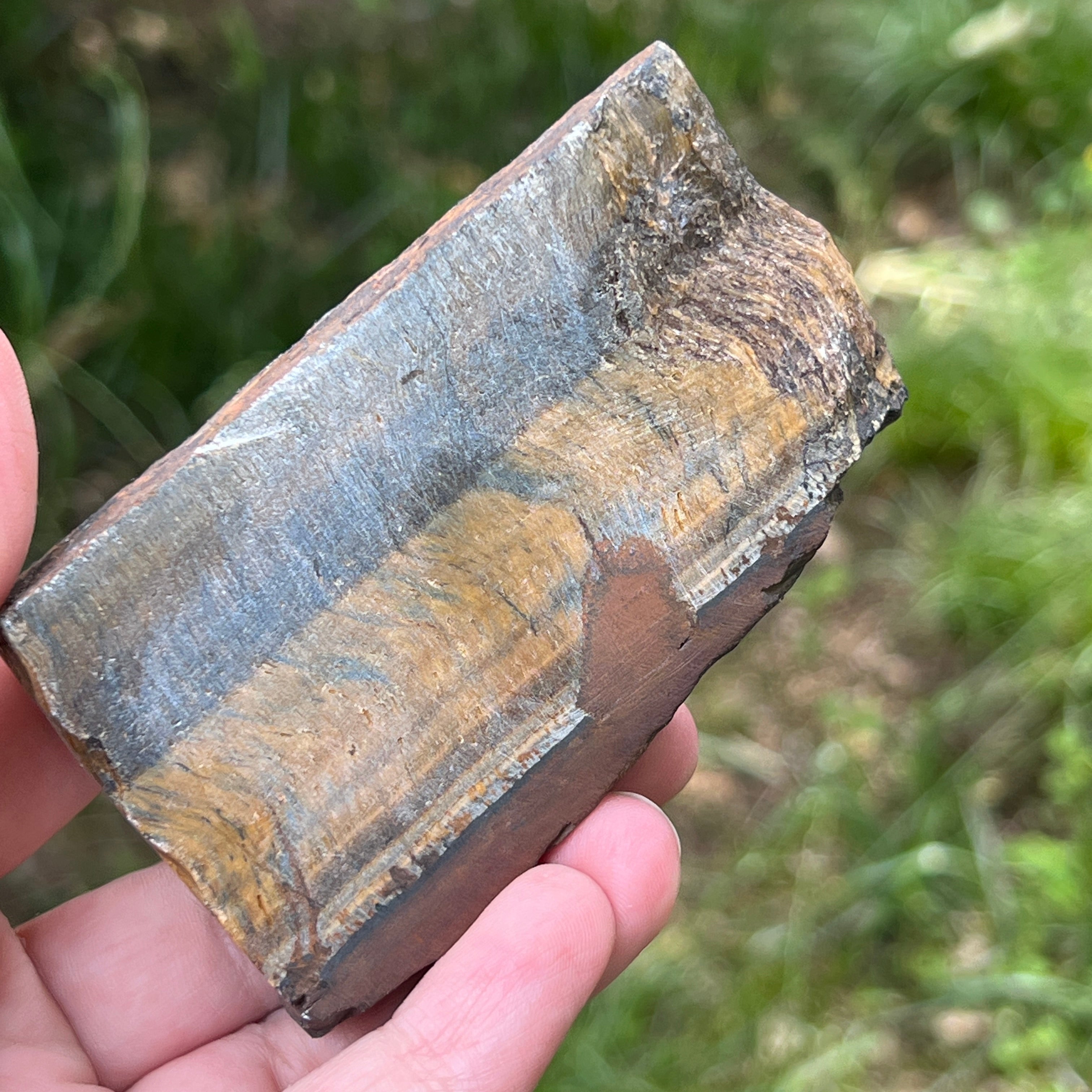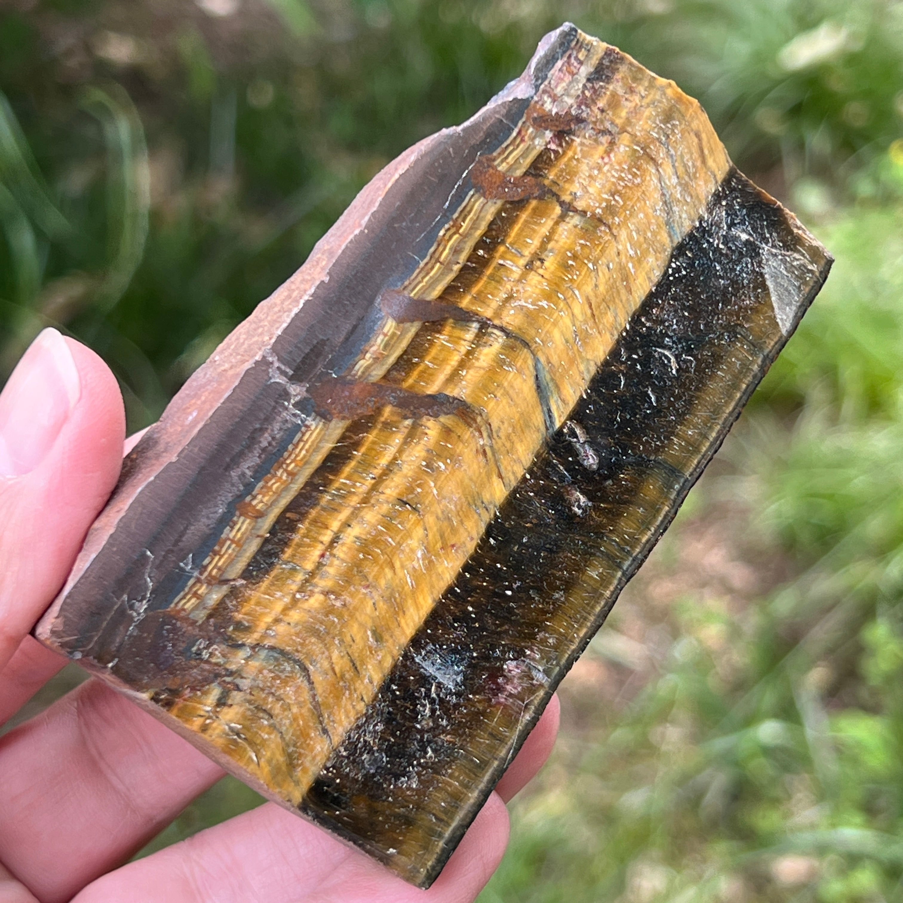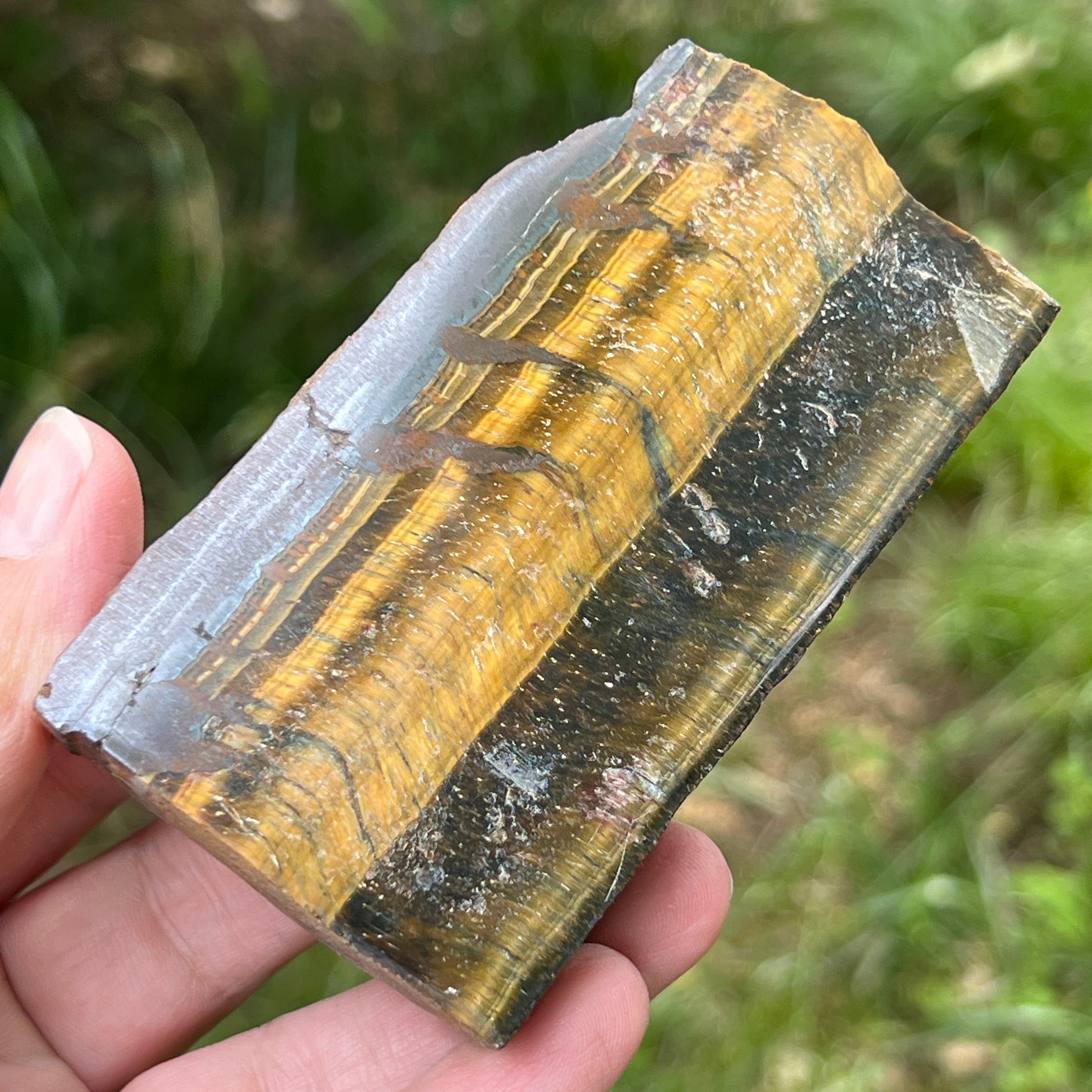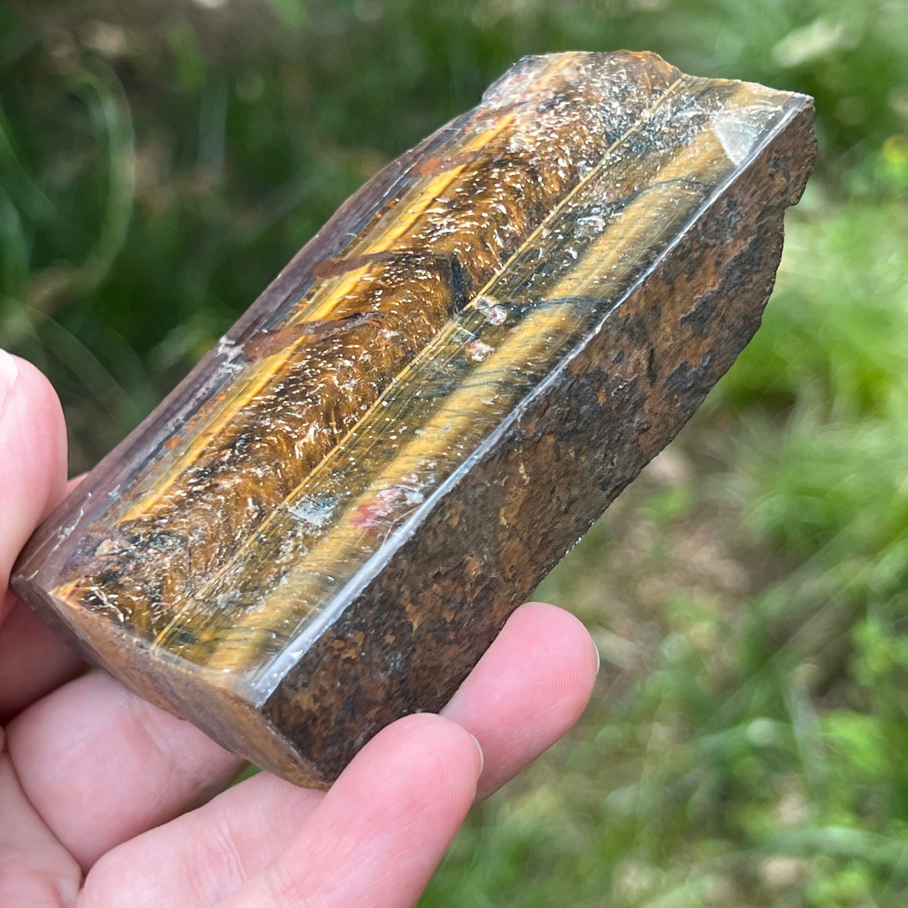 Piedra en bruto ojo de tigre modelo 1, tamaño: 8,9 x 5,1 cm