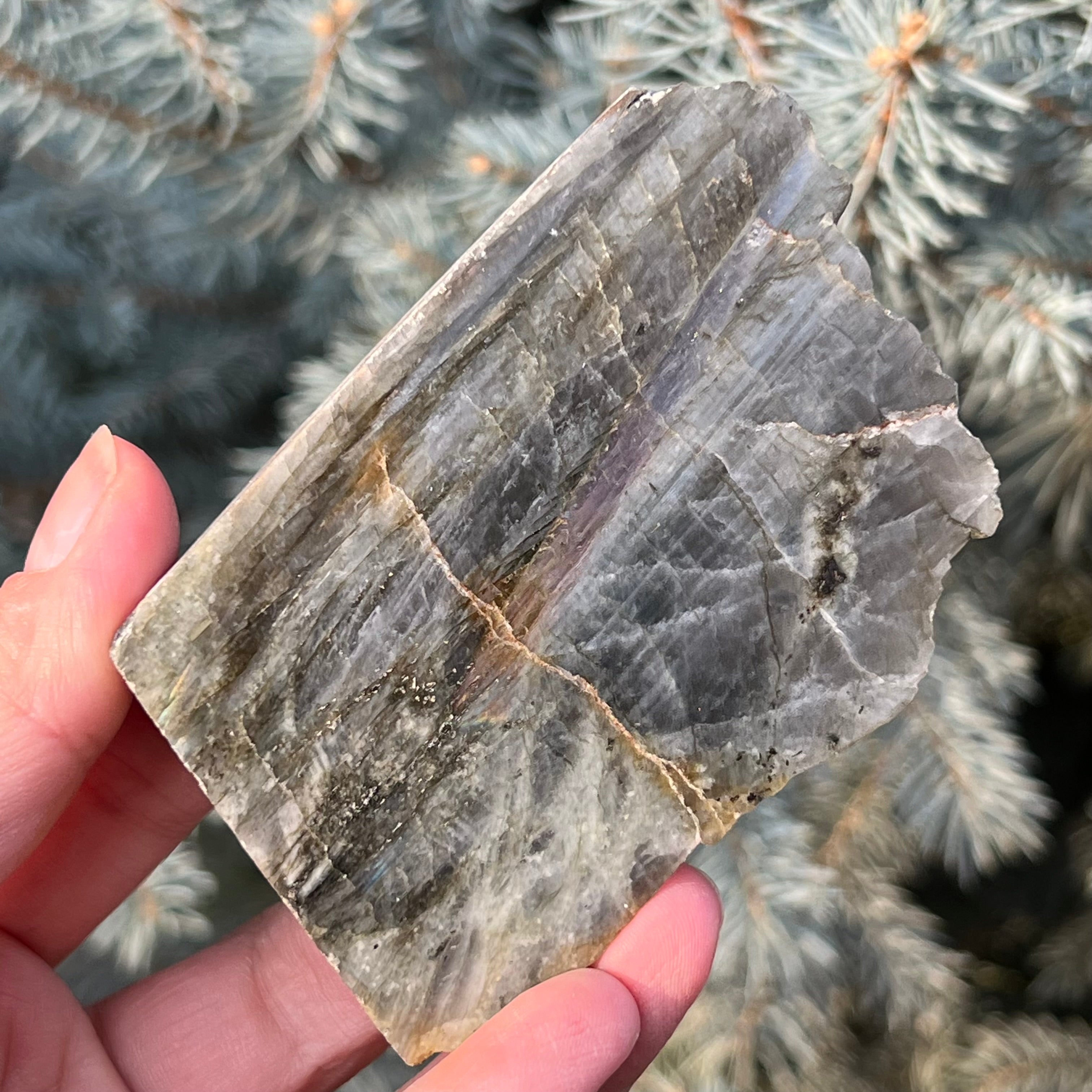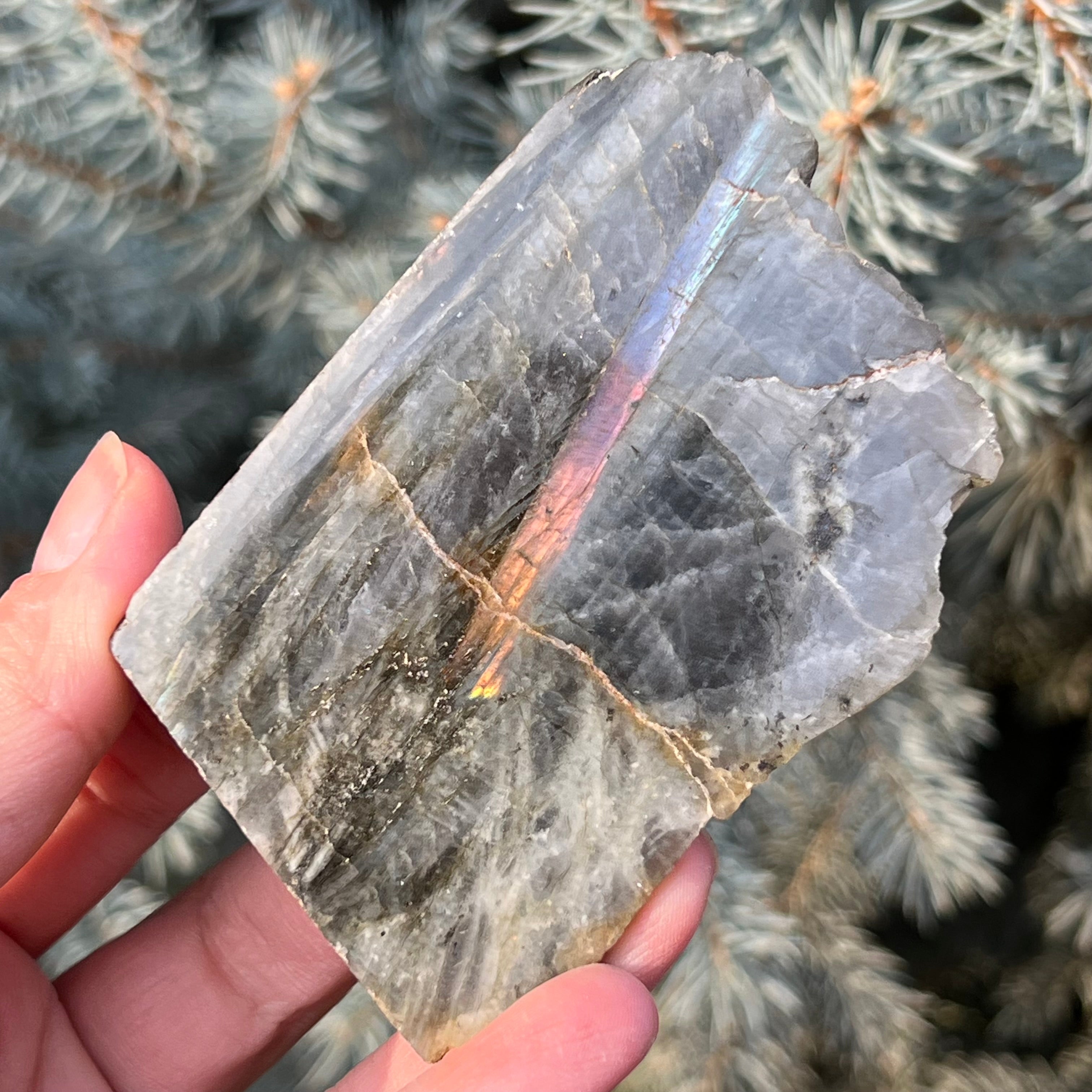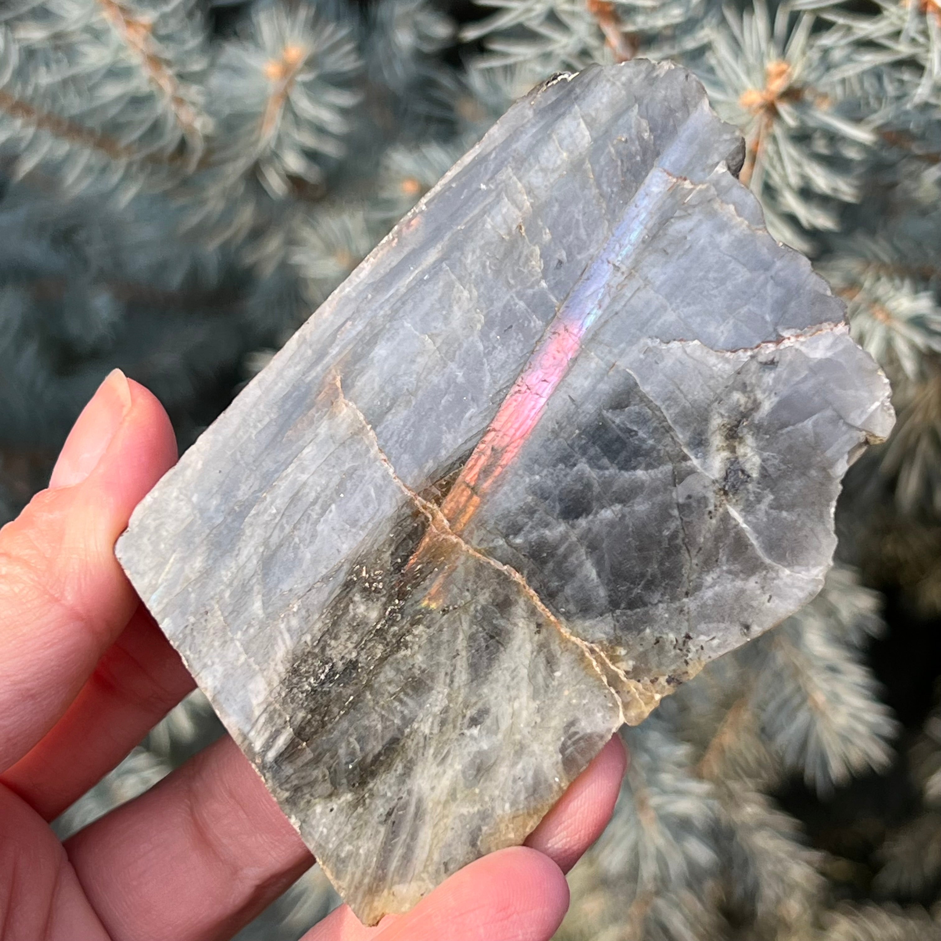 La labradorita es una piedra semipreciosa con un juego de colores que cambian según el ángulo de visión.