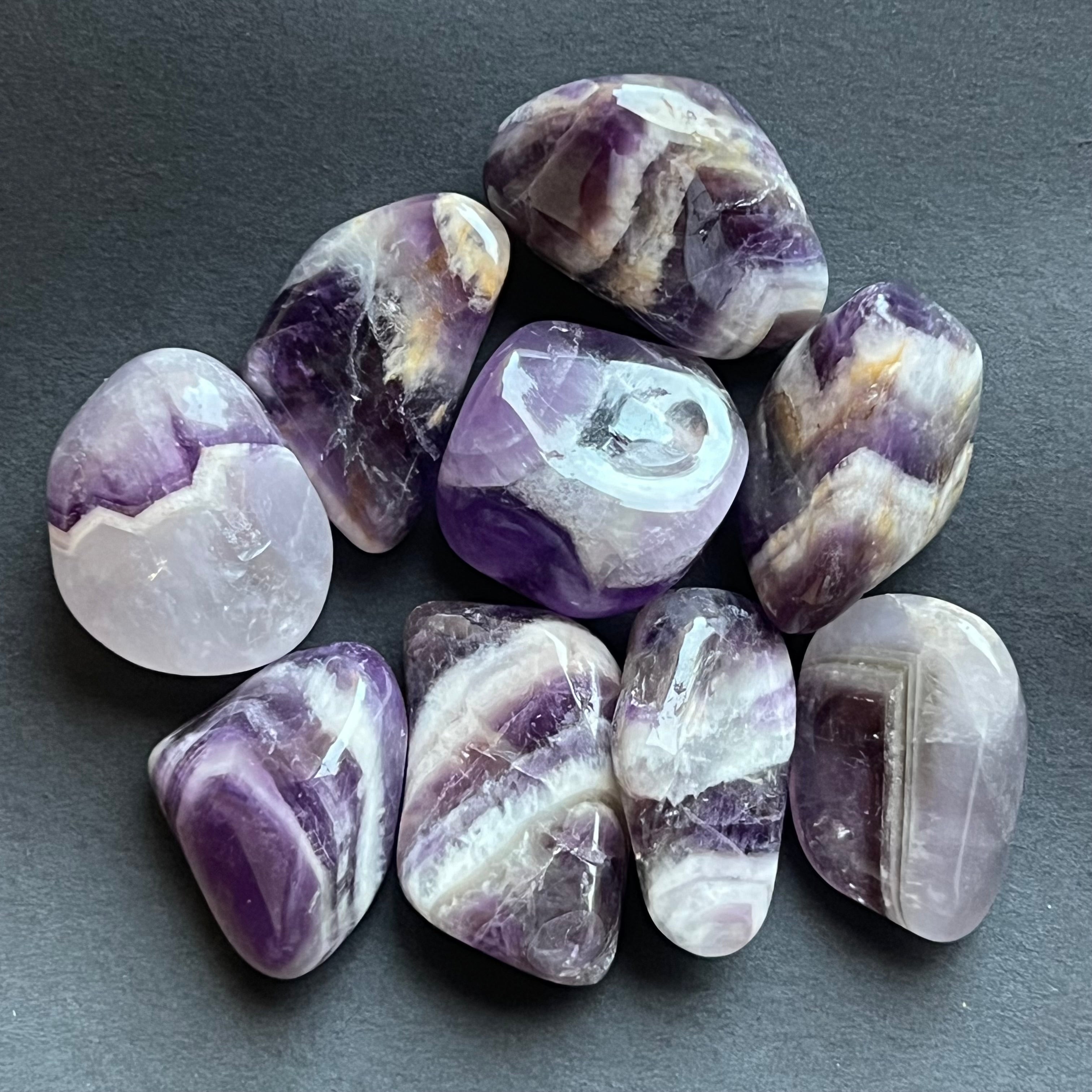 La amatista Chevron es reconocida por sus asociaciones con los chakras de la corona y del tercer ojo, lo que aumenta la intuición y la capacidad de tomar decisiones.