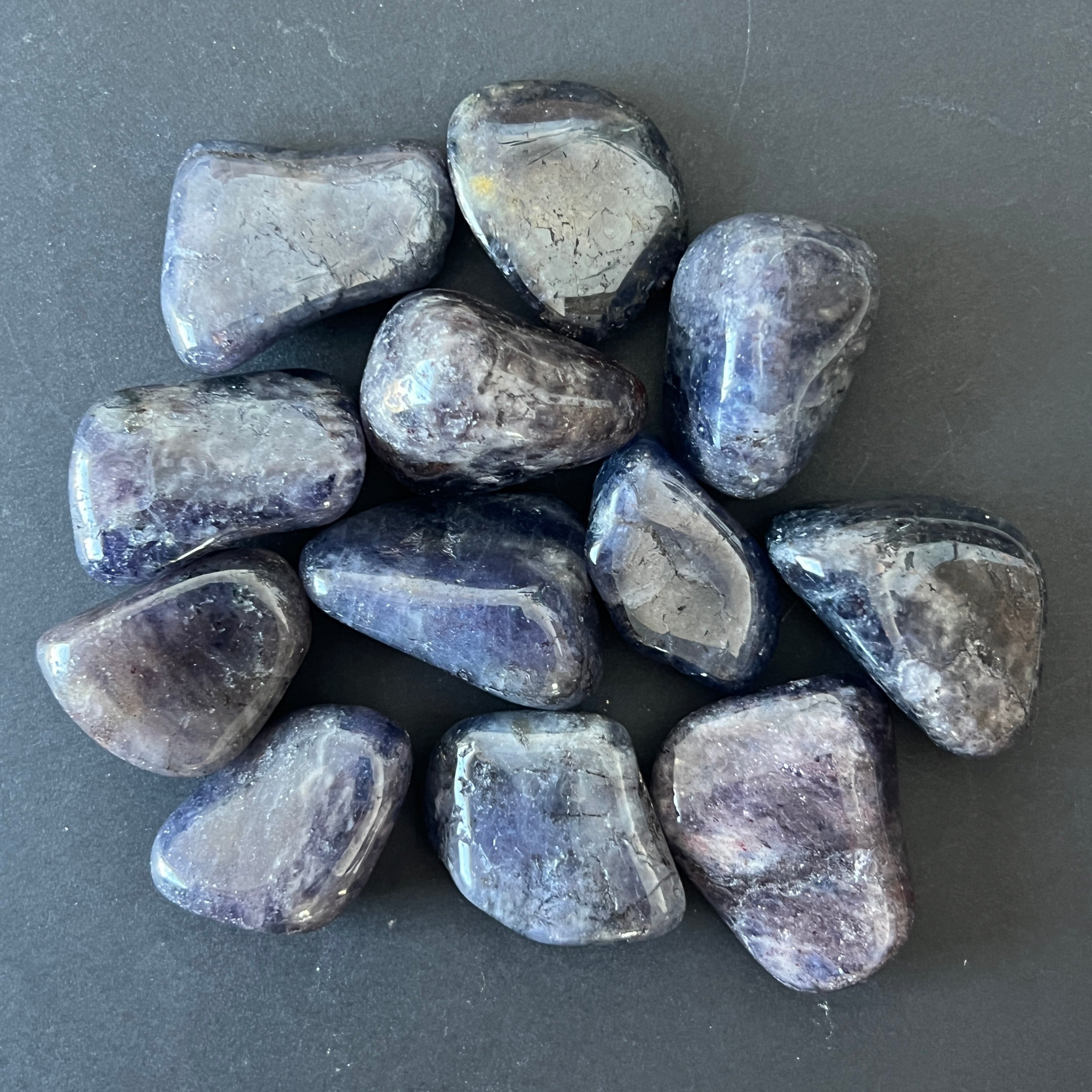 La iolita se considera una piedra de visión interior e introspección, que ayuda a desarrollar la claridad mental y la intuición.