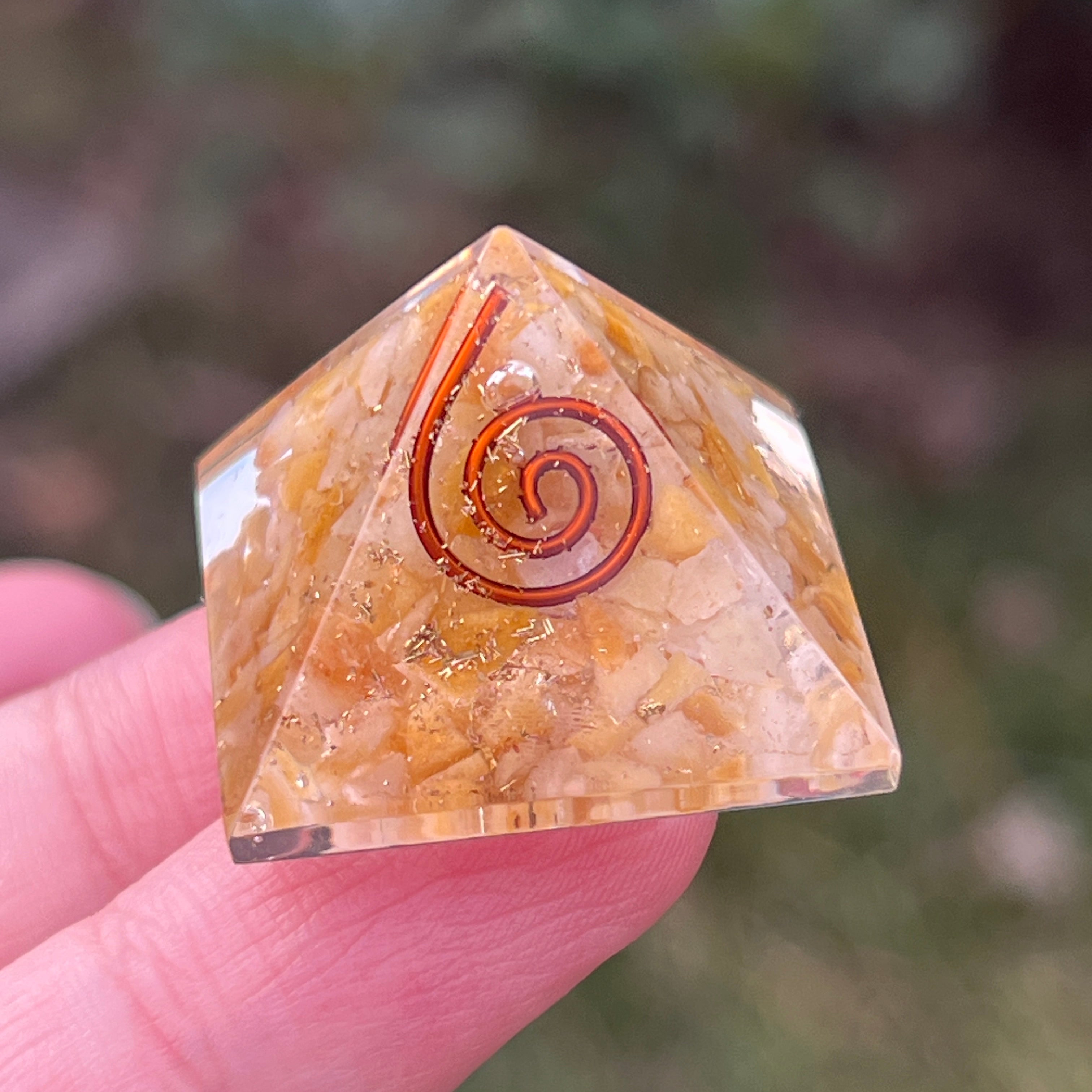 Pirámide de citrino en resina 3 cm, tamaño: 3 x 3 cm