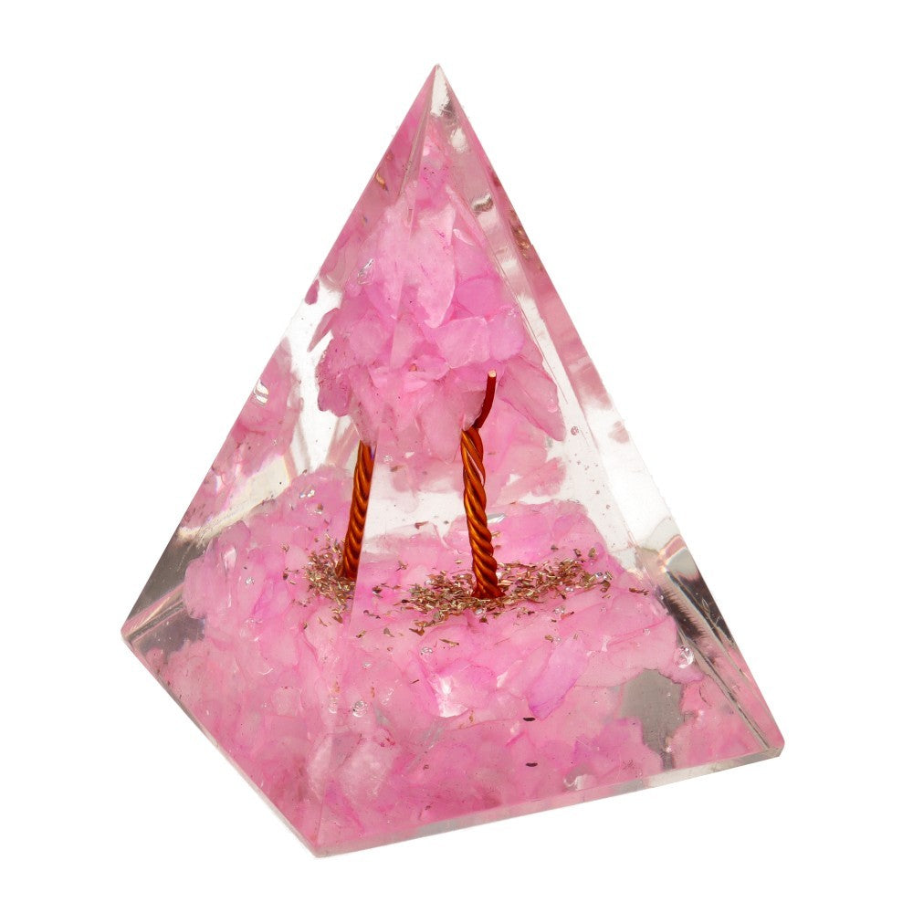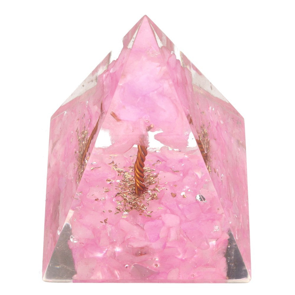 Pirámide de cuarzo rosa en resina 4 cm