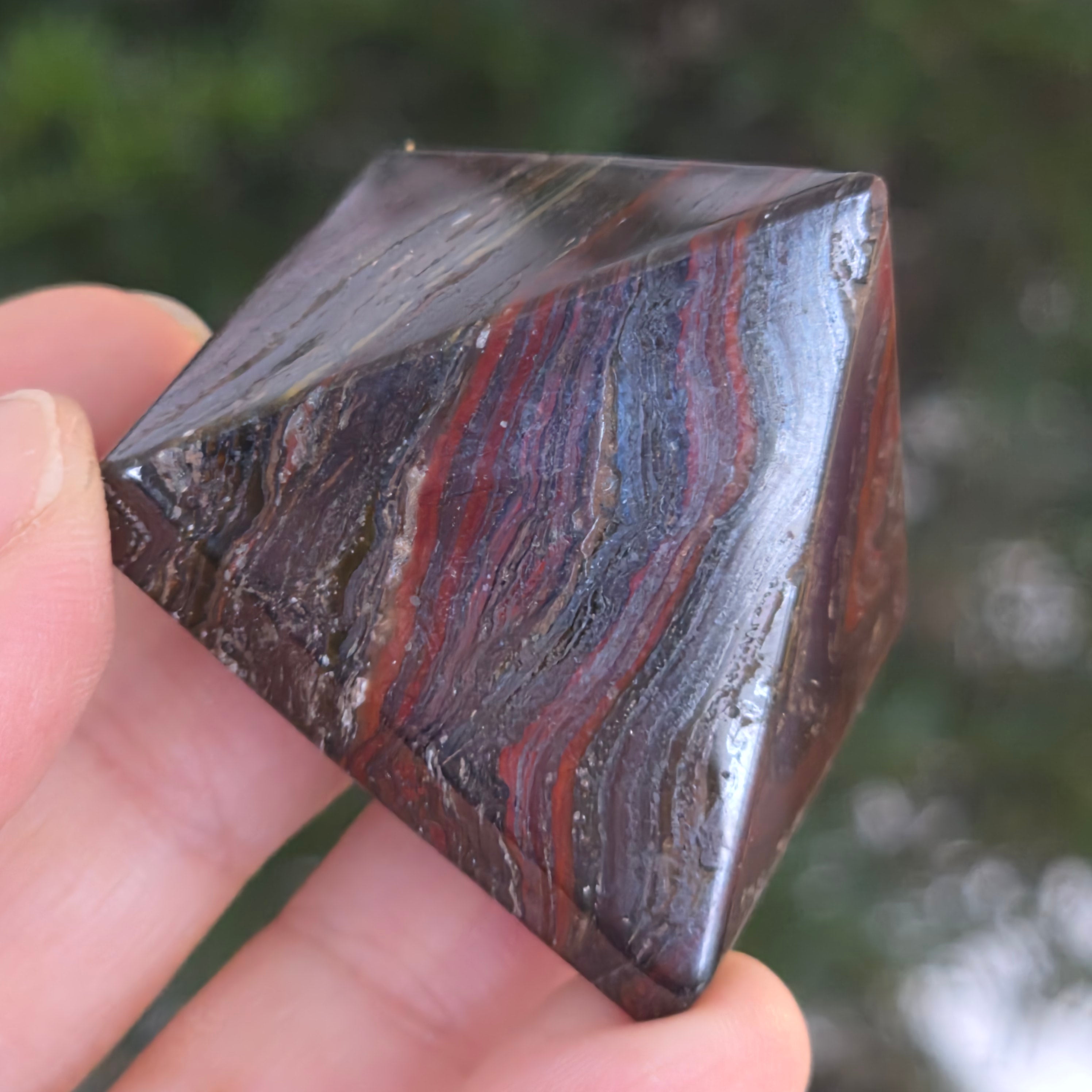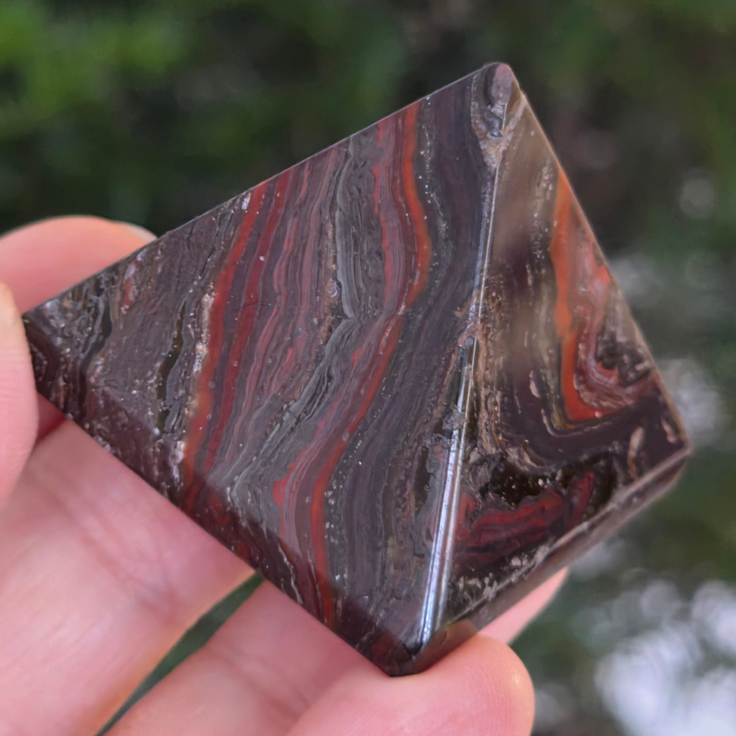 ¡Pirámide de jaspe rojo rayada con hematita