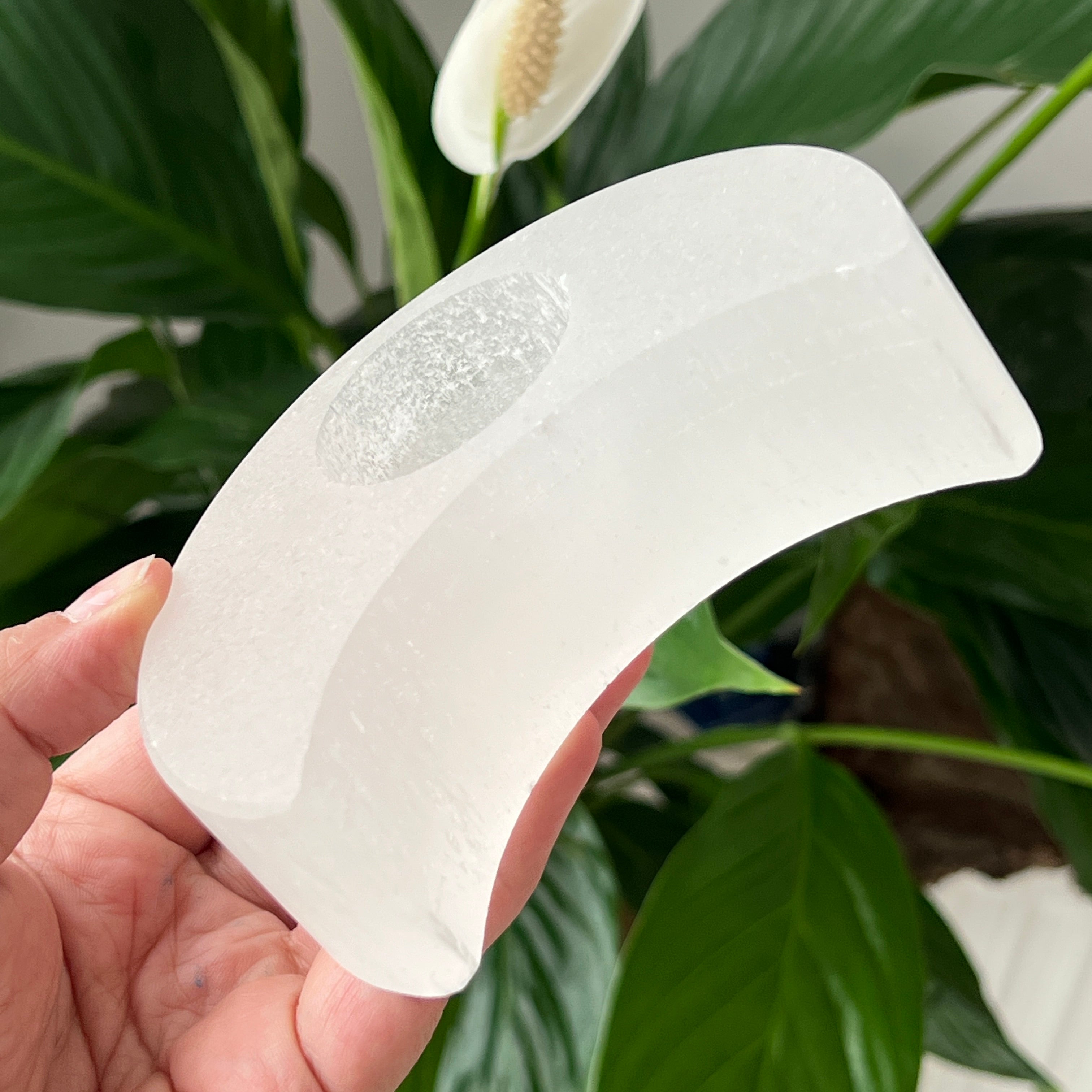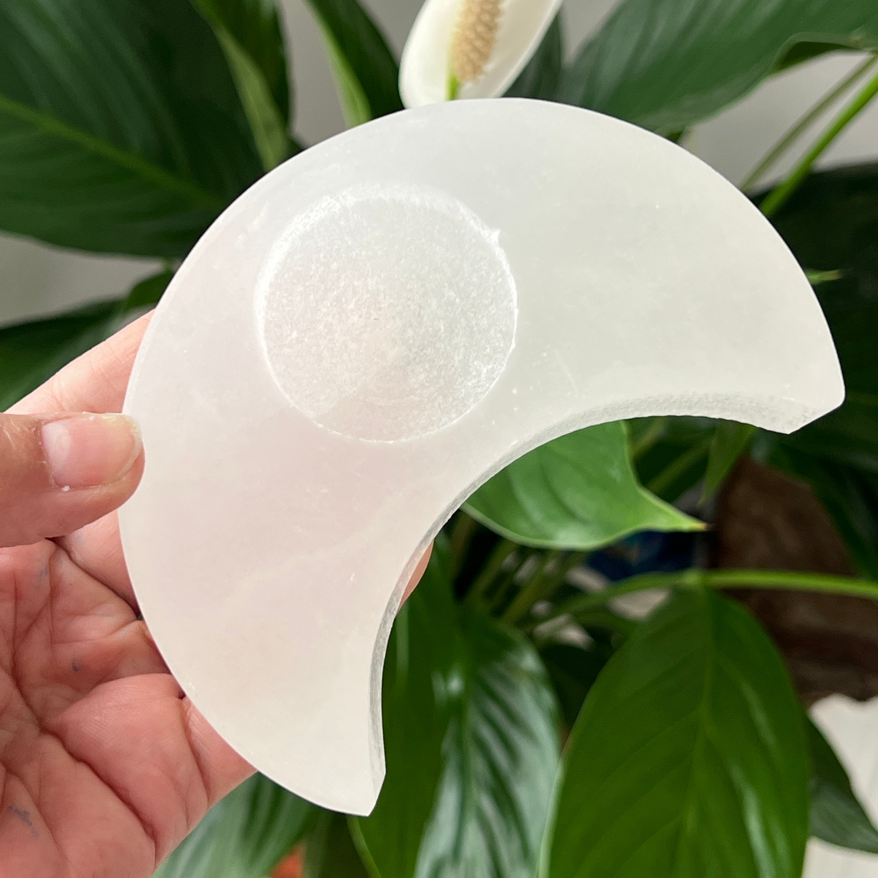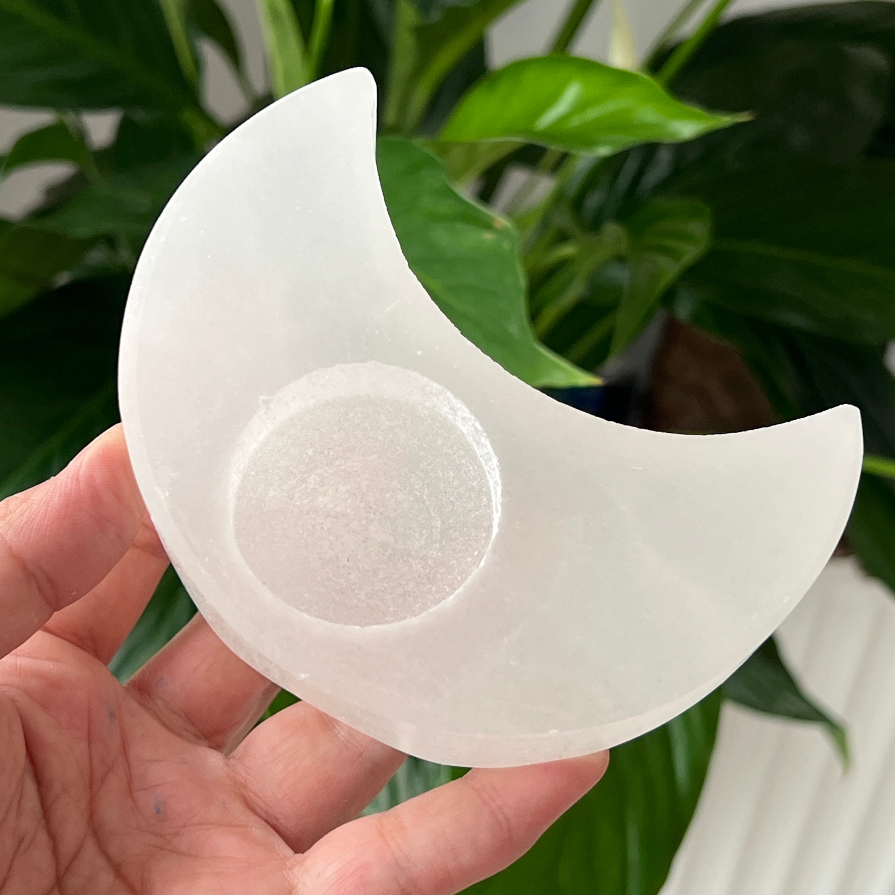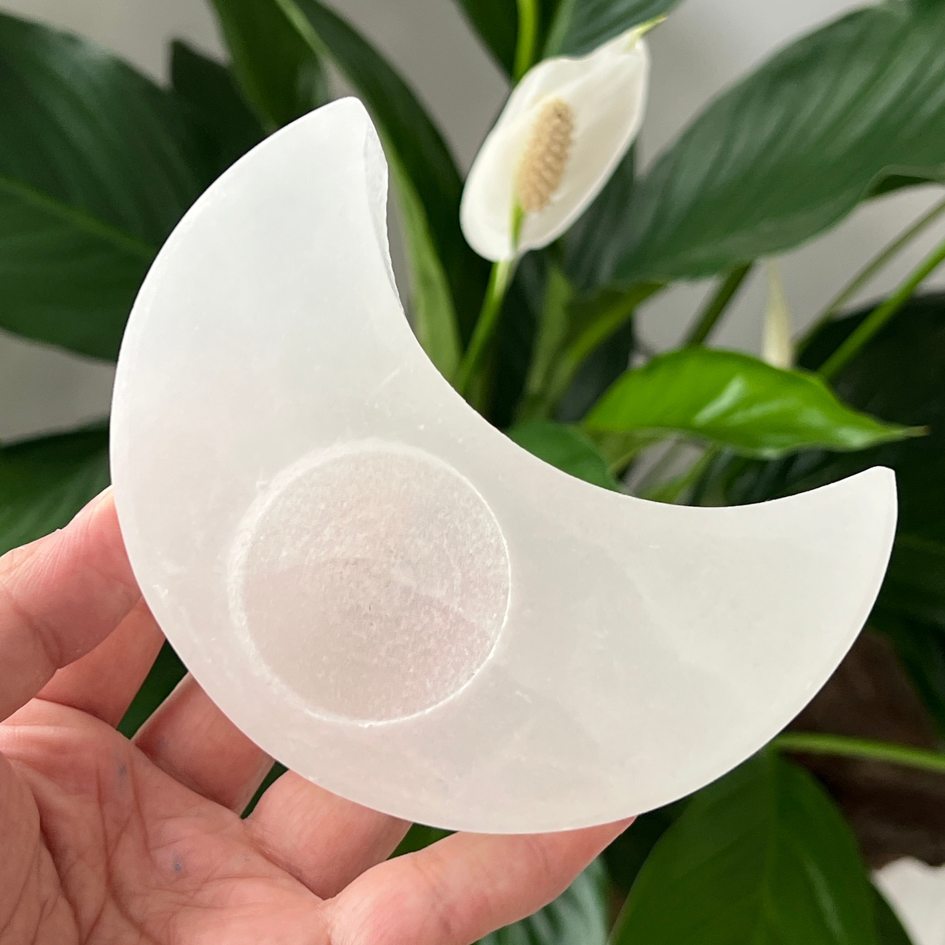 Elige el soporte de vela de selenita con forma de luna para traer a tu espacio energía purificadora y una atmósfera llena de armonía. 🌙✨.