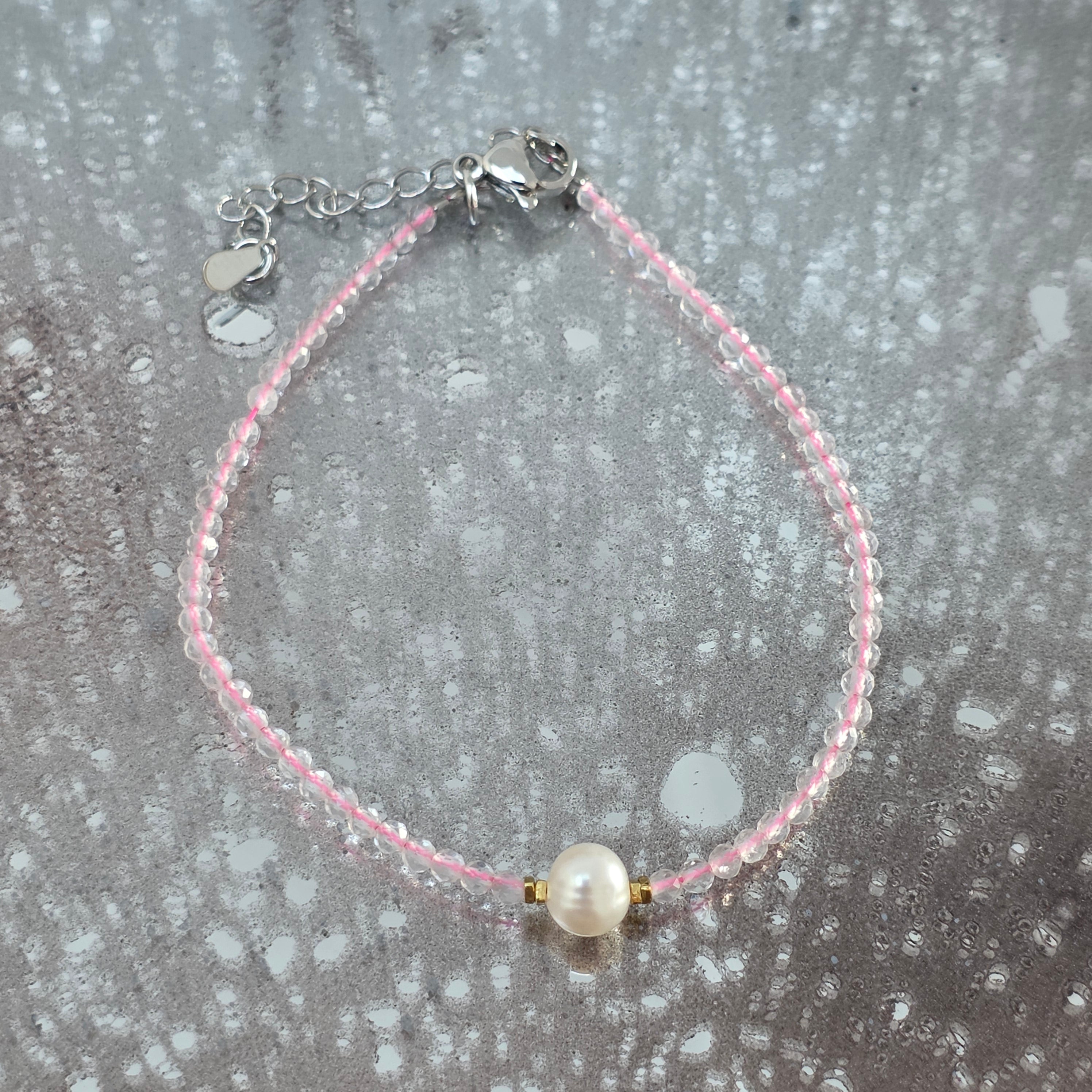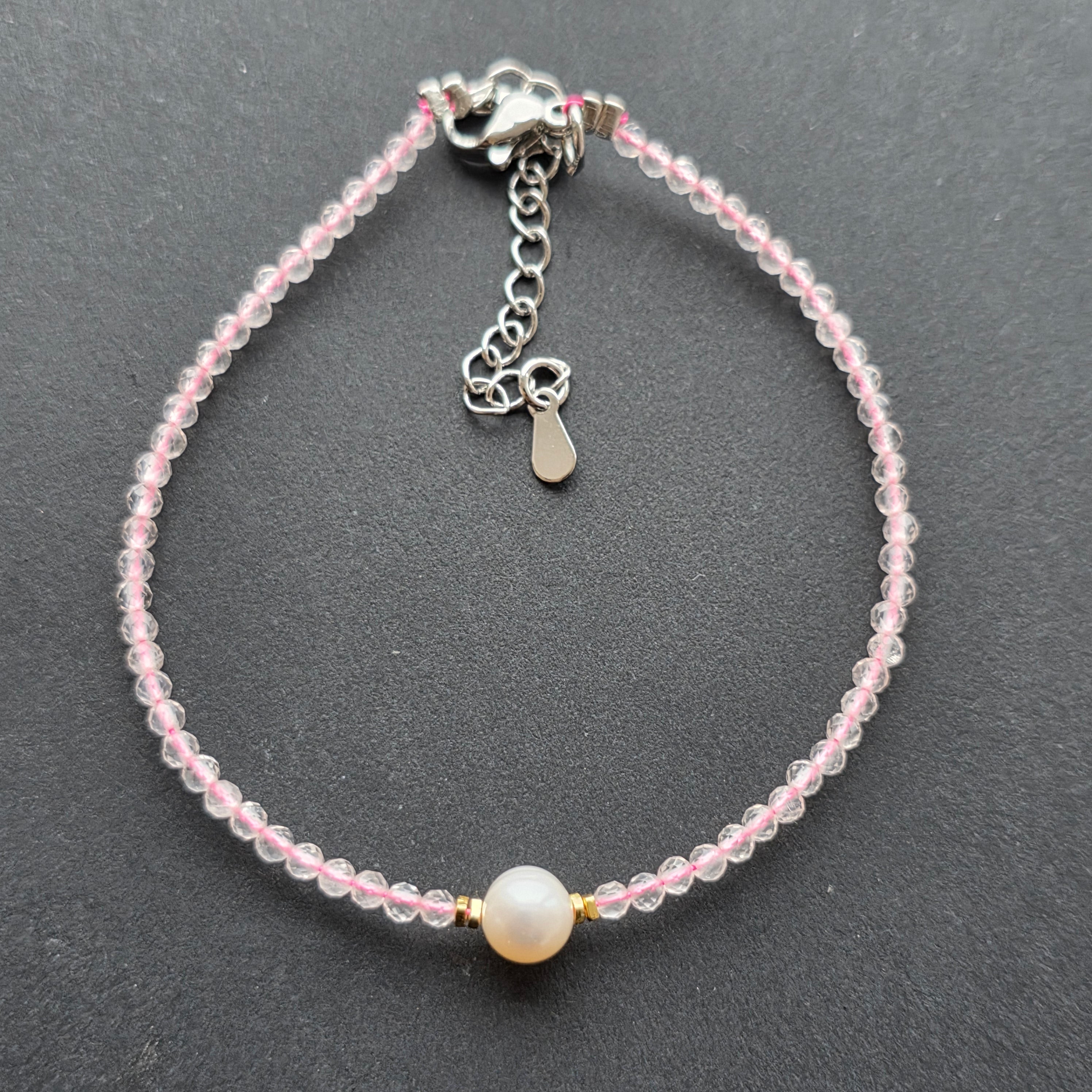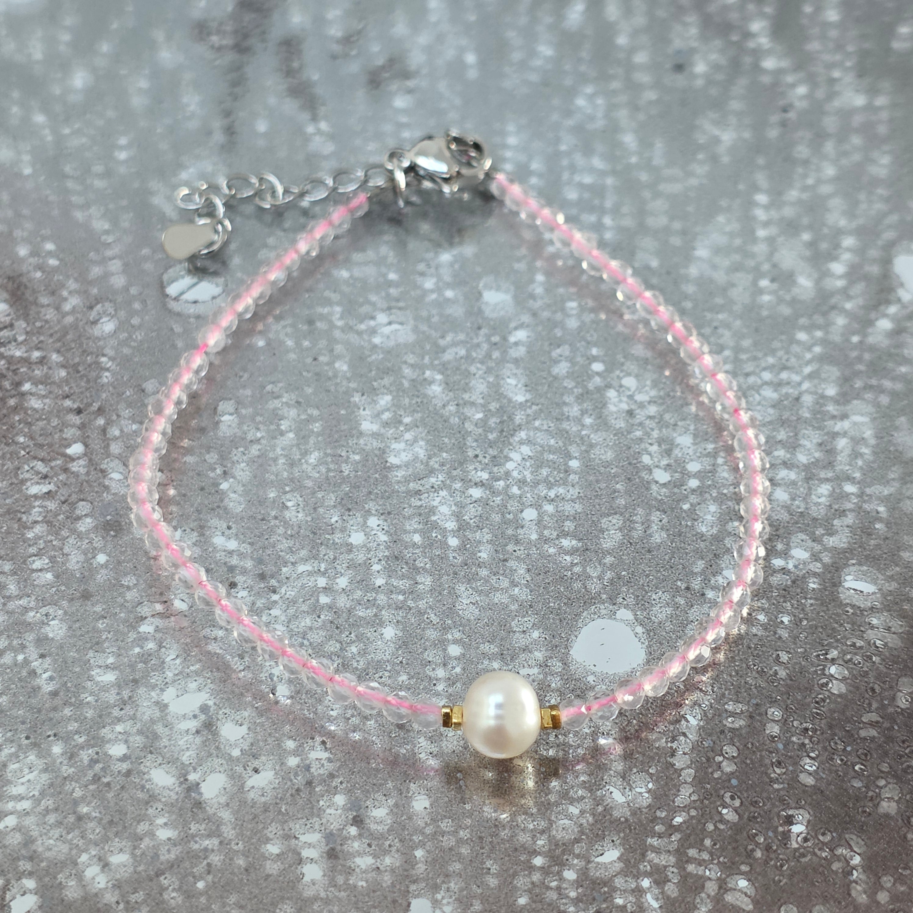 Descriere - Pulsera ajustable facetada de cuarzo rosa 2 mm | Pearl
