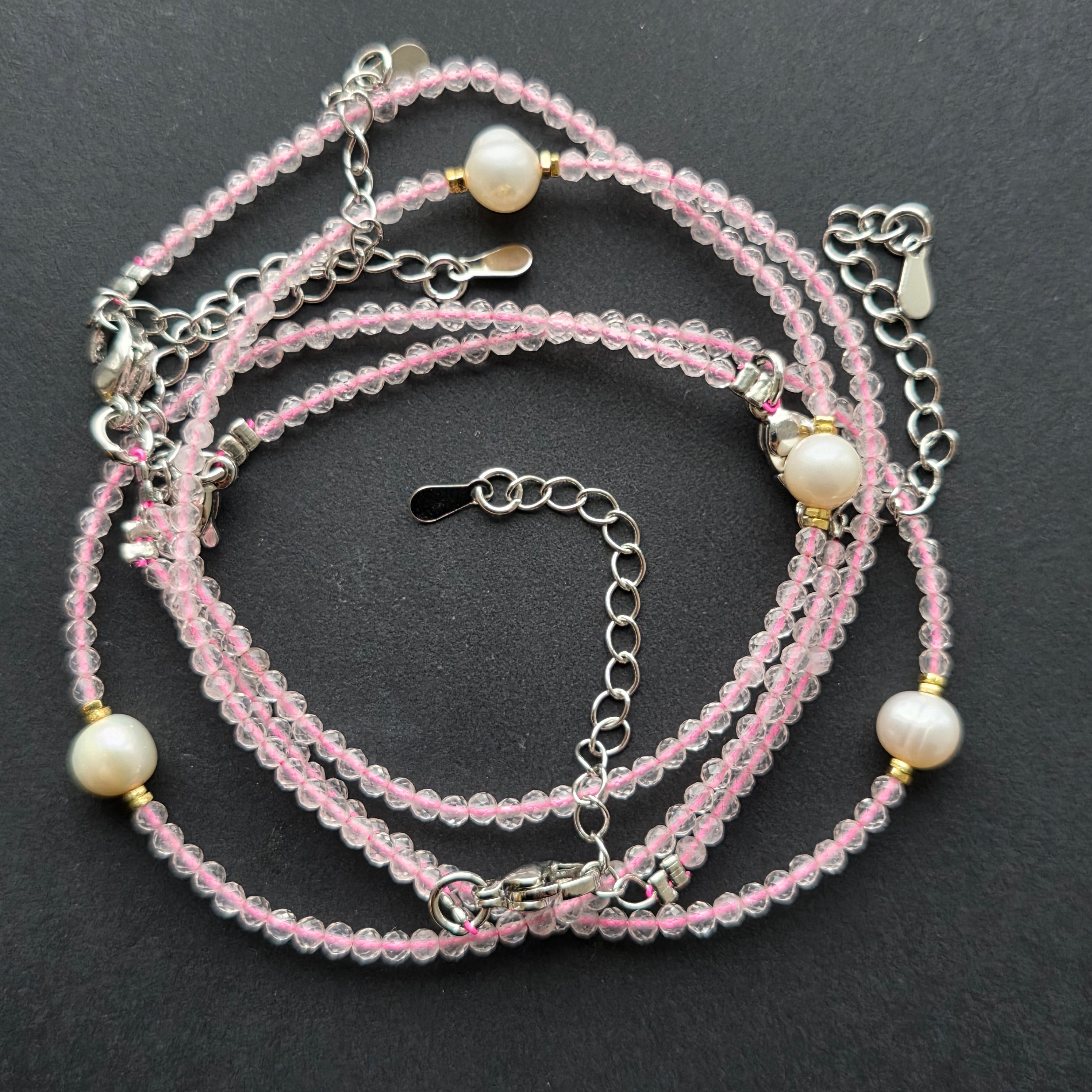 • Piedras: cuarzo rosa natural facetado 2 mm + perla natural