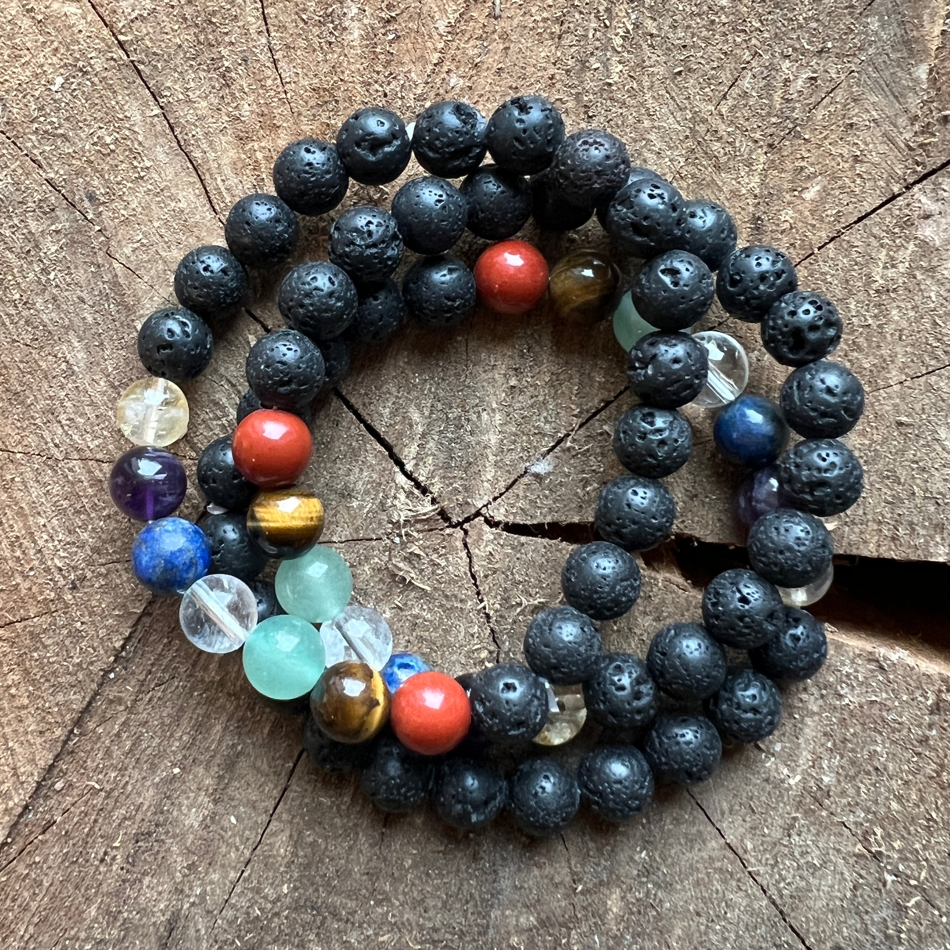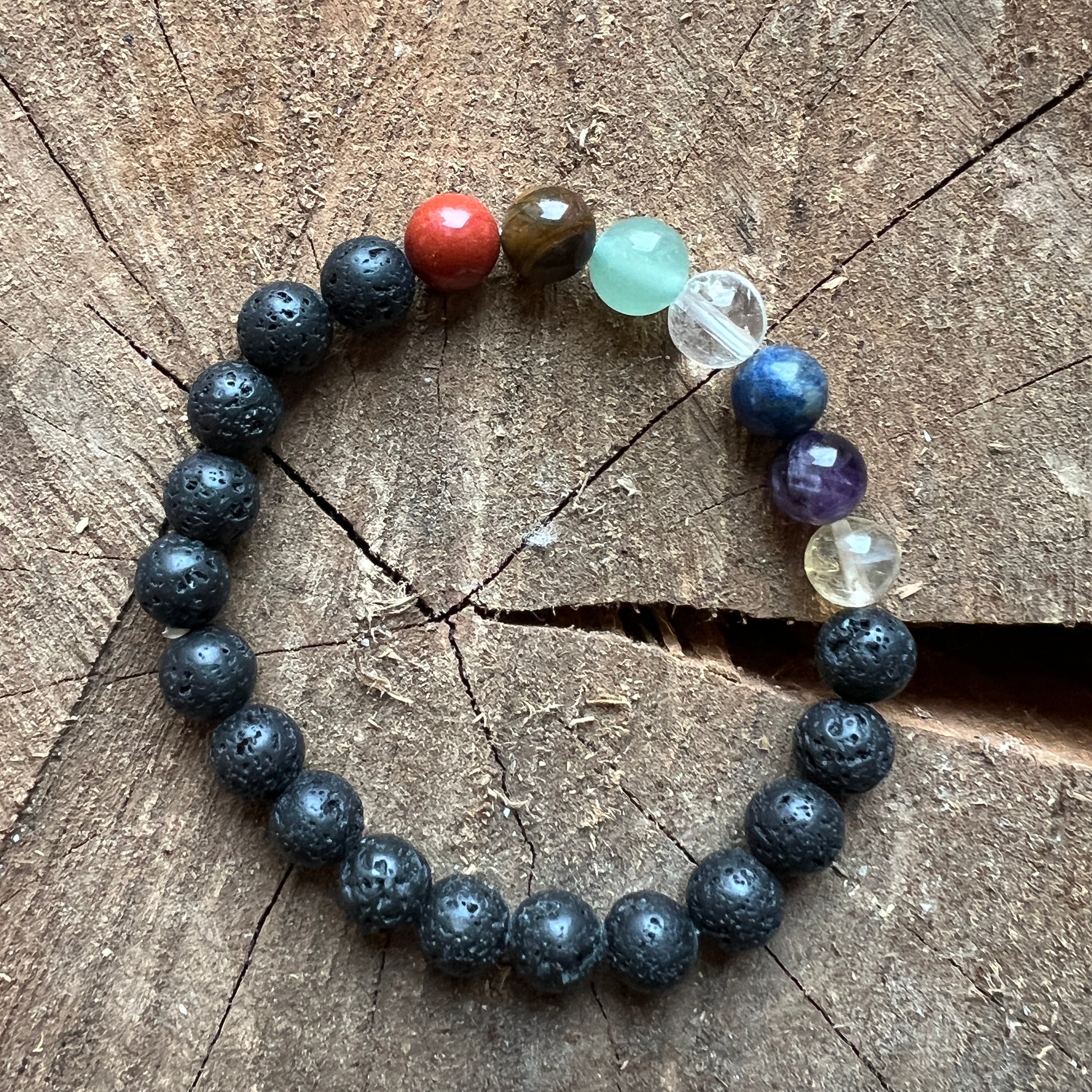 Pulsera basalto 7 chakras esferas 8 mm