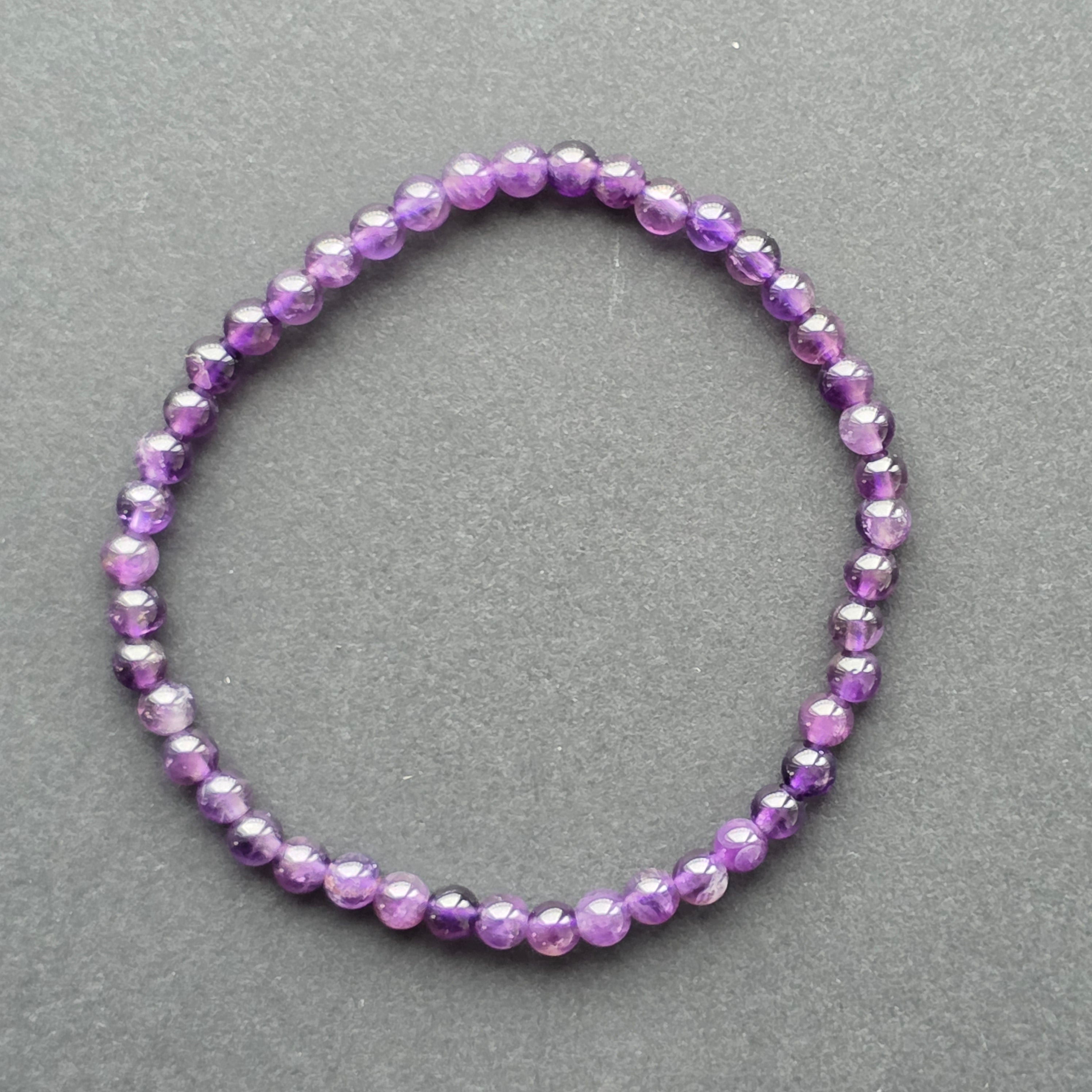 La pulsera de amatista aporta a la muñeca la sofisticación clásica de una de las piedras semipreciosas más queridas. Las cuentas pequeñas y perfectamente redondeadas crean una delicada hilera de tonos violeta, en un degradado natural que recuerda al cielo del atardecer o a la intensidad de una flor de lavanda iluminada.