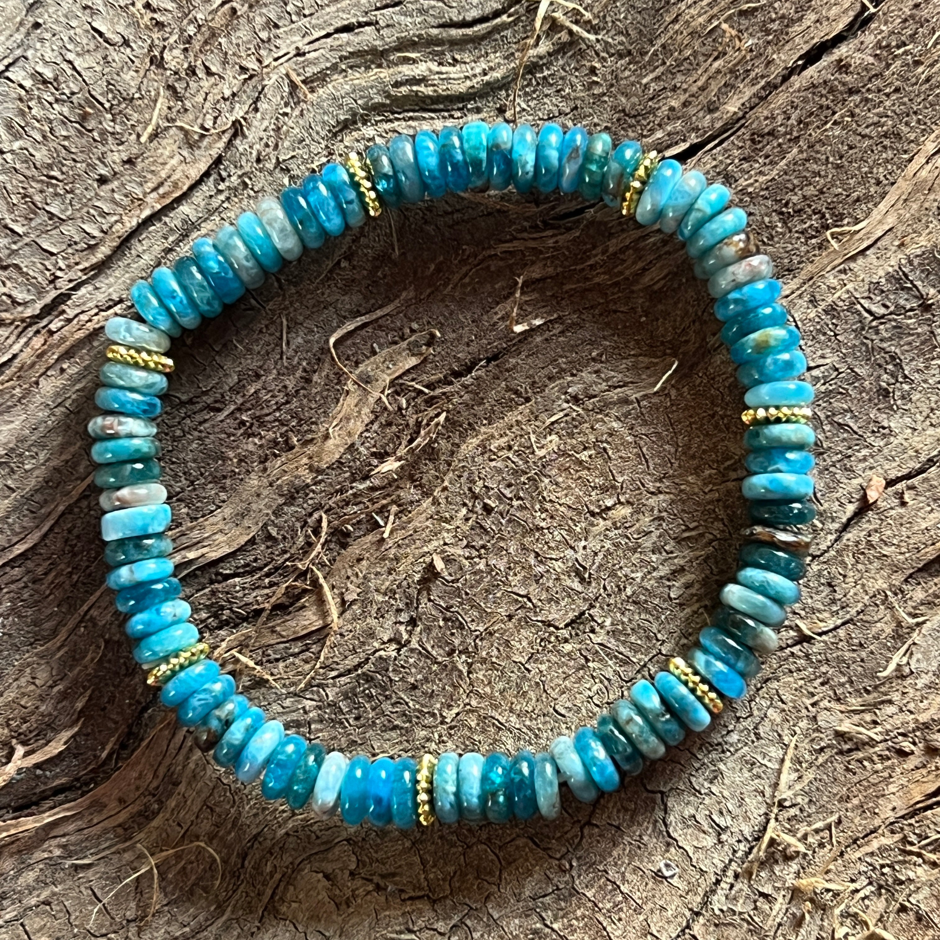 Pulsera disco de apatita con inserciones doradas – 6x2 mm