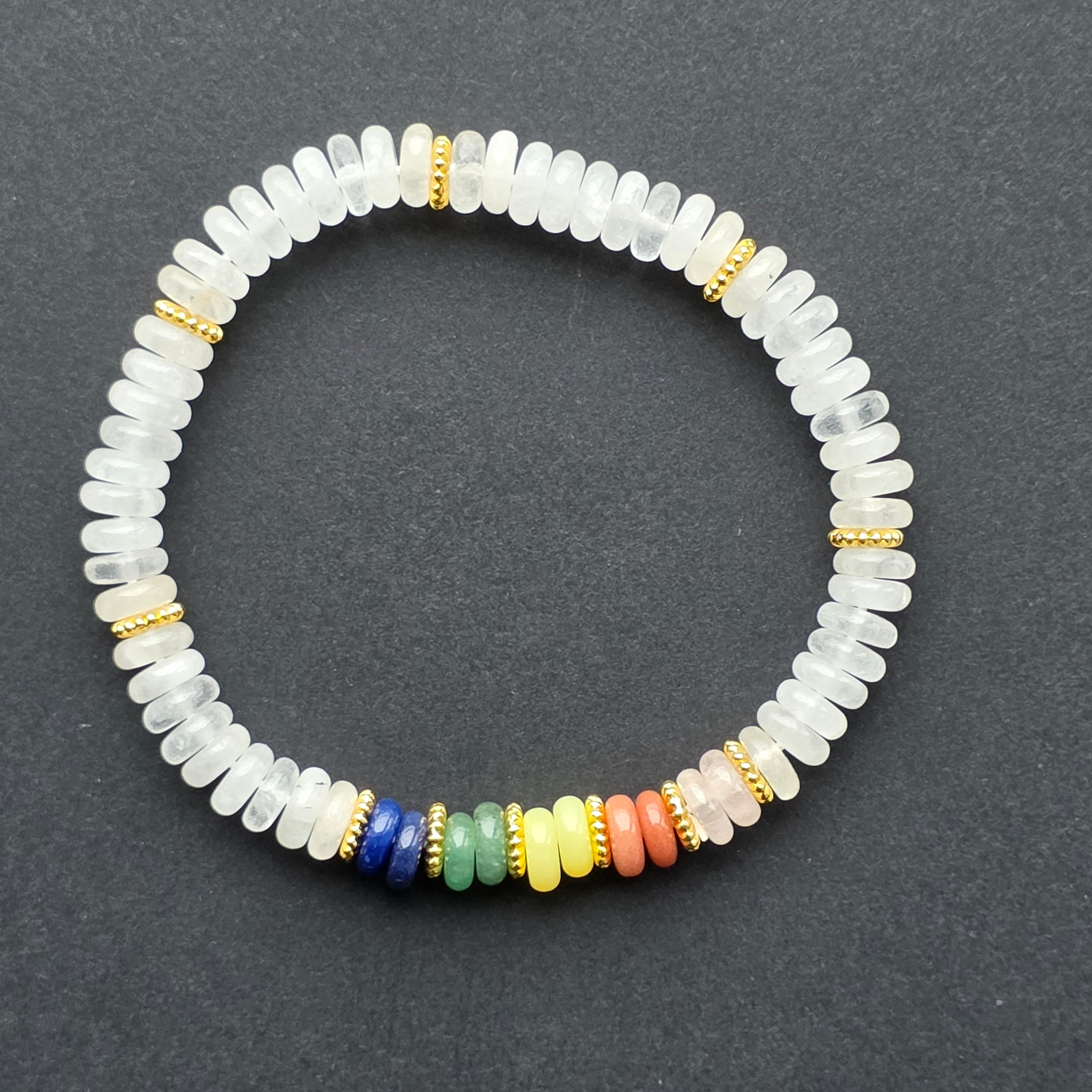 Pulsera de discos de cuarzo incoloro | 7 chakras