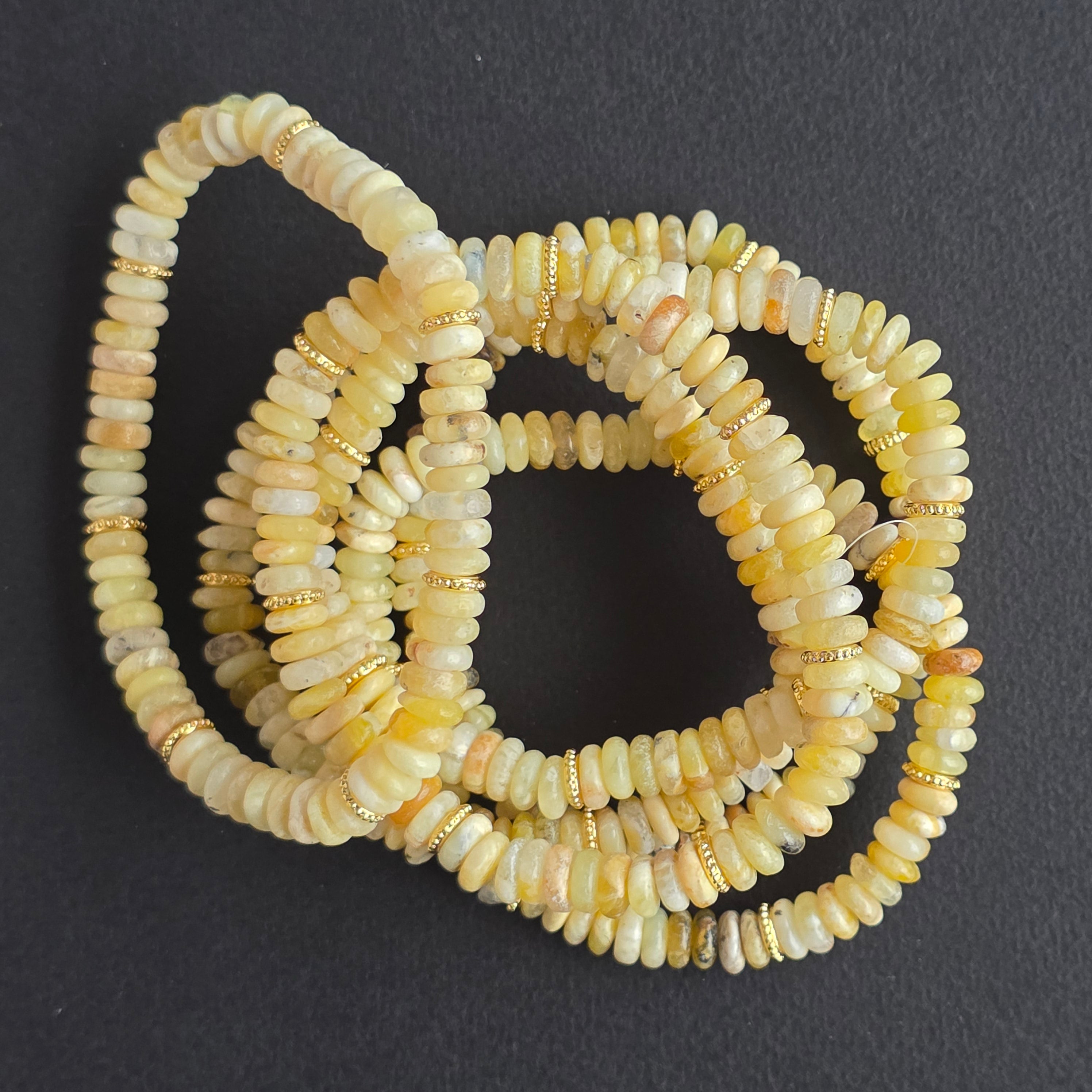 Descriere - Pulsera de discos de ópalo amarillo con inserciones doradas – 6x2 mm