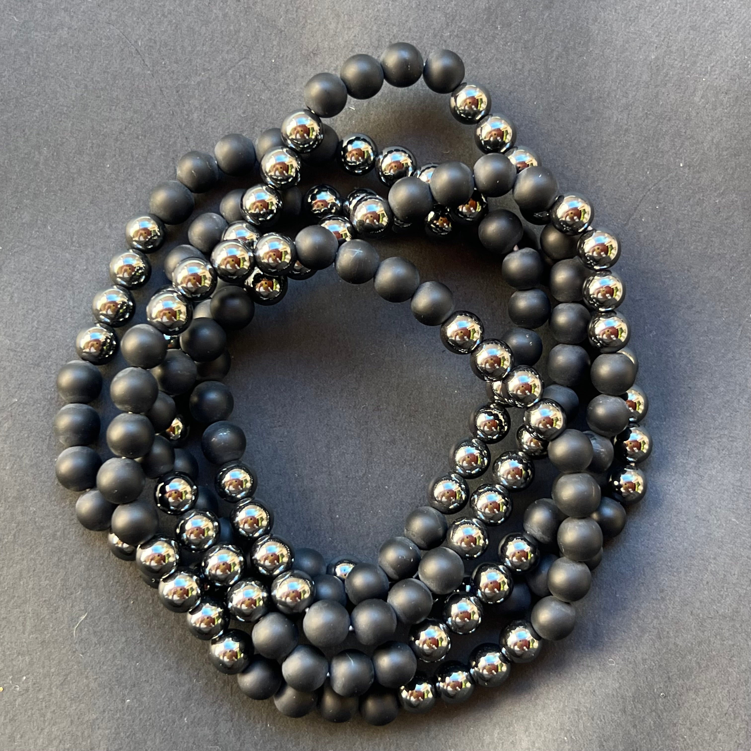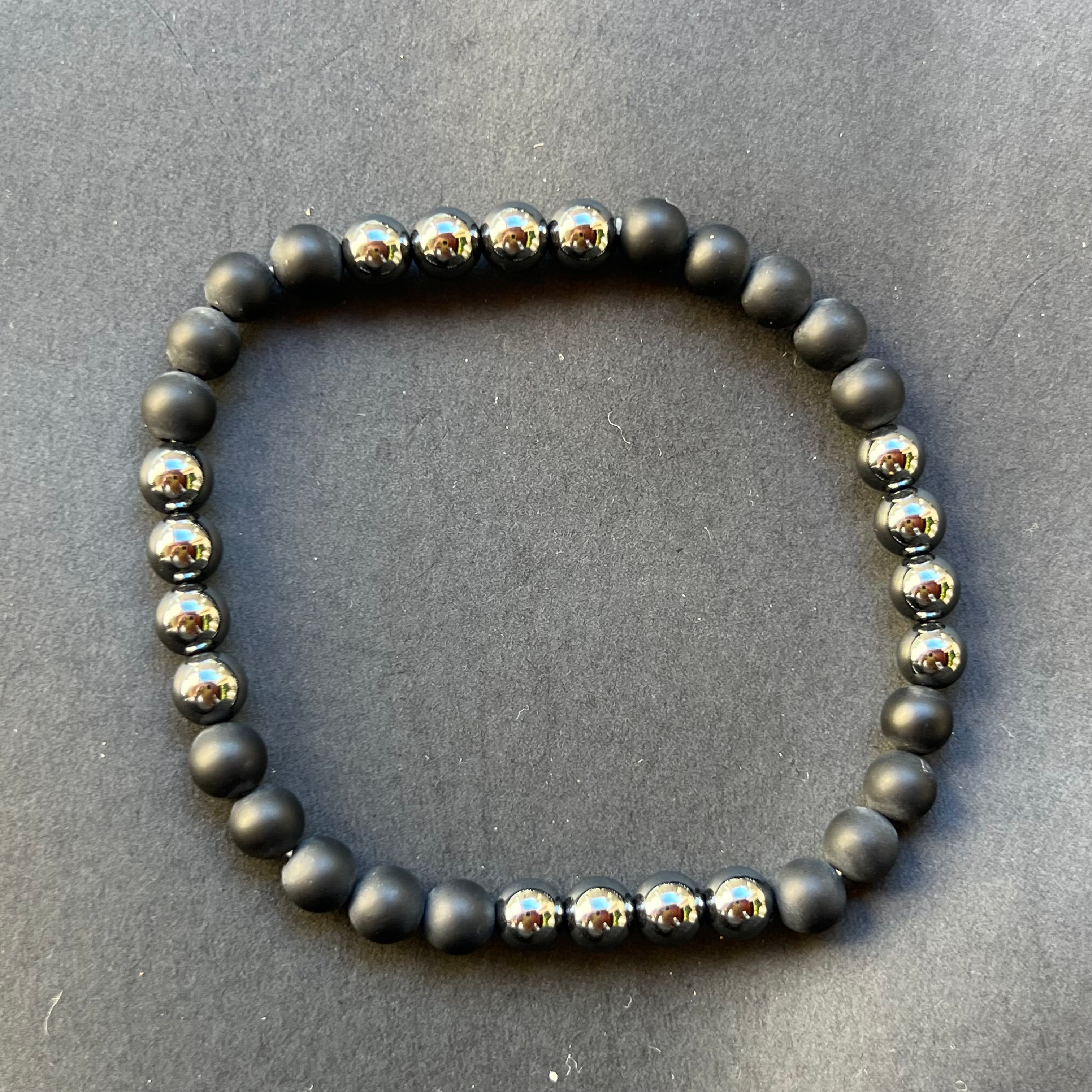 Descriere - Pulsera de hombre ónix negro con hematita 6 mm
