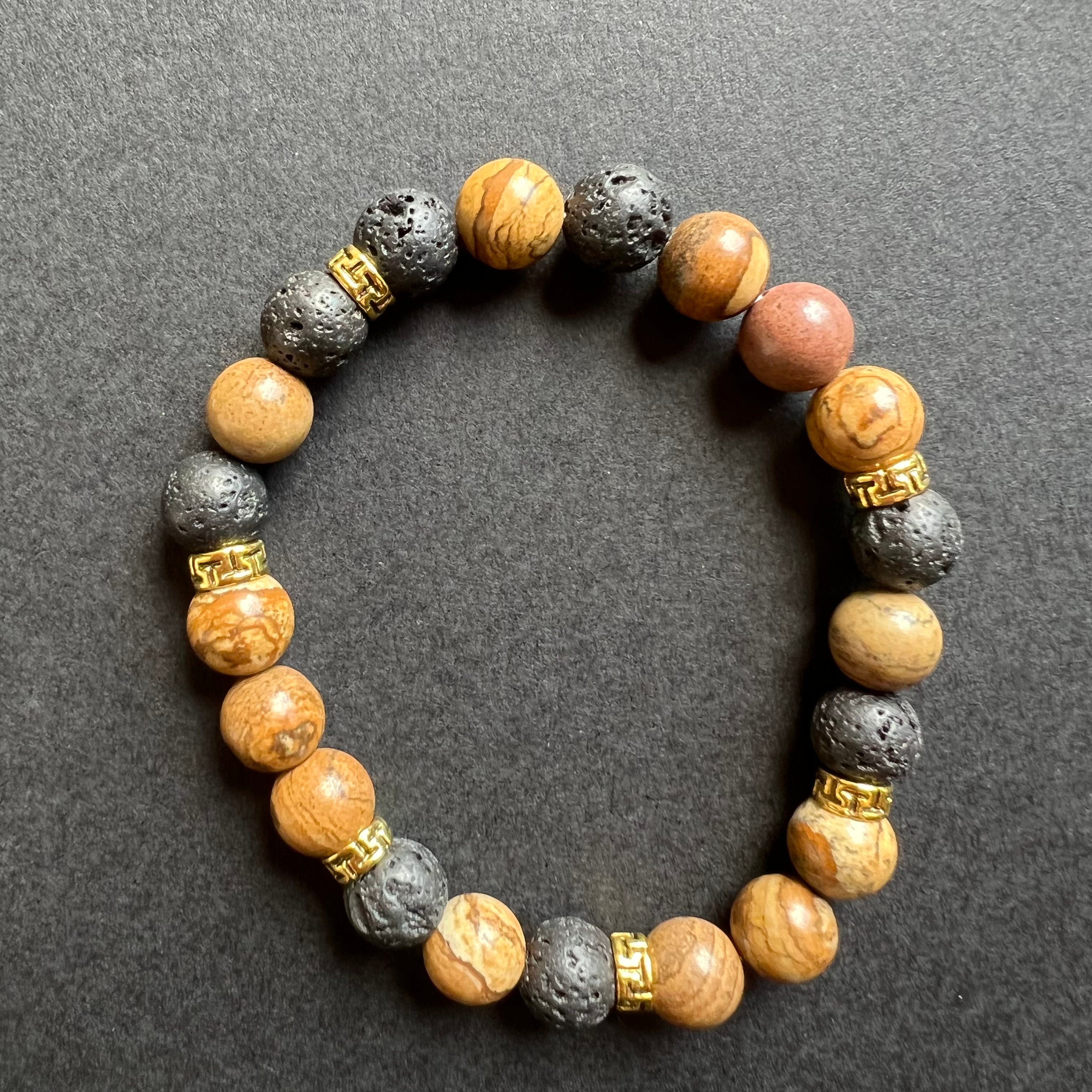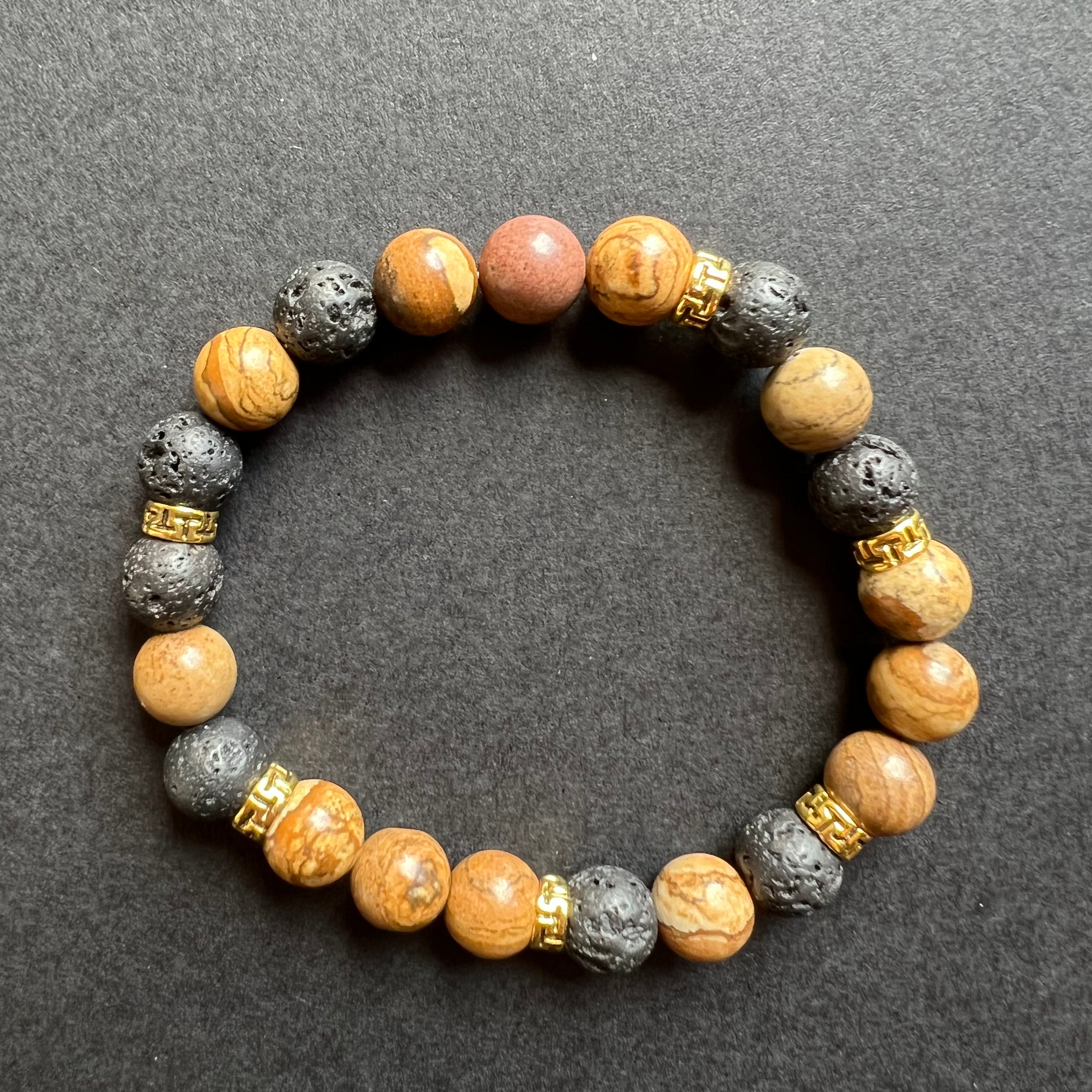Pulsera de jaspe con piedras de lava m2 8mm
