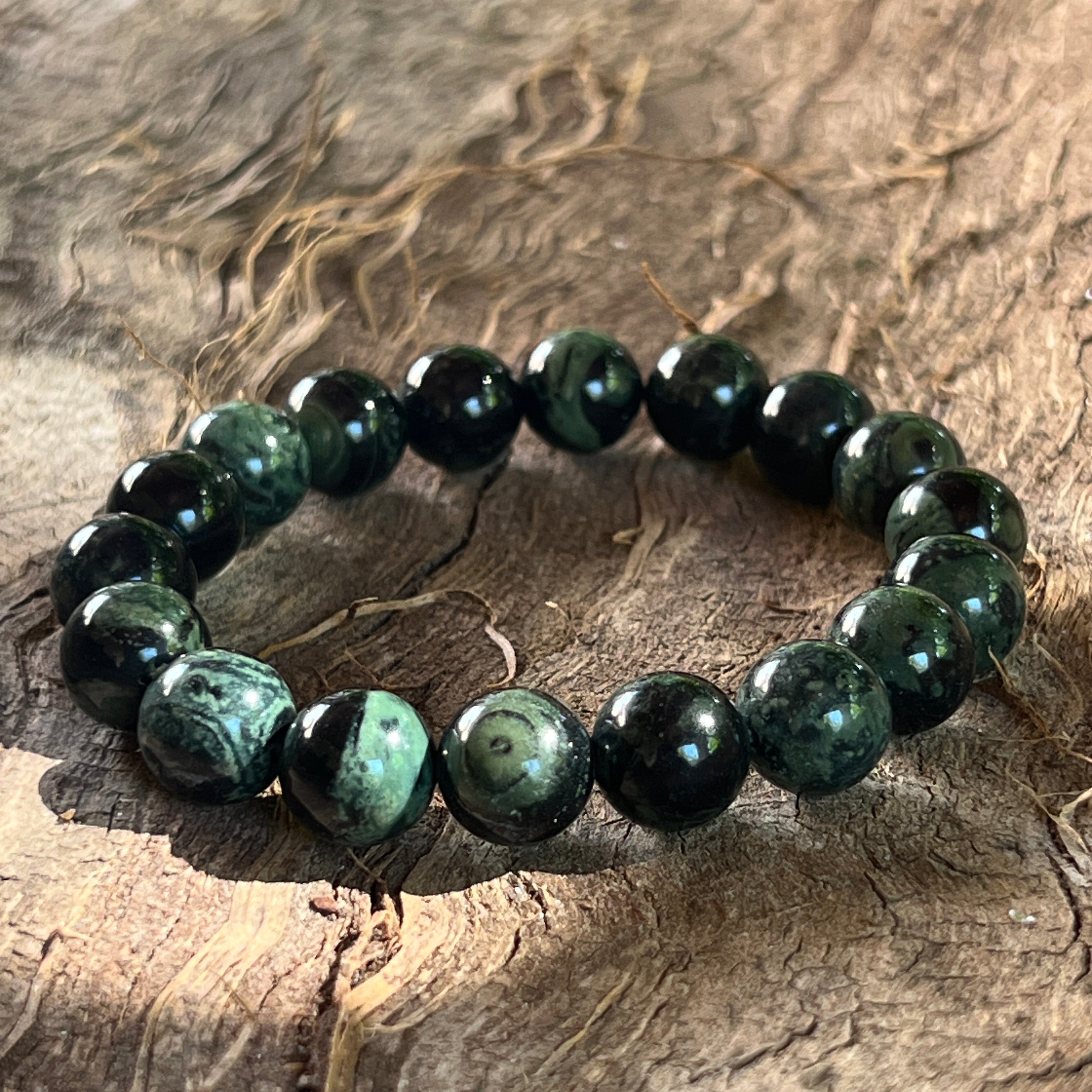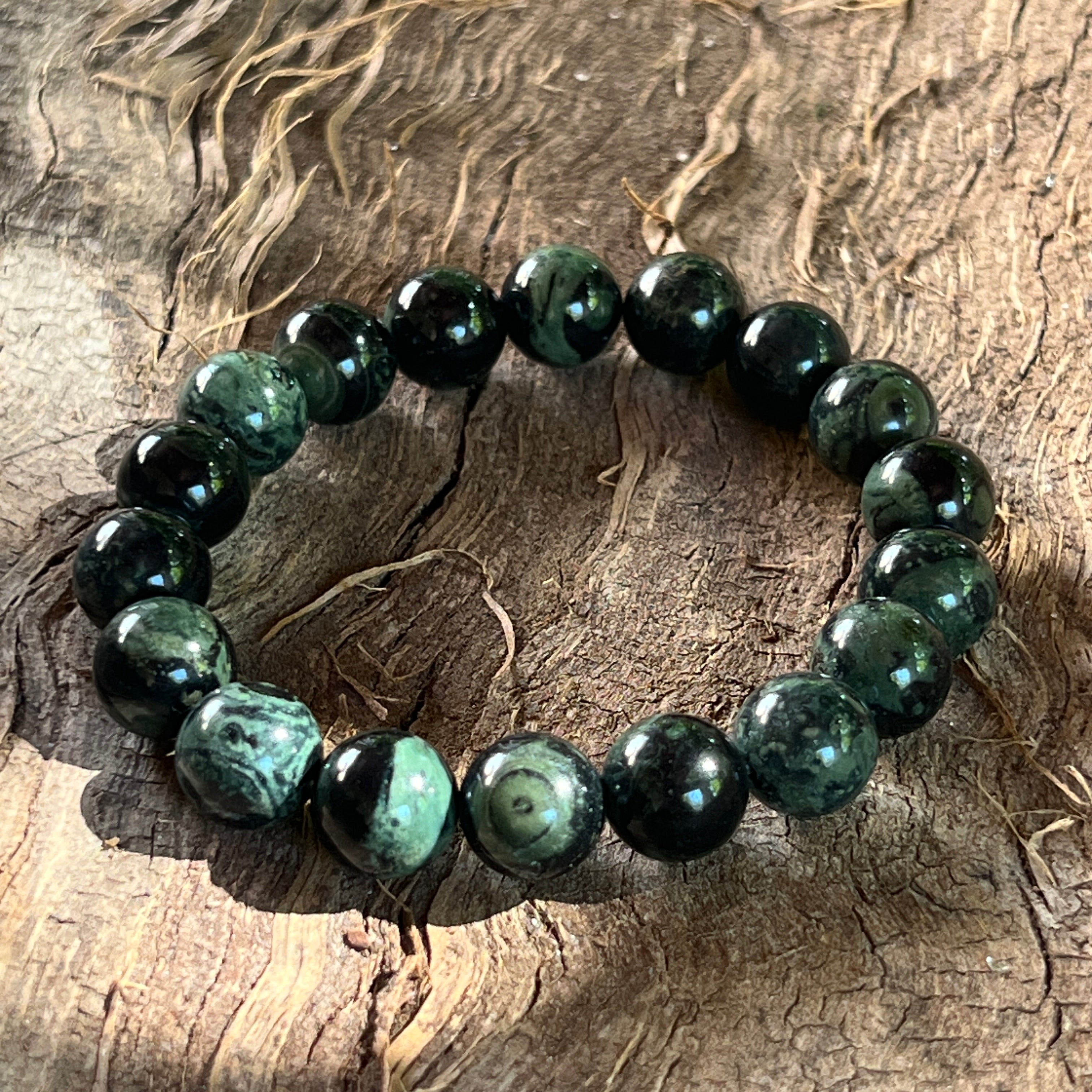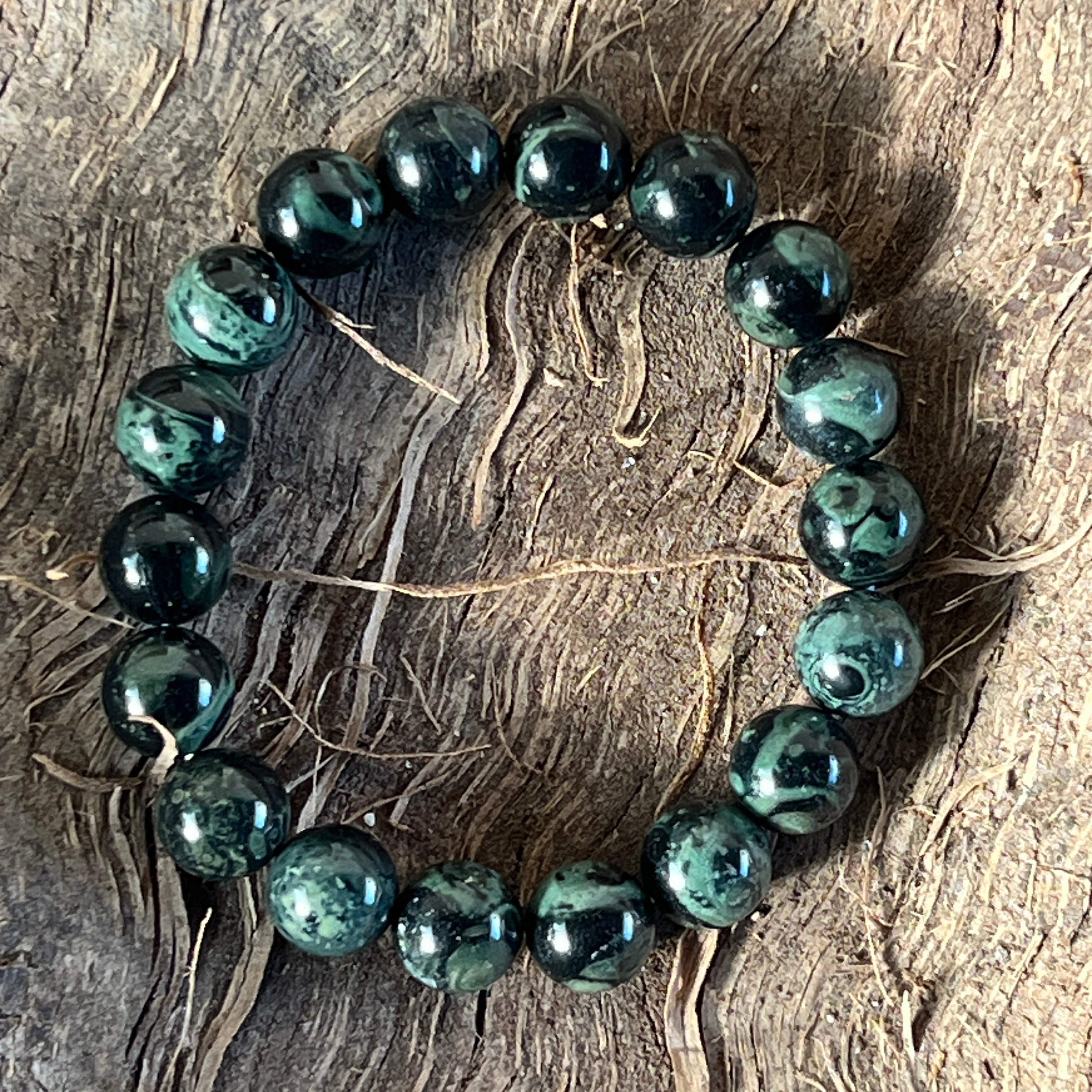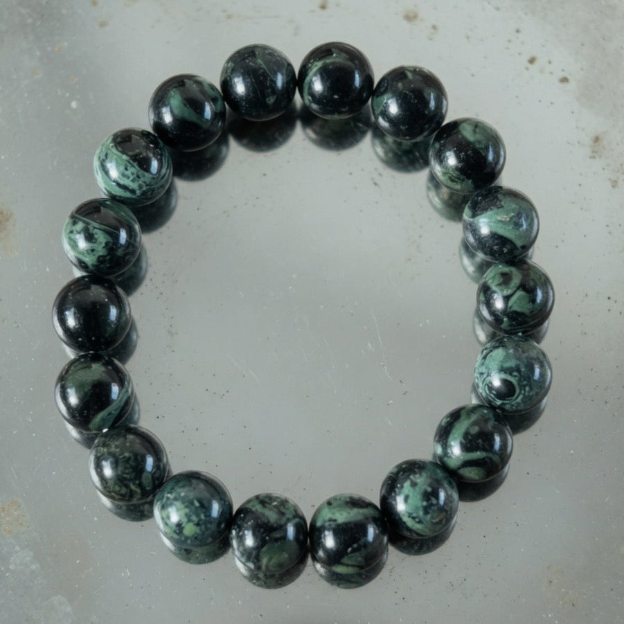 El jaspe Kambaba, conocido también como Jaspe Kambala, es una variedad de jaspe de origen volcánico. Está compuesto por una combinación de cristales verdes y negros, creando un patrón hermoso y distintivo. Este recibe su nombre de la región de Kambaba en Madagascar, donde se encuentra con frecuencia.