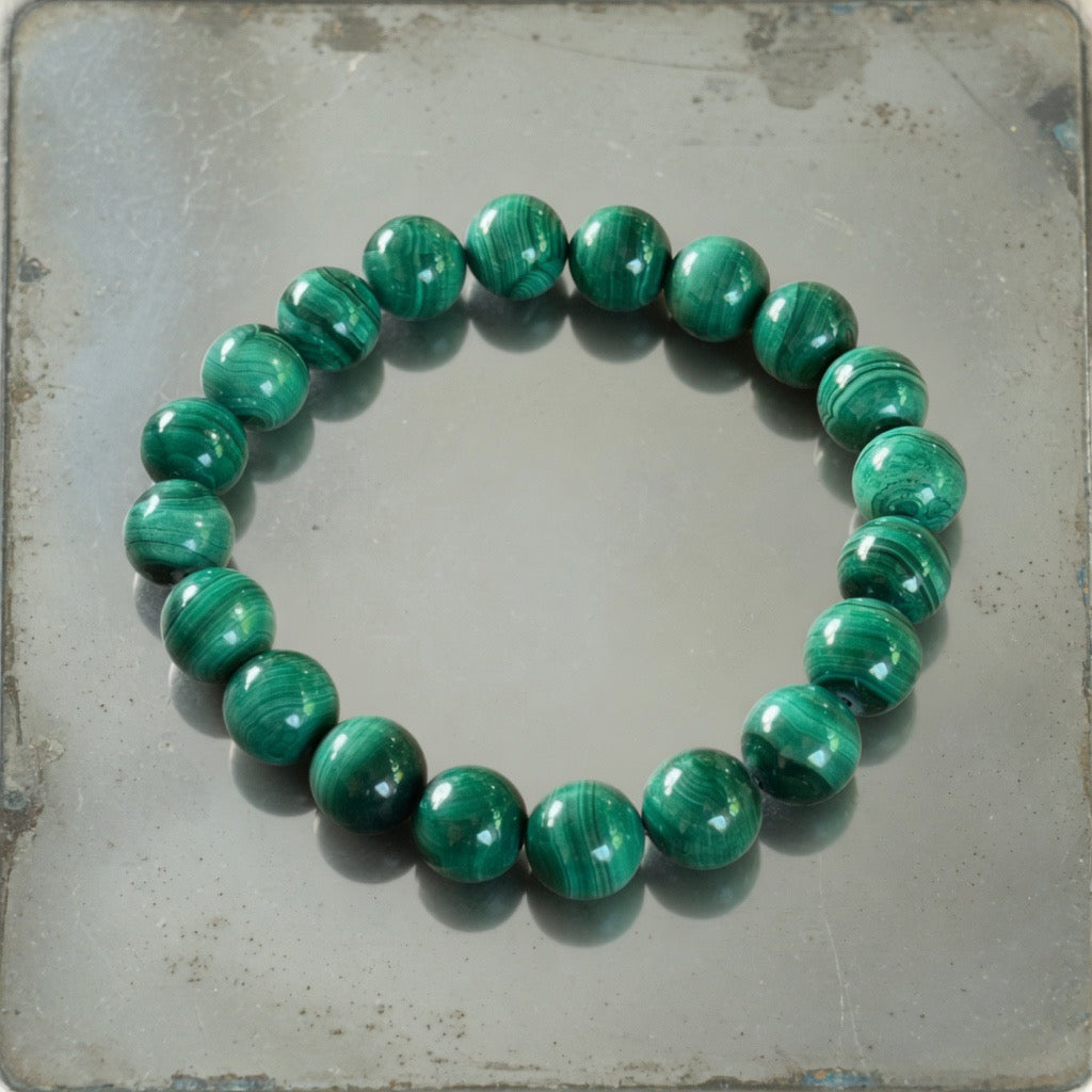 La malaquita es una piedra semipreciosa asociada especialmente con el chakra del corazón, permitiendo que las energías circulen libremente a través de este chakra. La malaquita puede ayudar a sanar traumas emocionales y a lograr el equilibrio emocional.