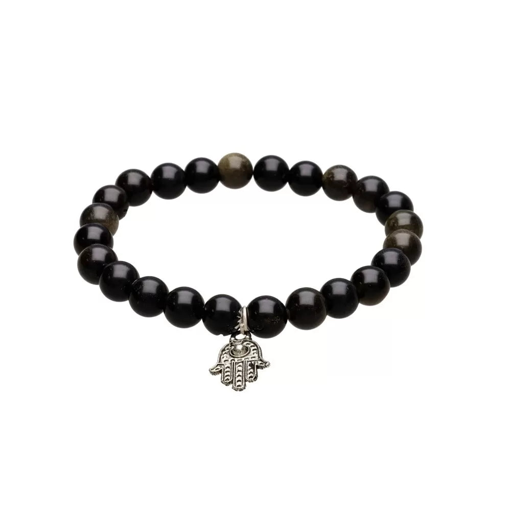 Usada diariamente, esta pulsera de obsidiana dorada con la Mano de Fátima se convierte en un escudo sutil contra las energías negativas, aportando claridad, estabilidad y confianza. La obsidiana dorada apoya el poder personal y la protección energética, y el símbolo antiguo de la Mano de Fátima amplifica la sensación de seguridad y paz interior. 🖤✨