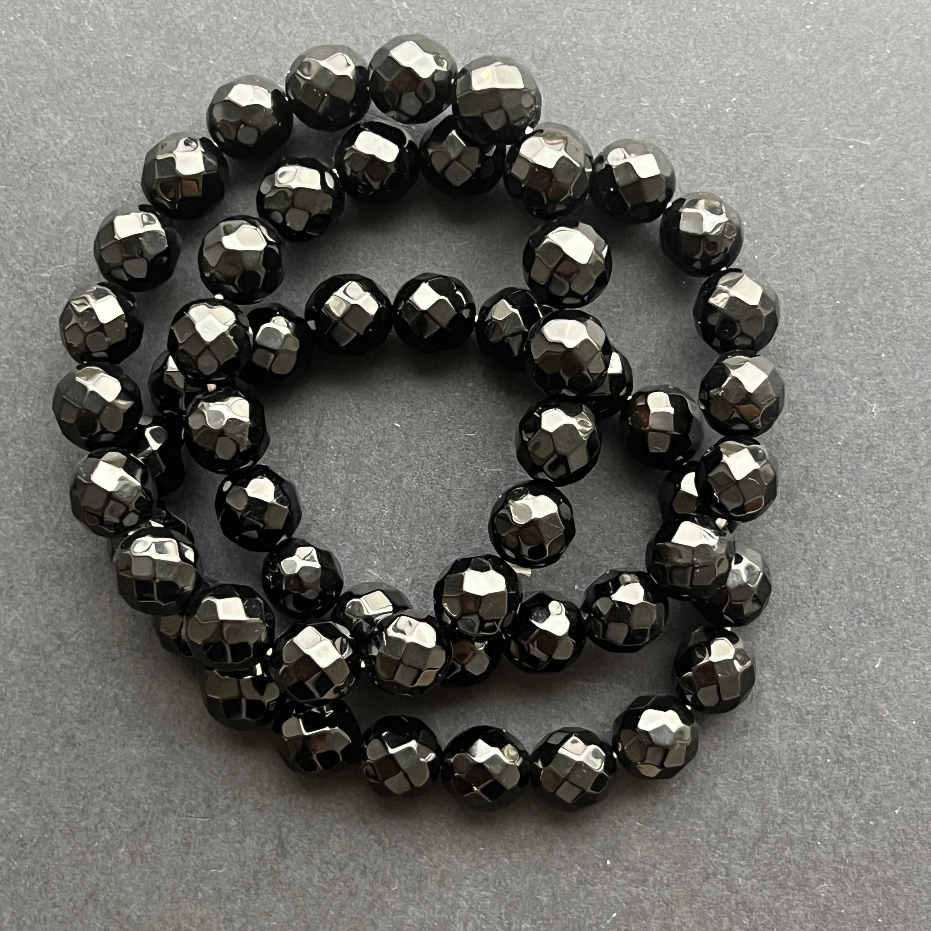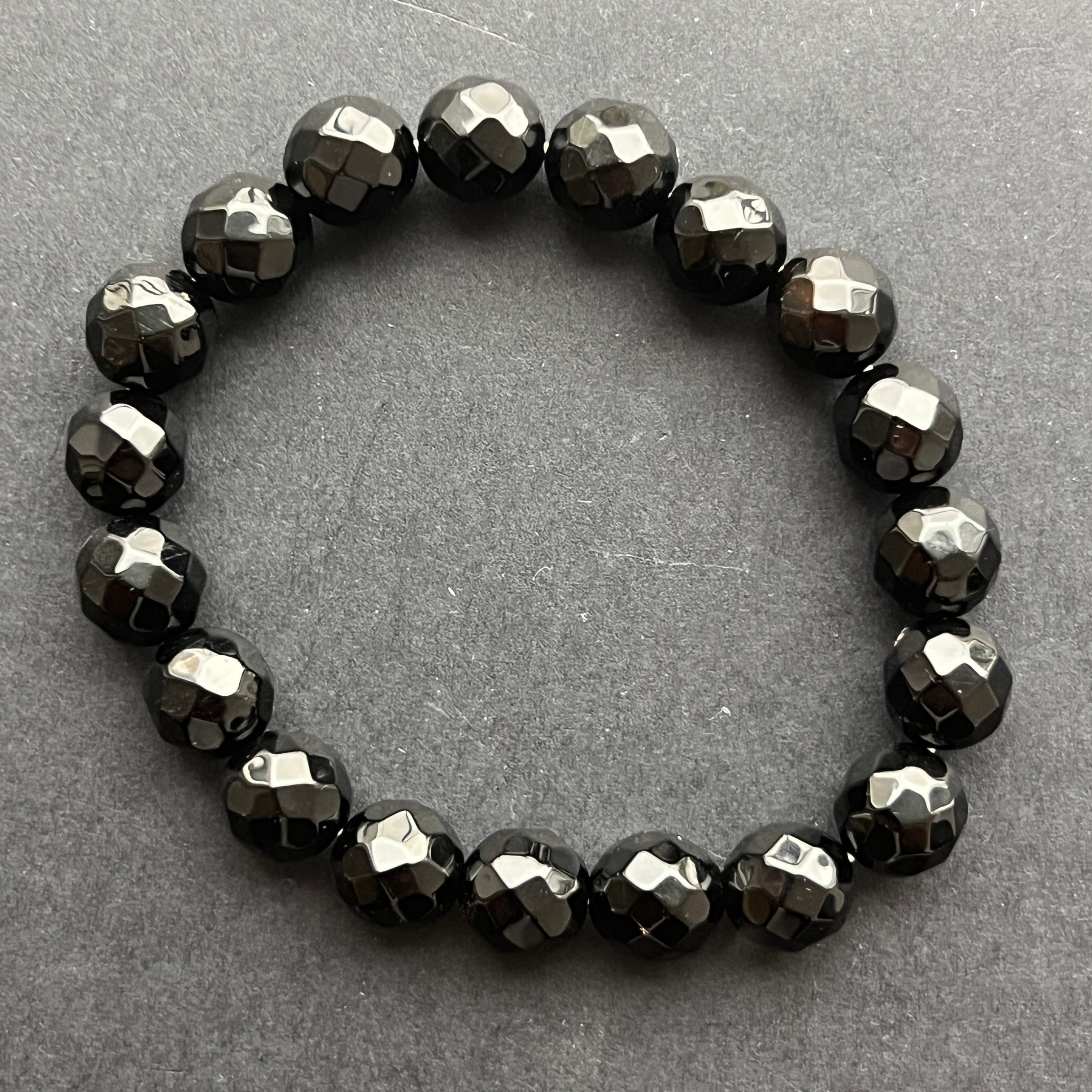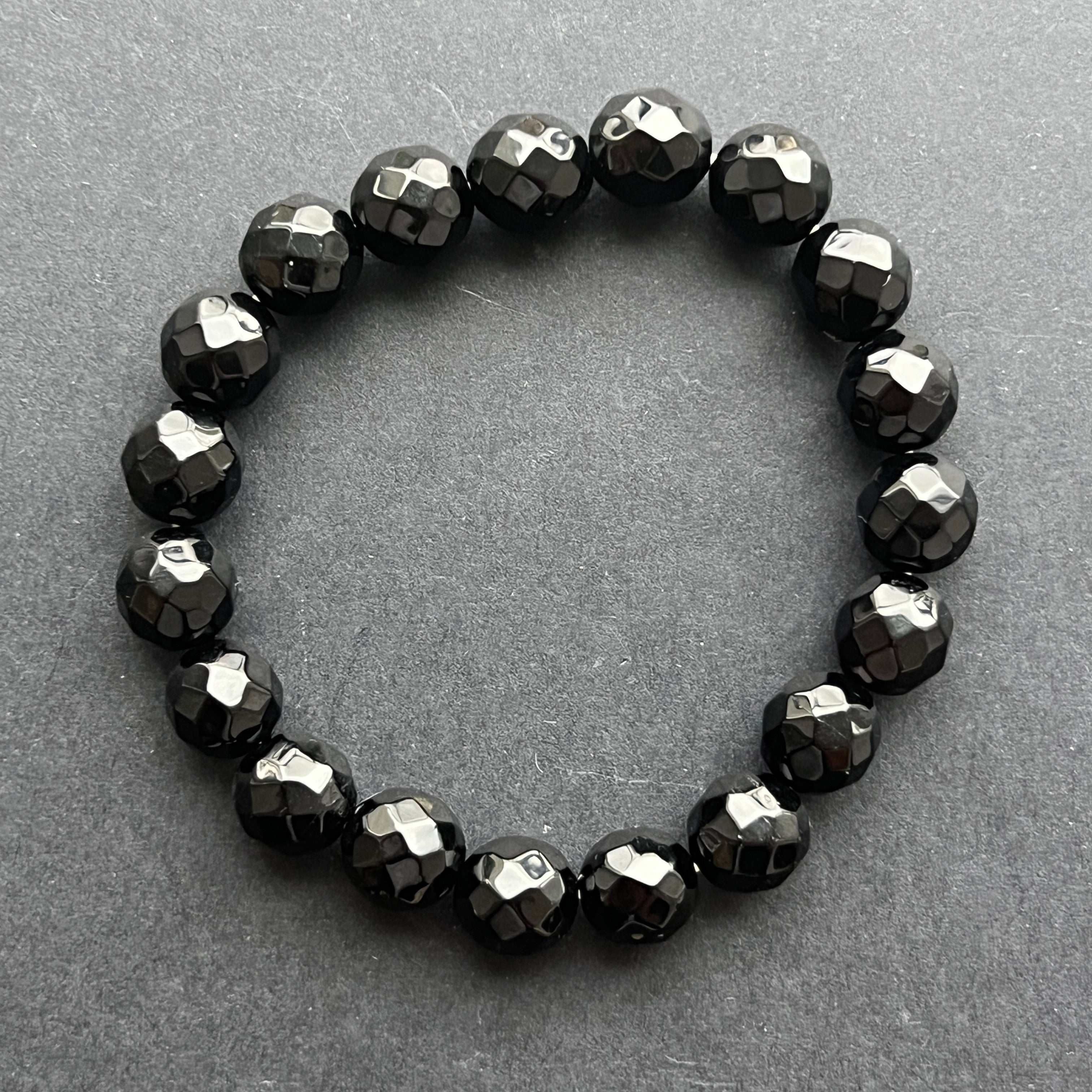 Descriere - Pulsera de ónix negro facetado de 10 mm
