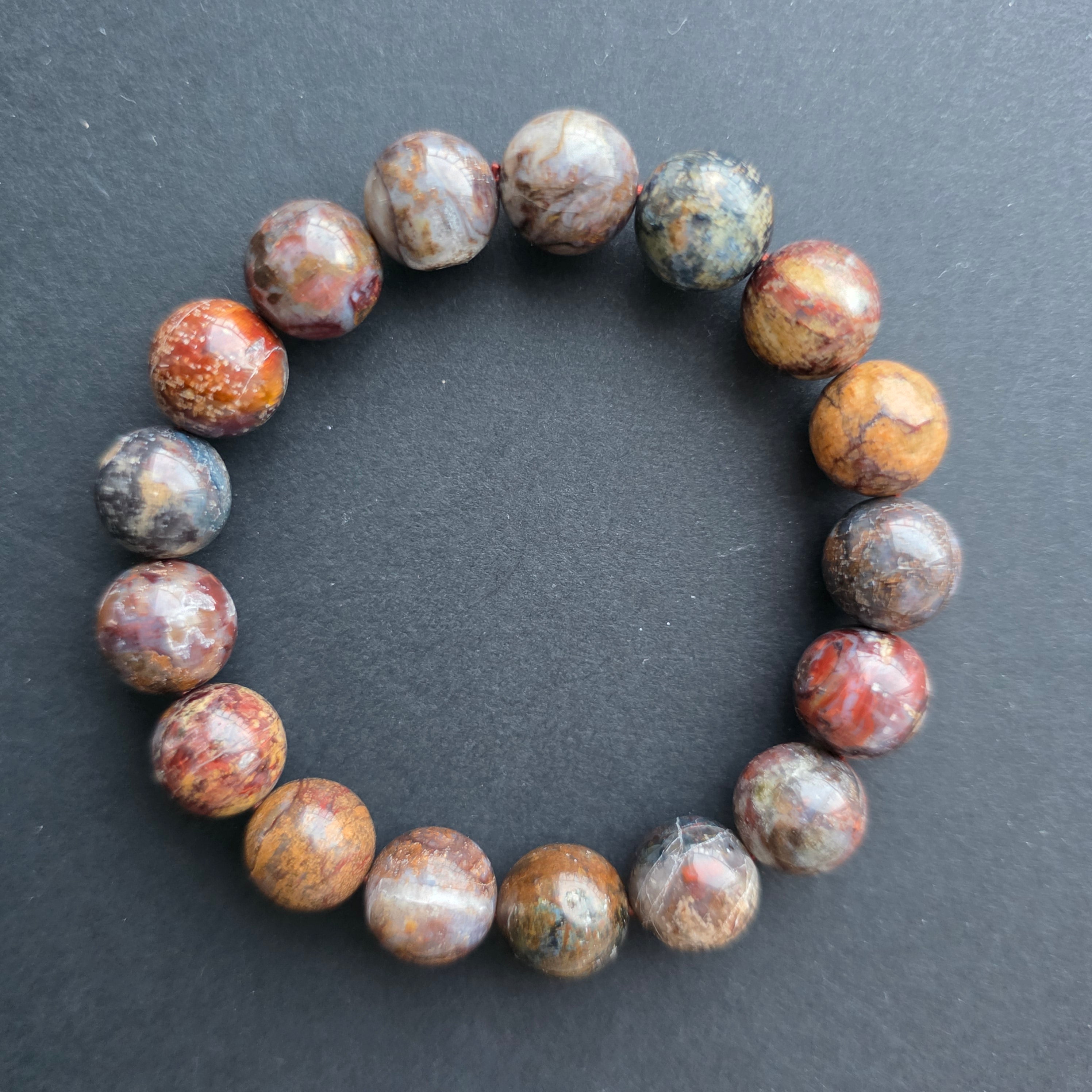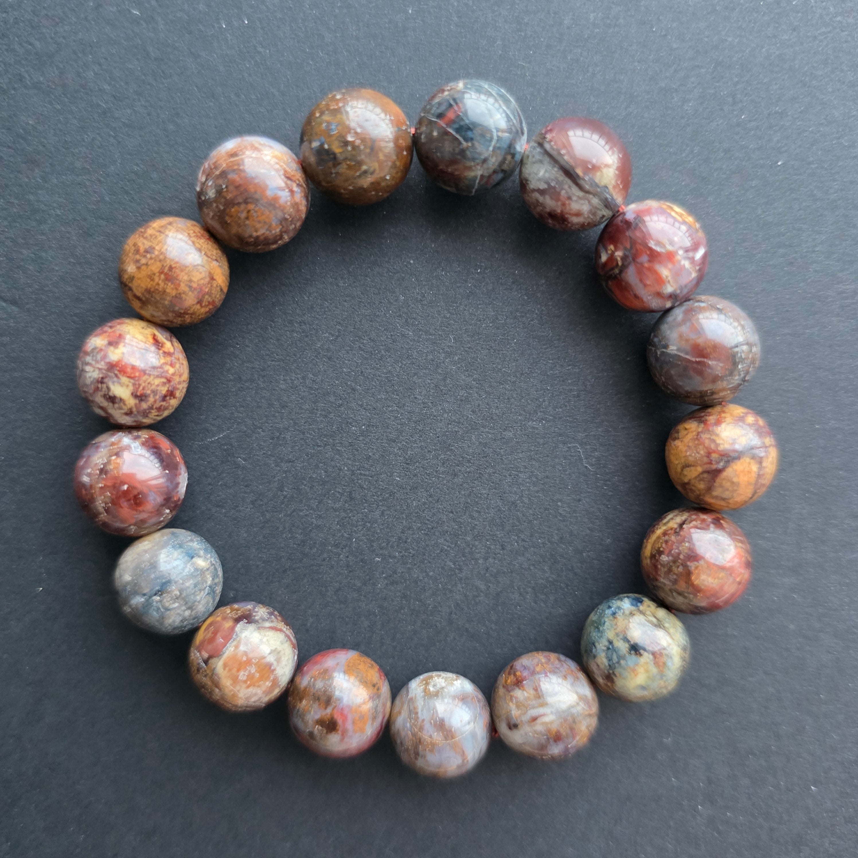 • Piedra: pietersita natural – cuentas esféricas de 11–12 mm
