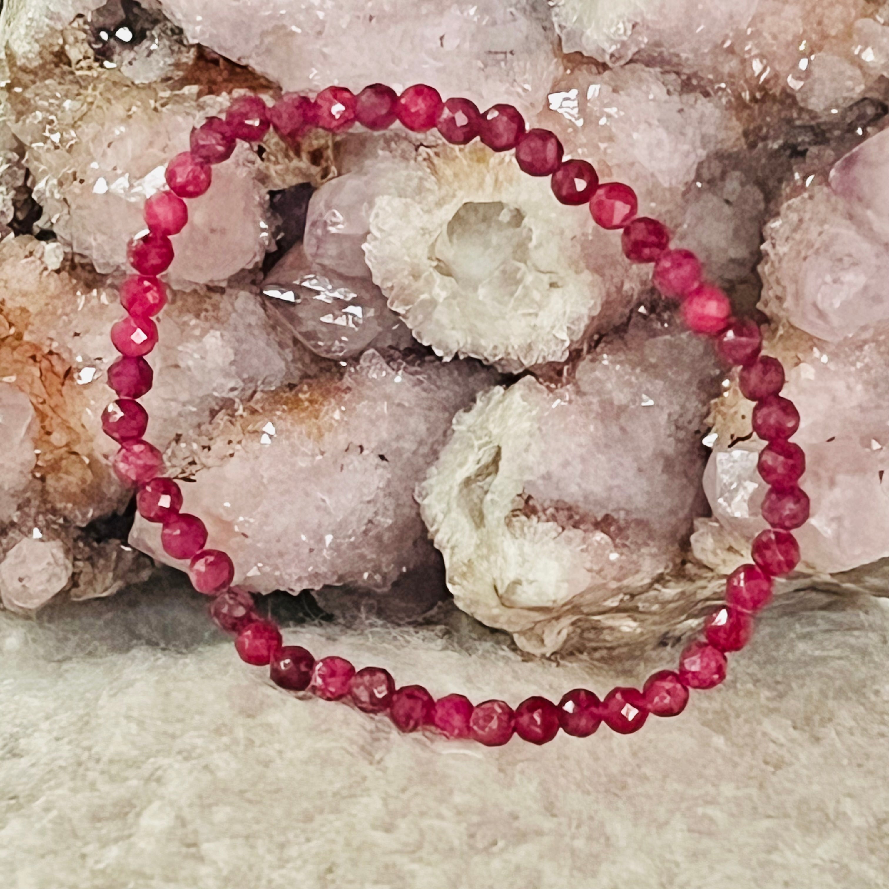 Pulsera de rubí facetado de 4 mm, calidad AAA